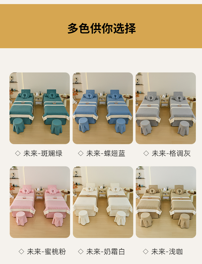 (总)芙怡 2025春夏新款8031款棉麻美容床罩四件套-未来系列,未来-斑斓绿,未来-蝶翅蓝,未来-格调-灰,未来-蜜桃粉,未来-奶霜白,未来-浅咖,未来-浅驼