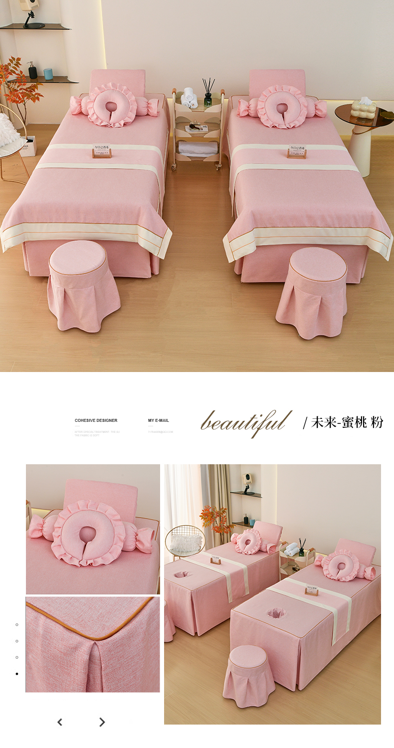 (总)芙怡 2025春夏新款8031款棉麻美容床罩四件套-未央系列,未央-蝶翅蓝,未央-格调 灰,未央-蜜桃 粉,未央-浅咖,未央-浅驼,未央-斑斓绿