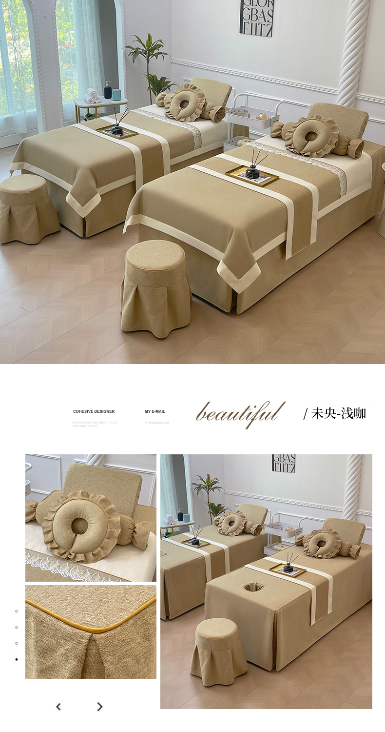 芙怡 2025春夏新款8031款棉麻美容床罩四件套-未央系列 未央-浅咖