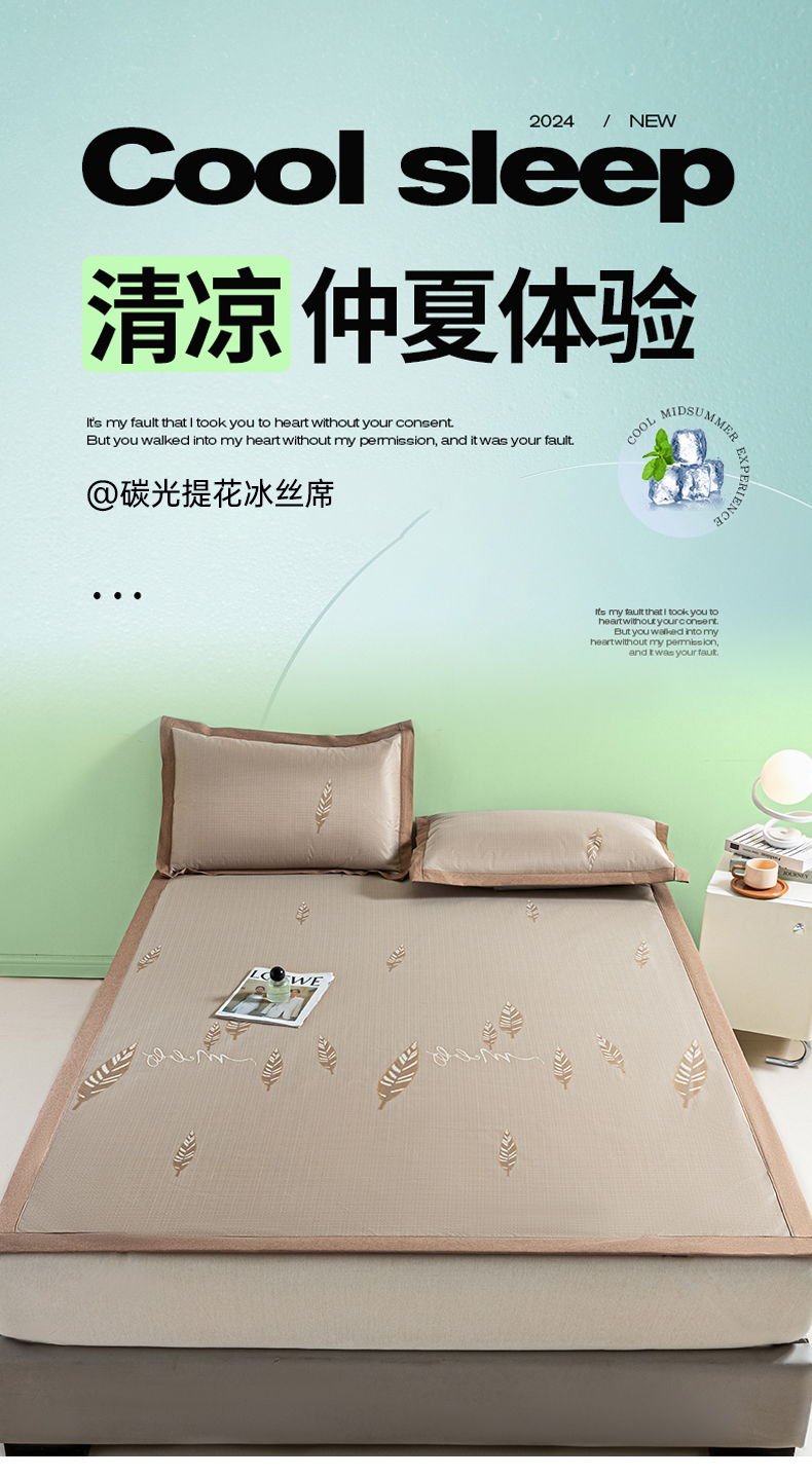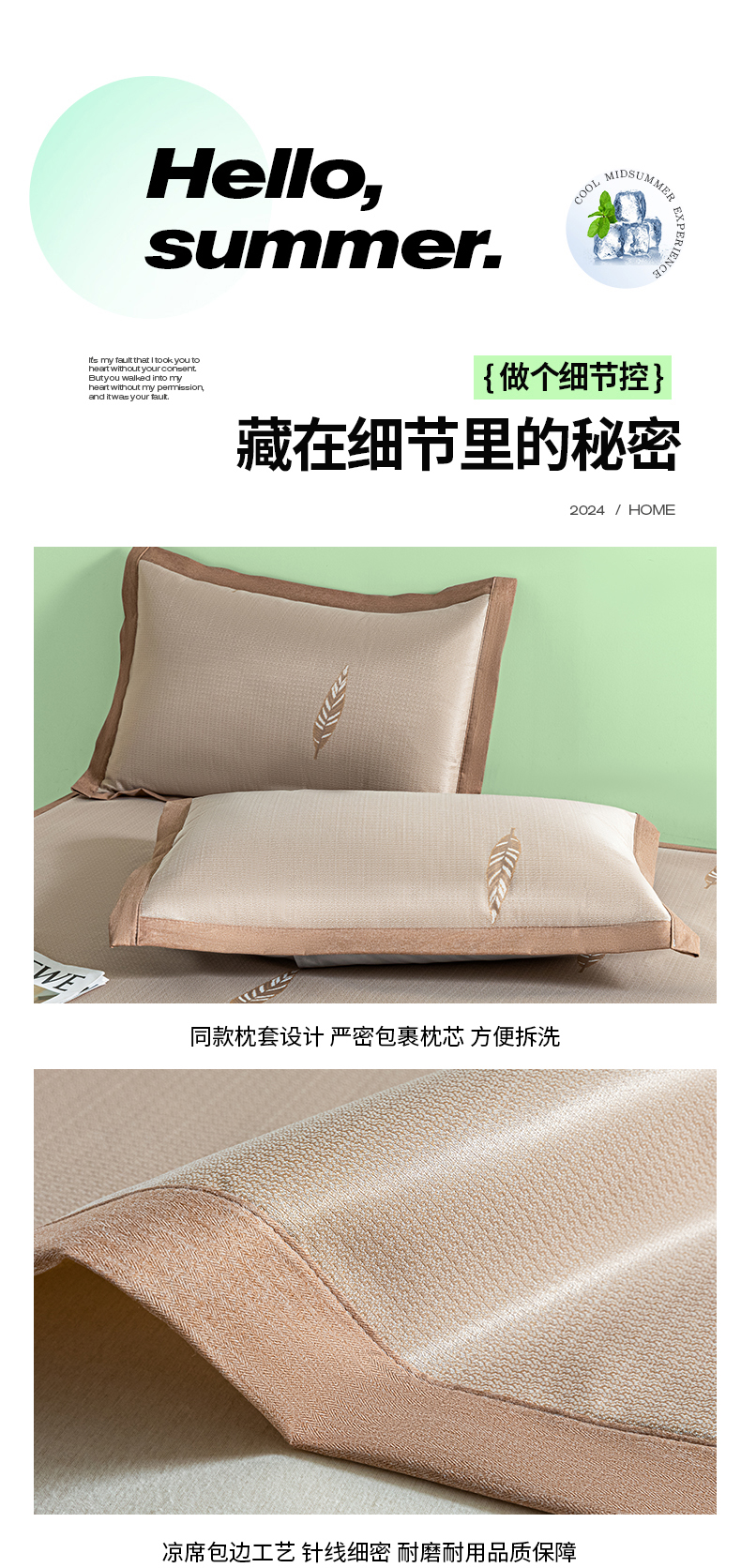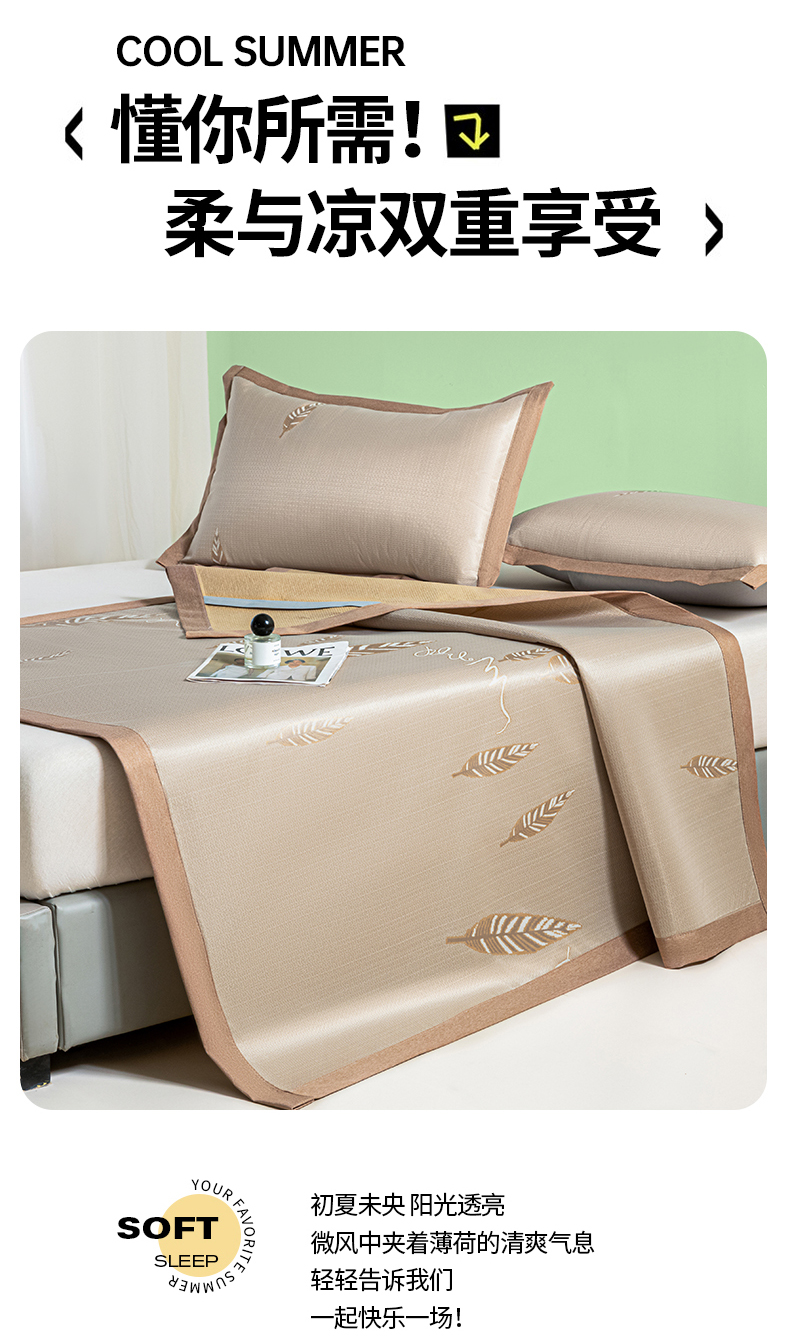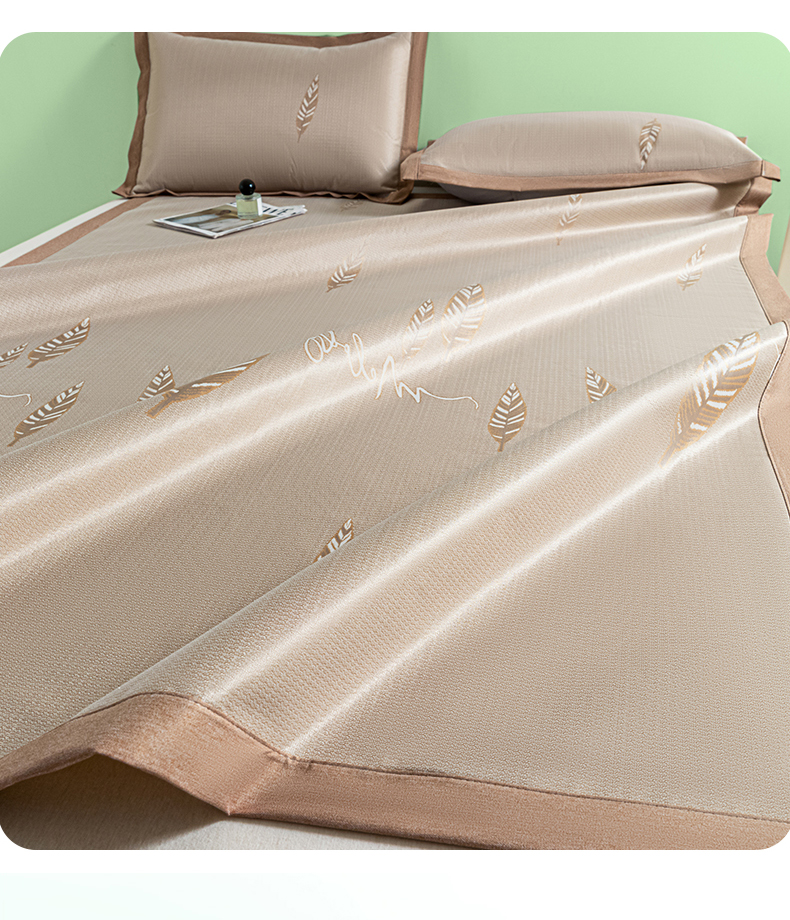 商品名称:阿亮家居 2025新款凉席碳光席冰丝席三件套 叶语芊芊-咖