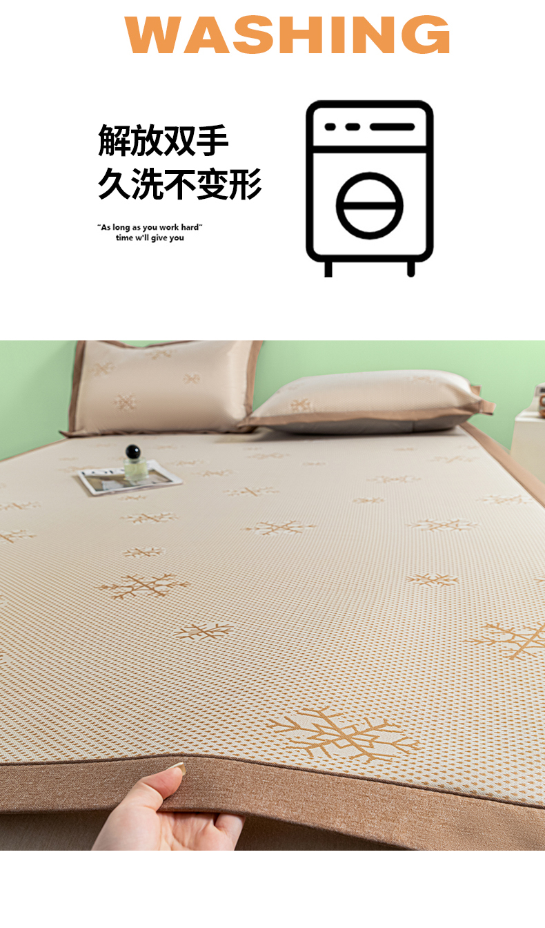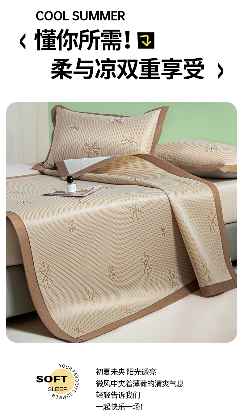商品名称:阿亮家居 2025新款凉席碳光席冰丝席三件套 雪花-咖色