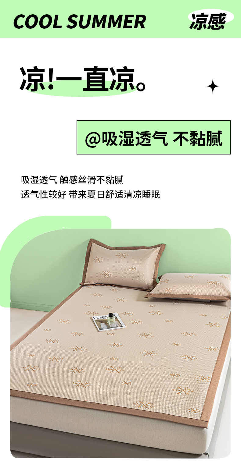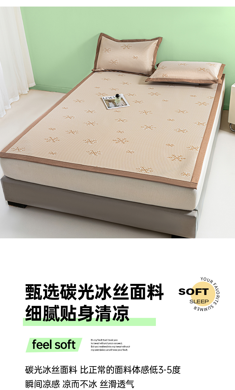 阿亮家居 2025新款凉席碳光席冰丝席三件套 雪花-咖色