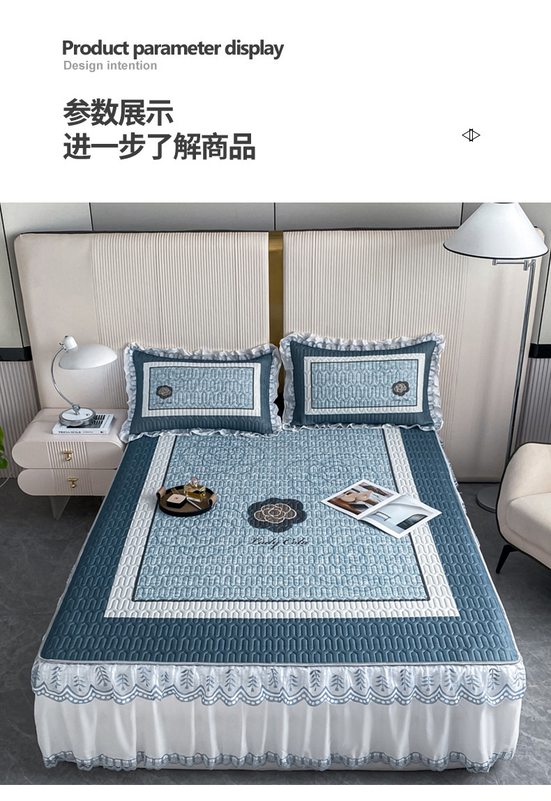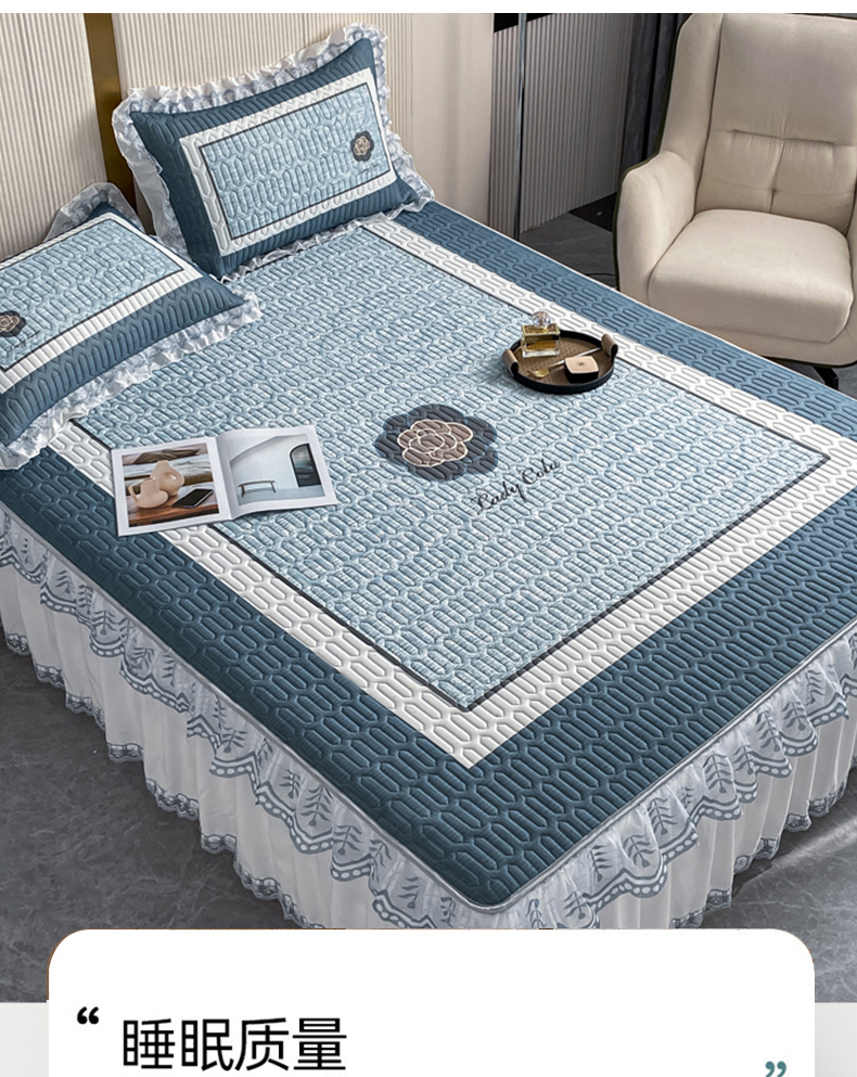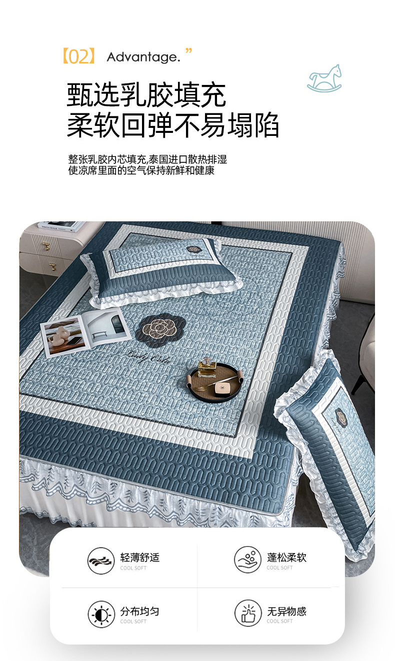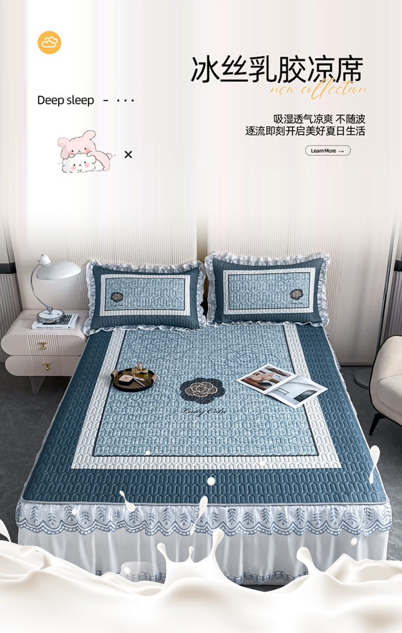 商品名称:麋兔 2025新款冰丝床裙乳胶凉席席子 香奇朵