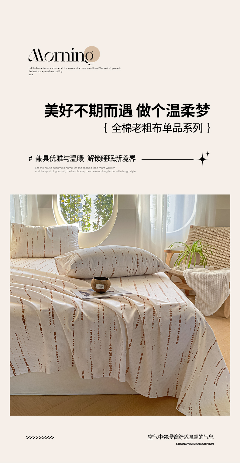商品名称:雅居纺家纺 2025春夏新款全棉纯棉简约老粗布-单床笠 床笠单件凉席席 青春-咖