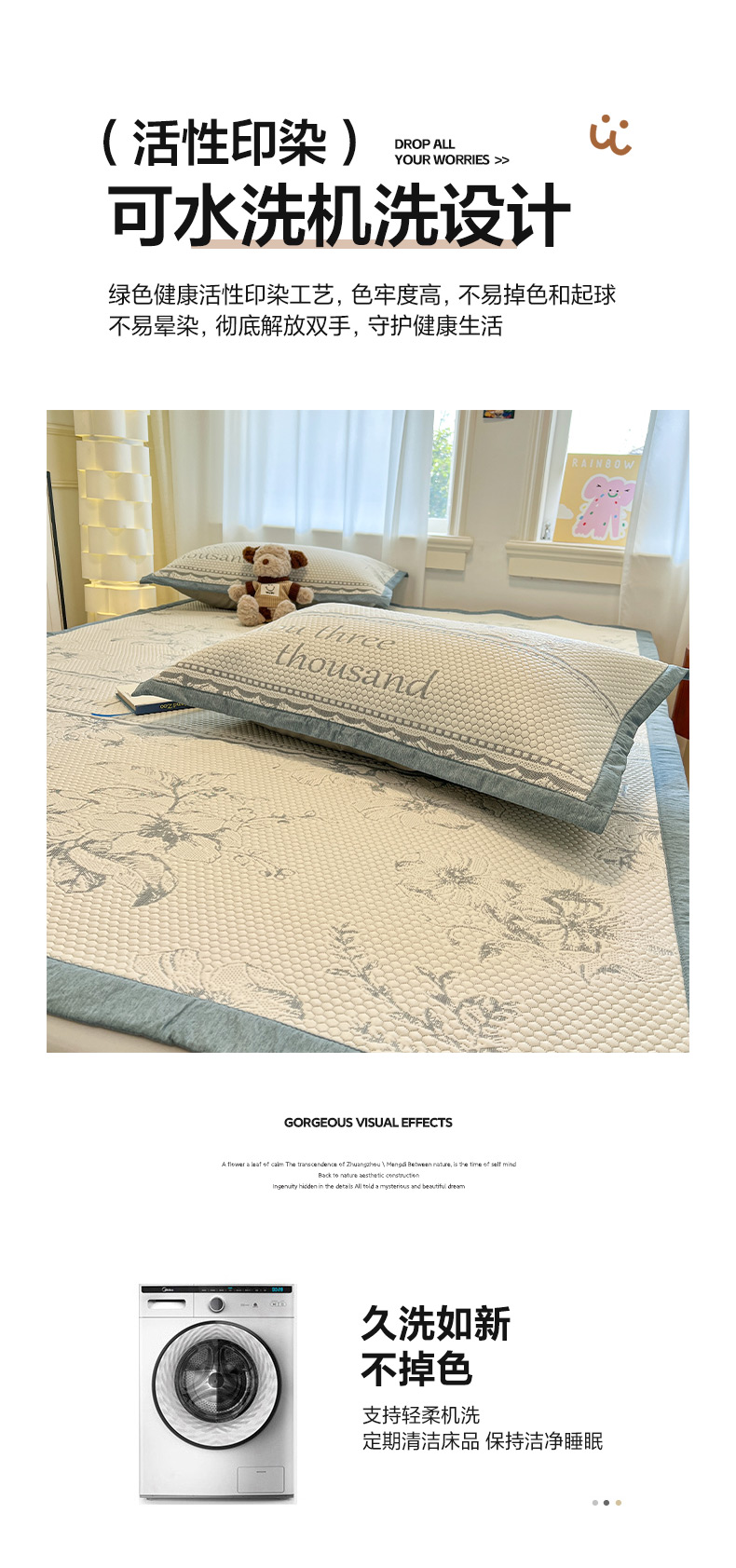 商品名称:雅居纺家纺 2025春夏新款A类加厚三明治底提花凉感席床席款 悠闲花园