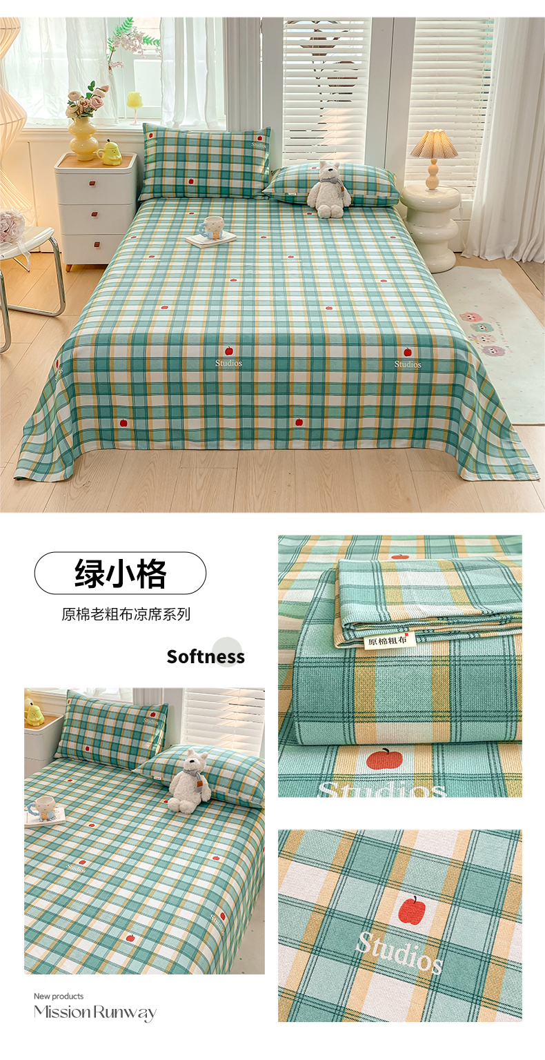 • 91家纺网 家纺一手货源 找家纺 米柳2025新款原棉老粗布凉席系列 绿小格