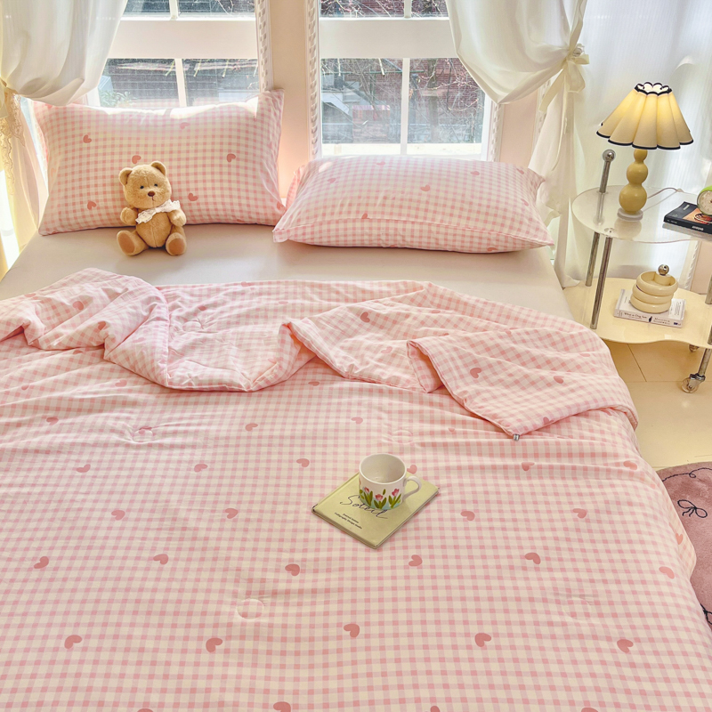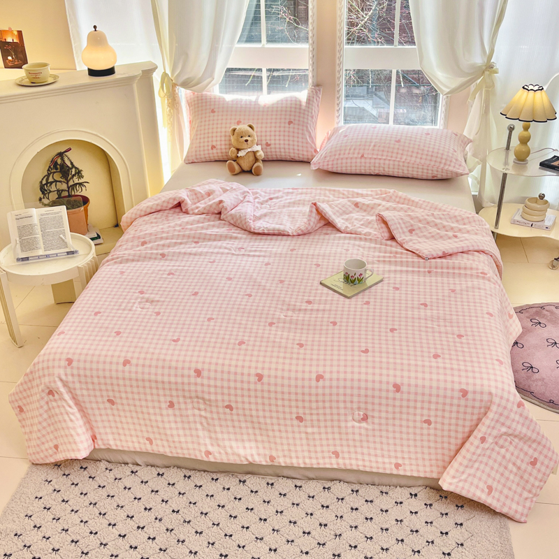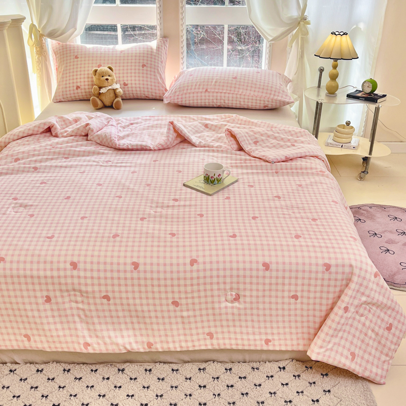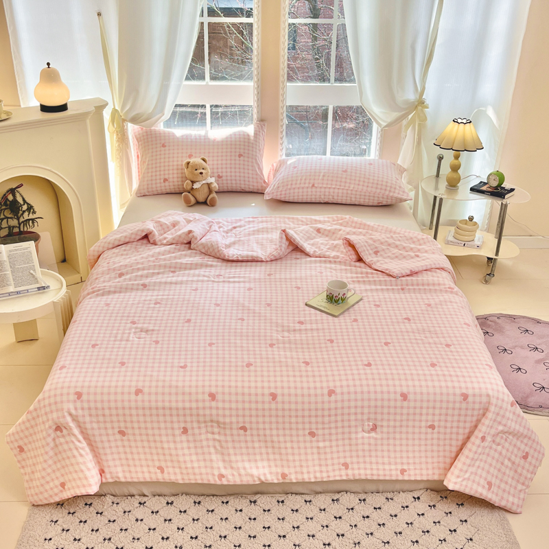 商品名称:星巴k家纺 2025糯糯棉A类大豆蛋白纤维夏凉被双层纱水洗棉夏被大豆被 粉格爱心