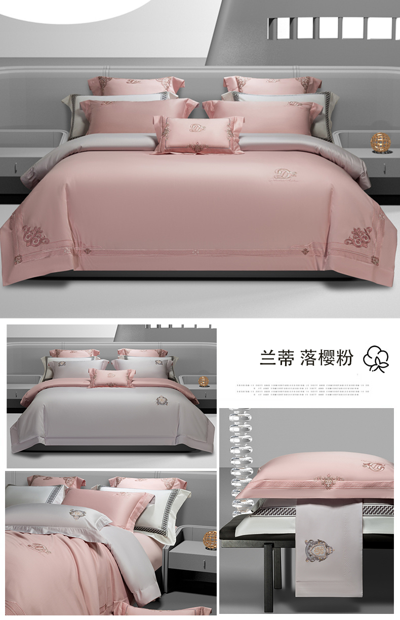 诗黛尔家纺 2025春夏新款100S长绒棉刺绣AB版四件套 -兰蒂系列 兰蒂-落樱粉