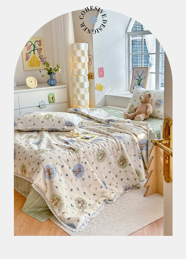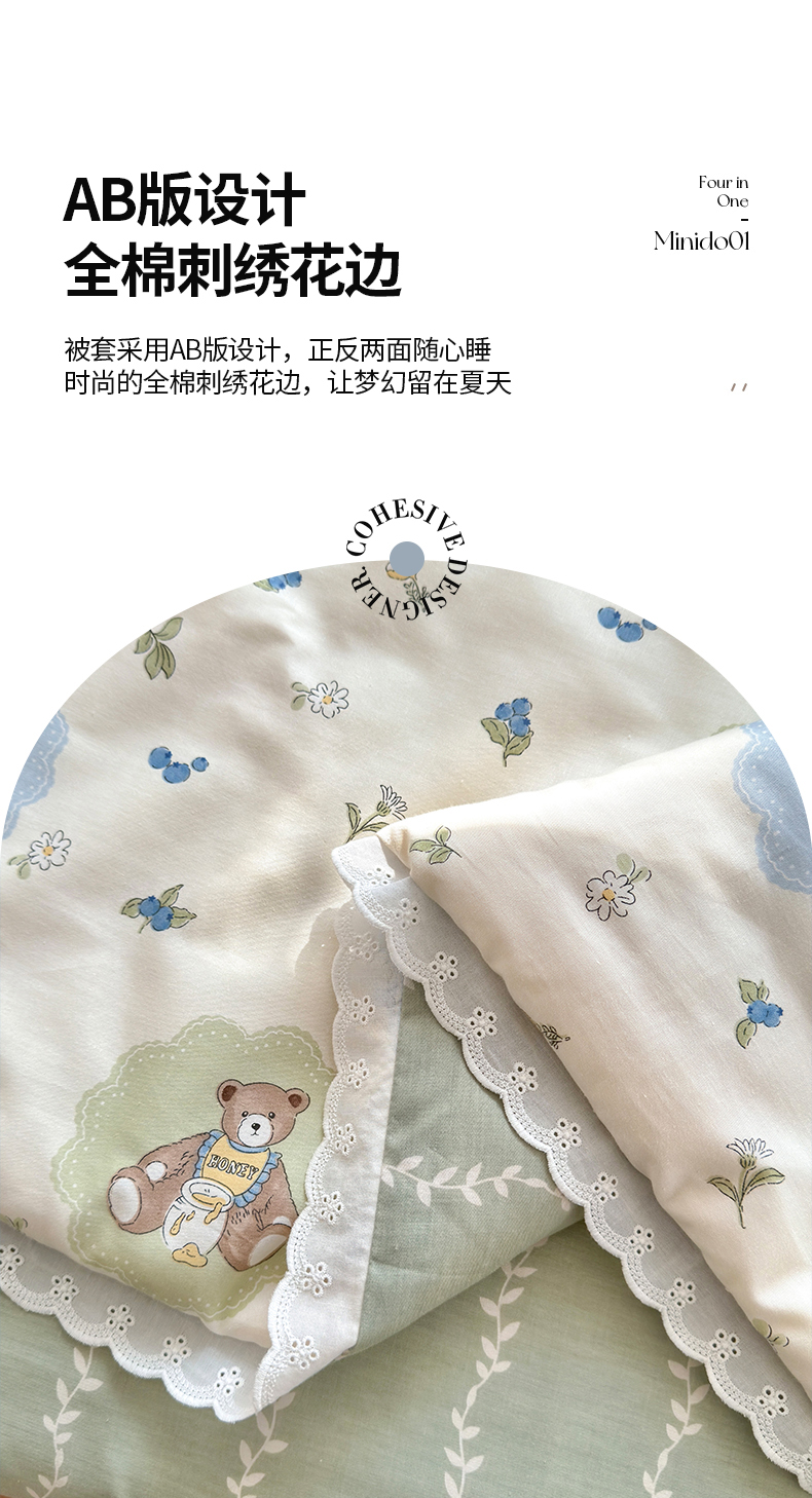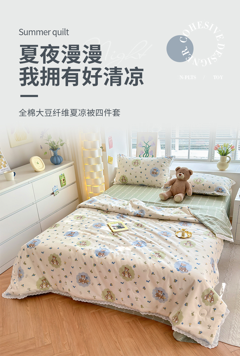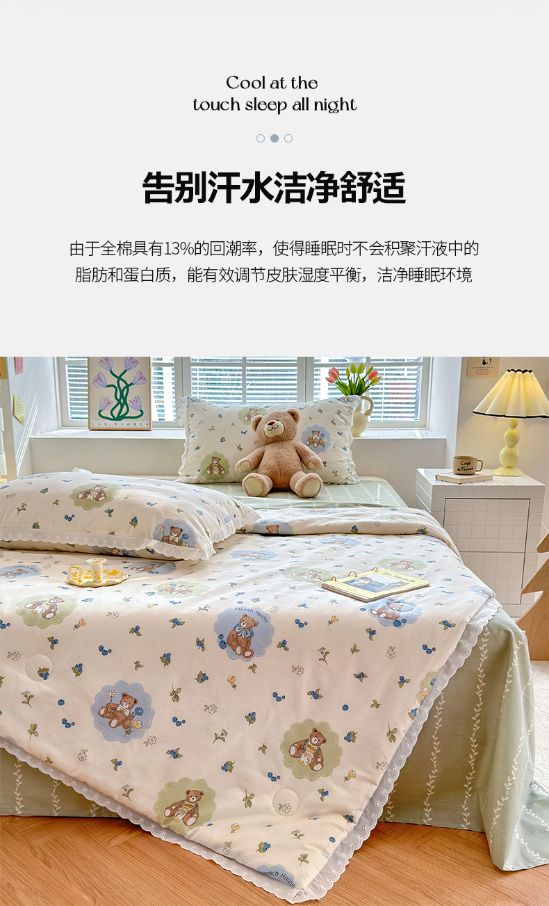 2025新款全棉花边大豆夏被四件套 蜜罐熊