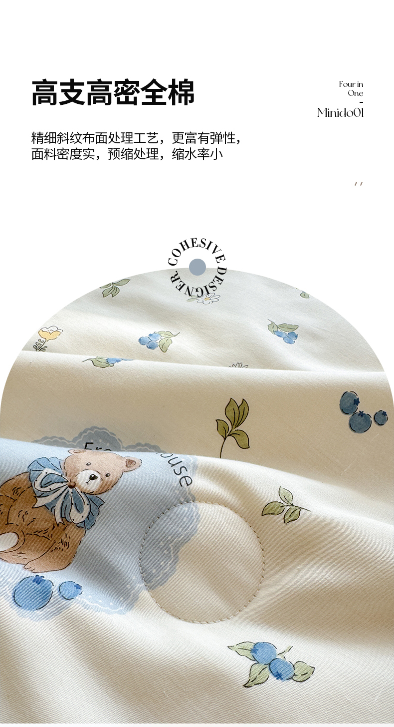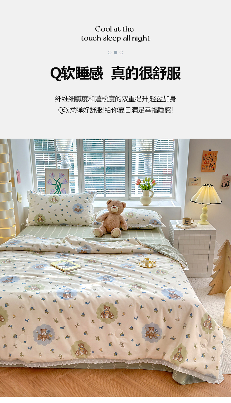商品名称:2025新款全棉花边大豆夏被四件套 蜜罐熊