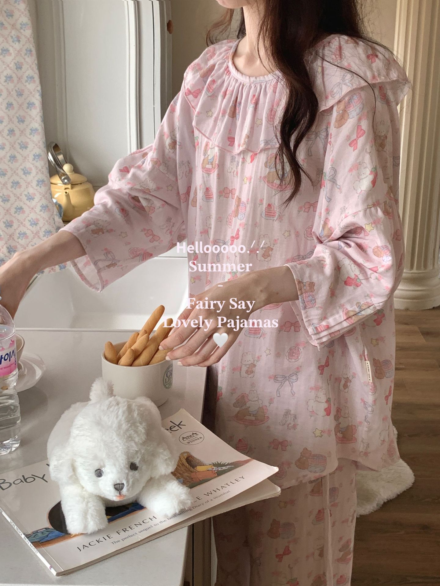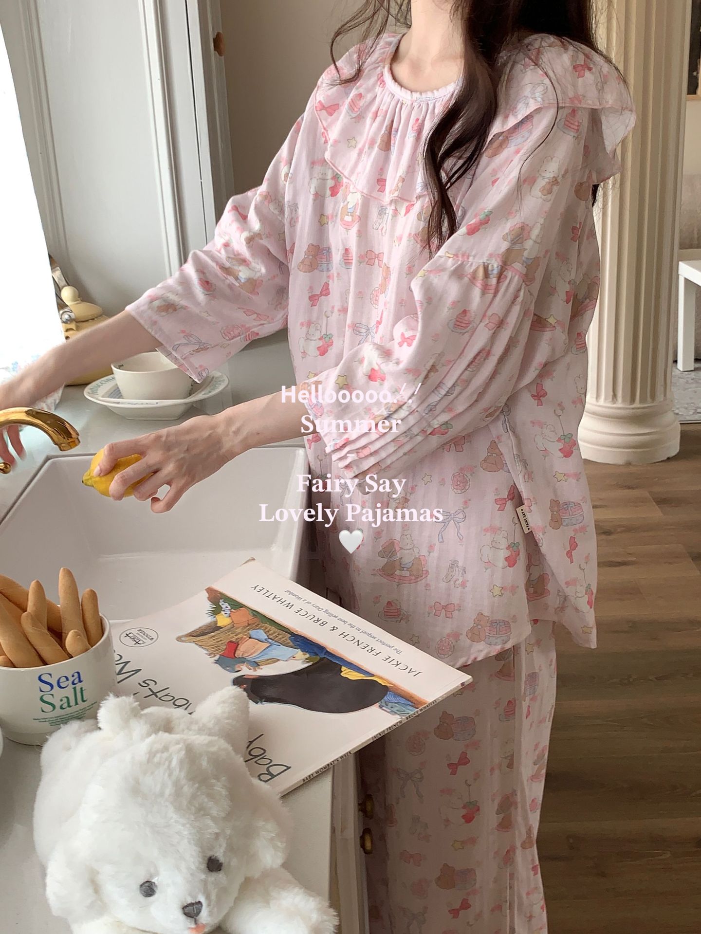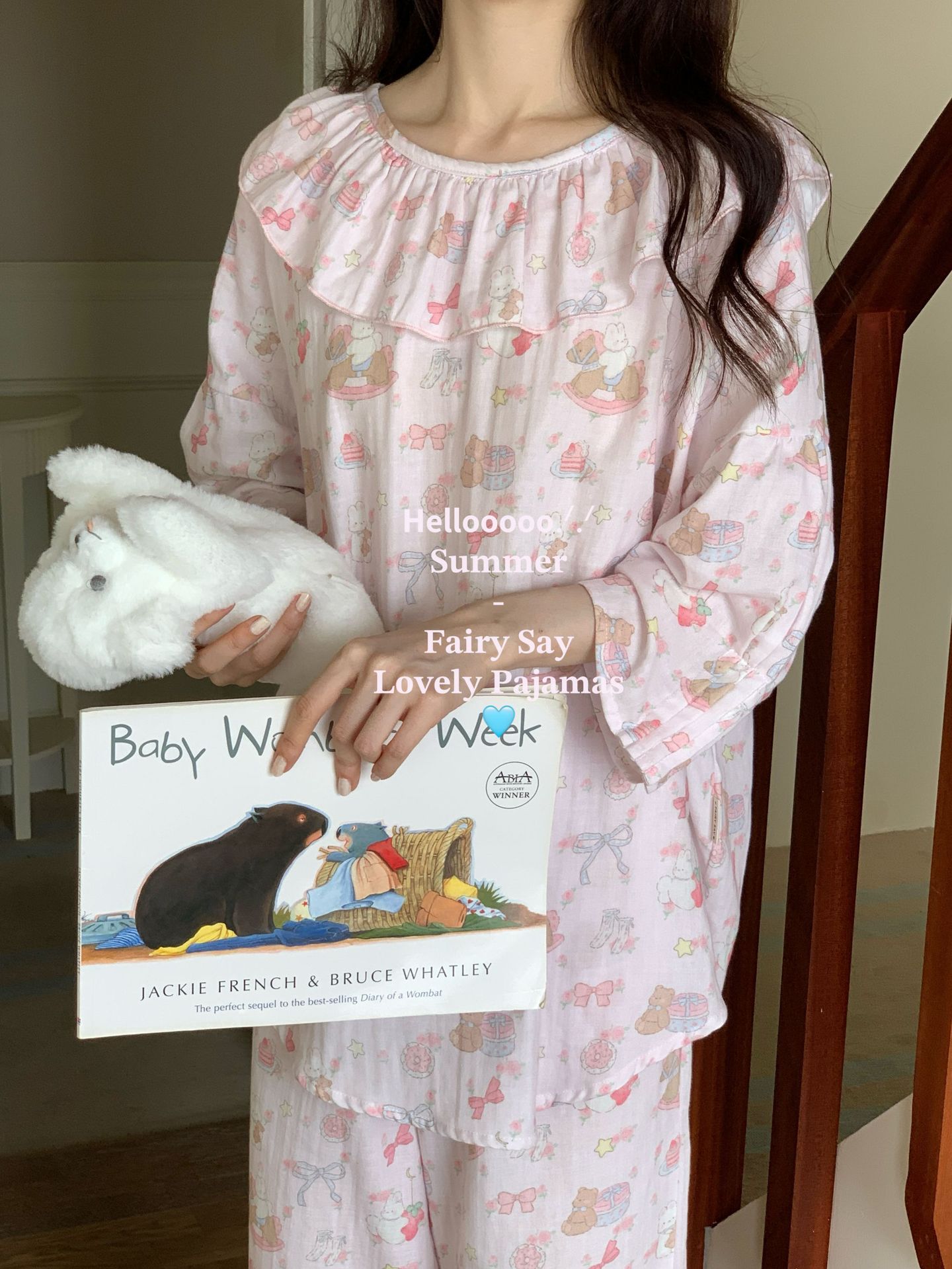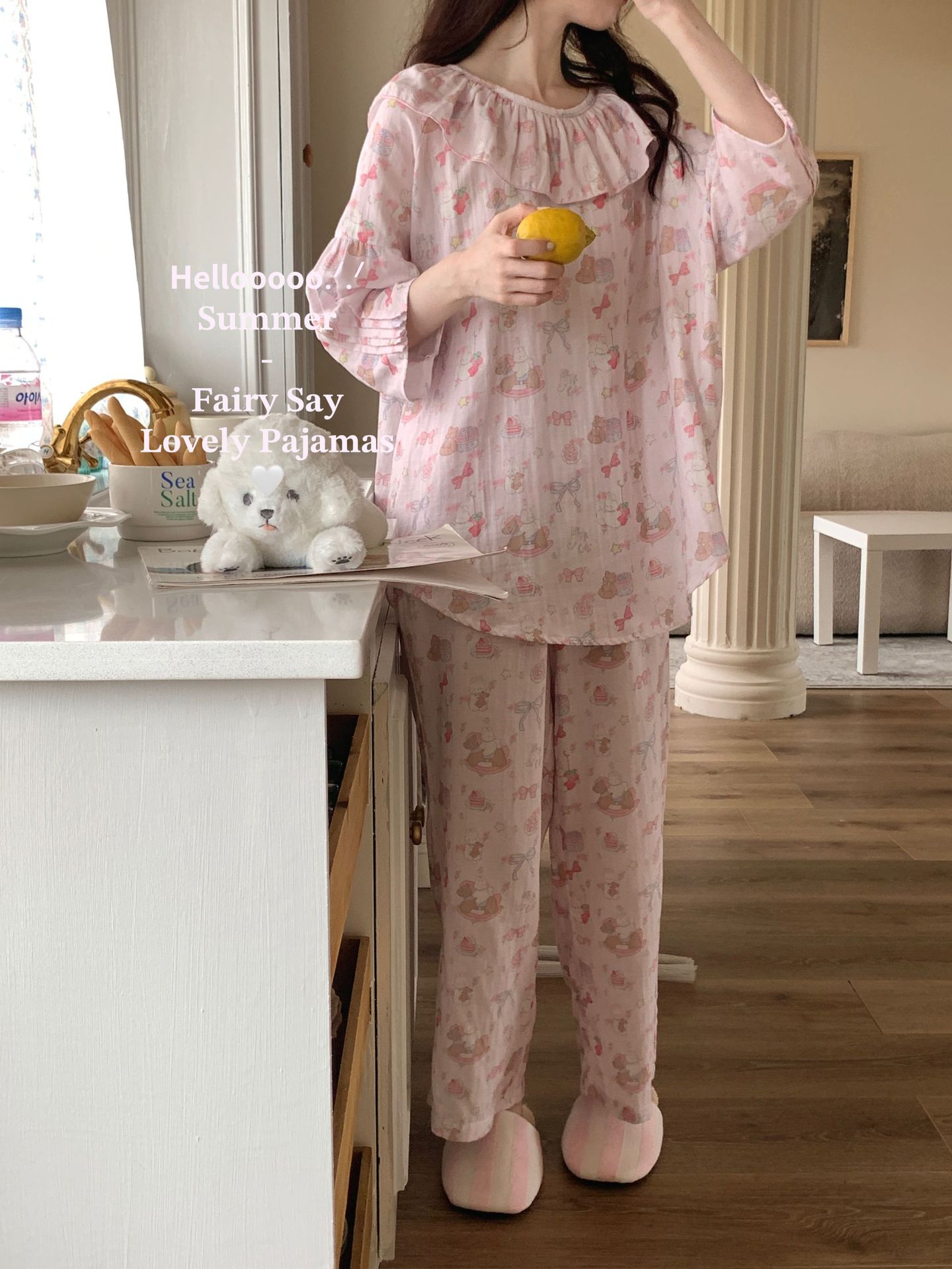 当前位置: 91家纺网 > 商品网购 > 居家日用 > 睡衣/家居服套装 > (总)妍景家居生活馆 2025新款草莓兔棉纱睡衣套装