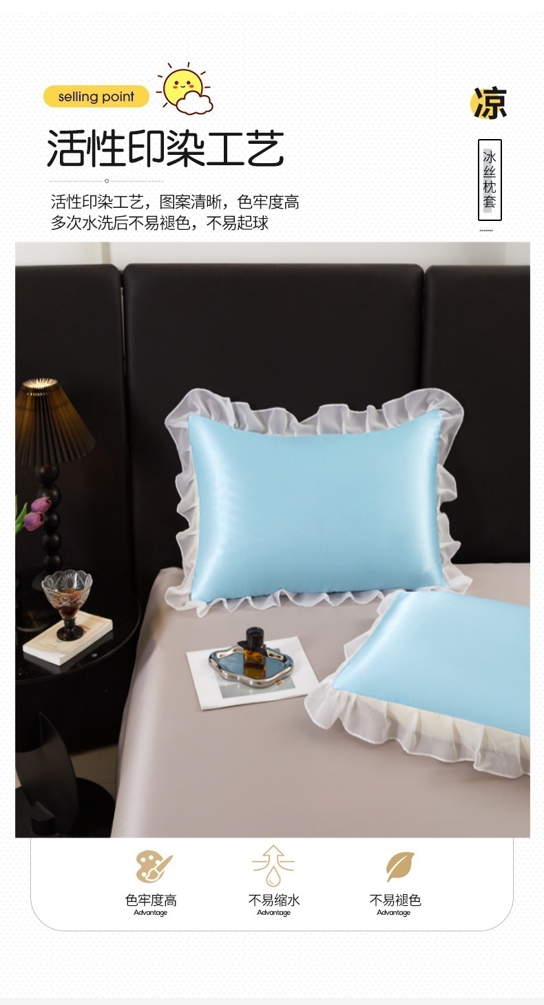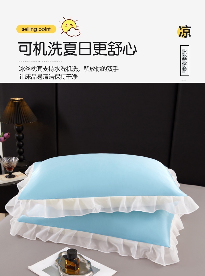 商品名称:梦舒羽 2025新款公主风夏季冰丝枕套单人一对装可水洗花边枕头套宿舍48x74cm枕芯套枕头套 花边款-天空蓝