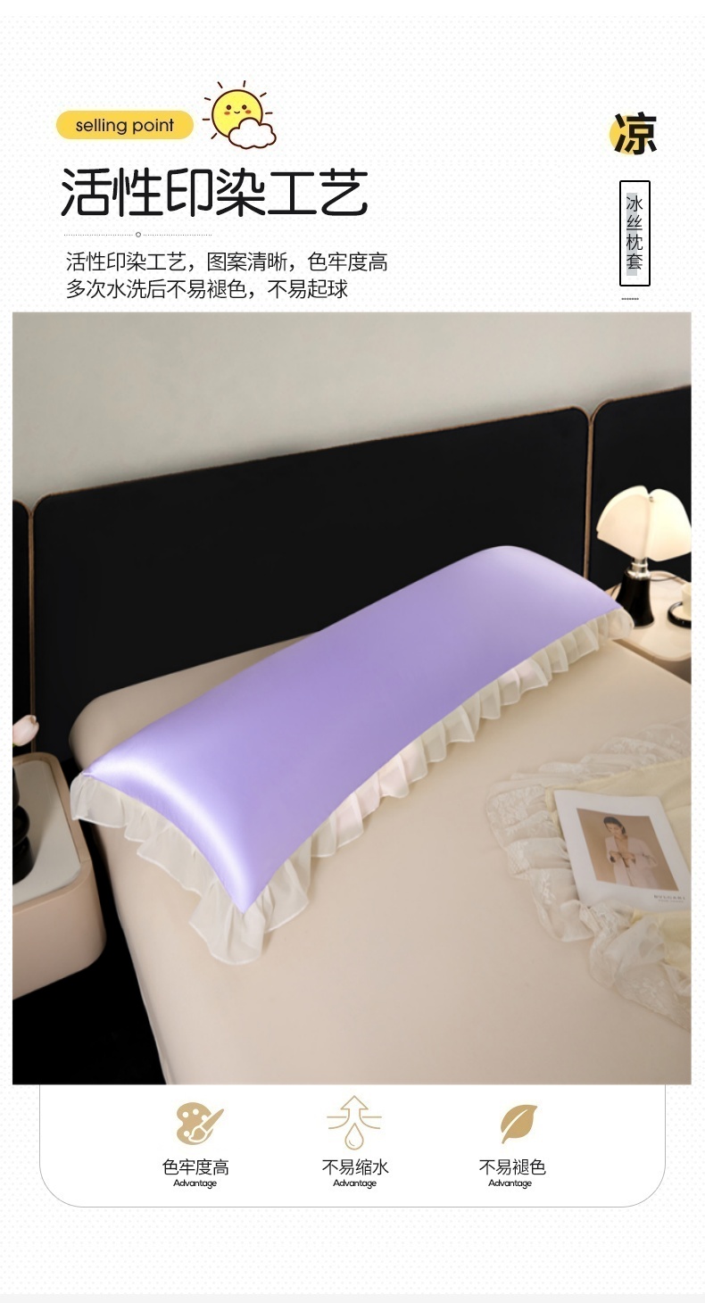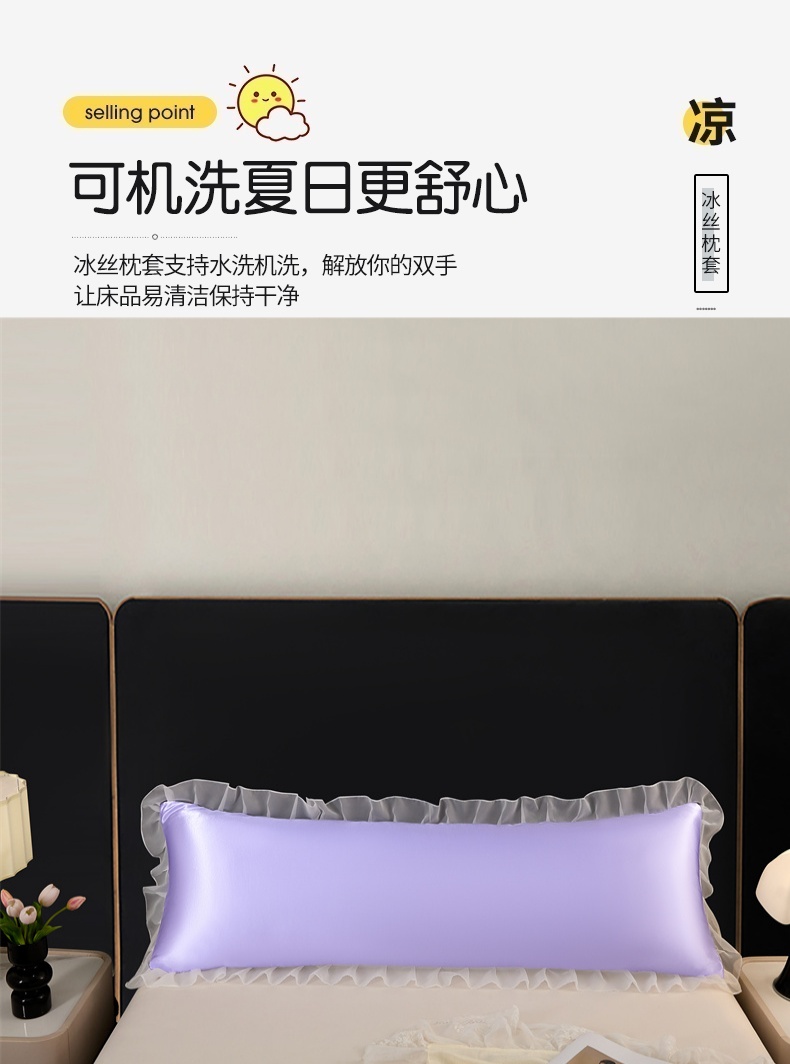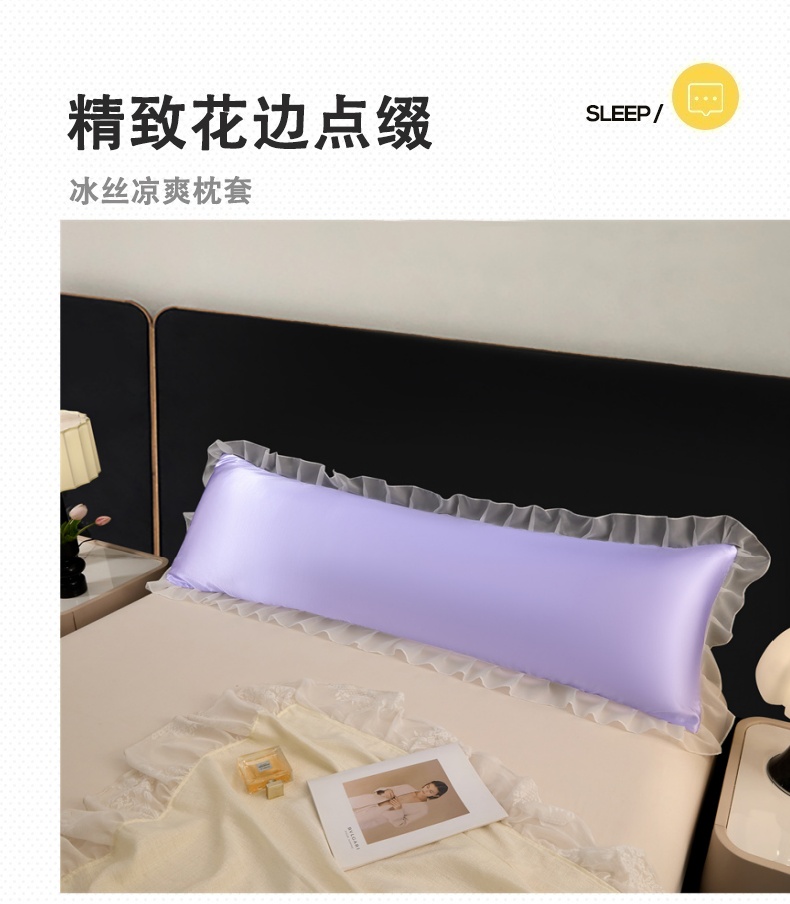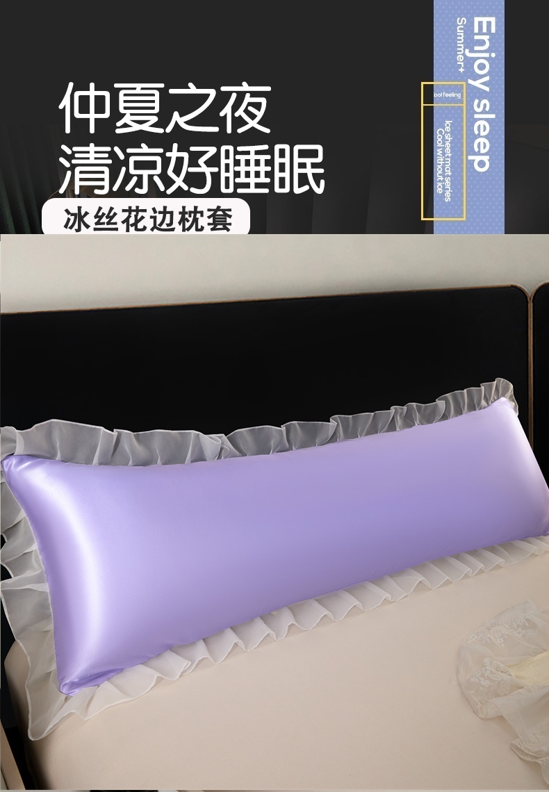 商品名称:梦舒羽 2025新款公主风夏季冰丝枕套双人情侣枕头套加长枕芯套1.5m内胆套 花边款-雪青色