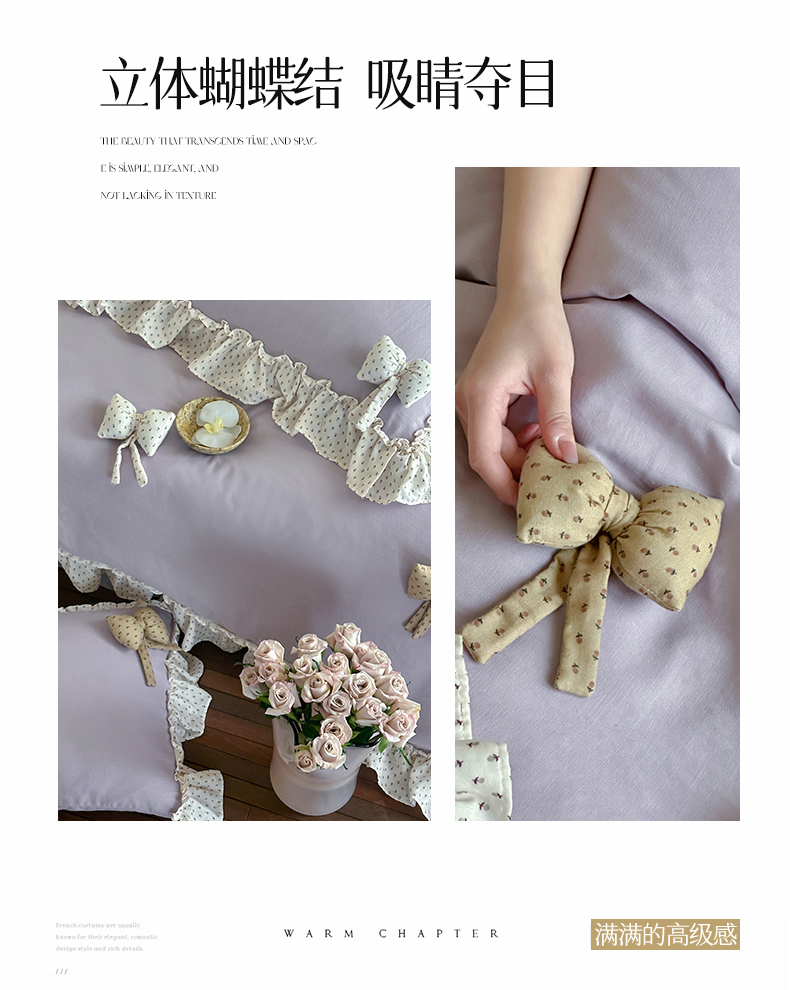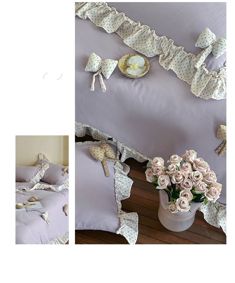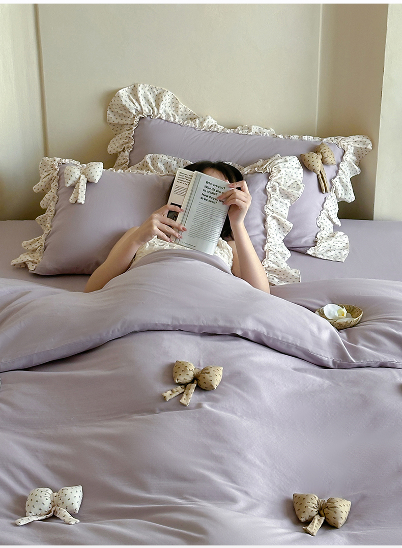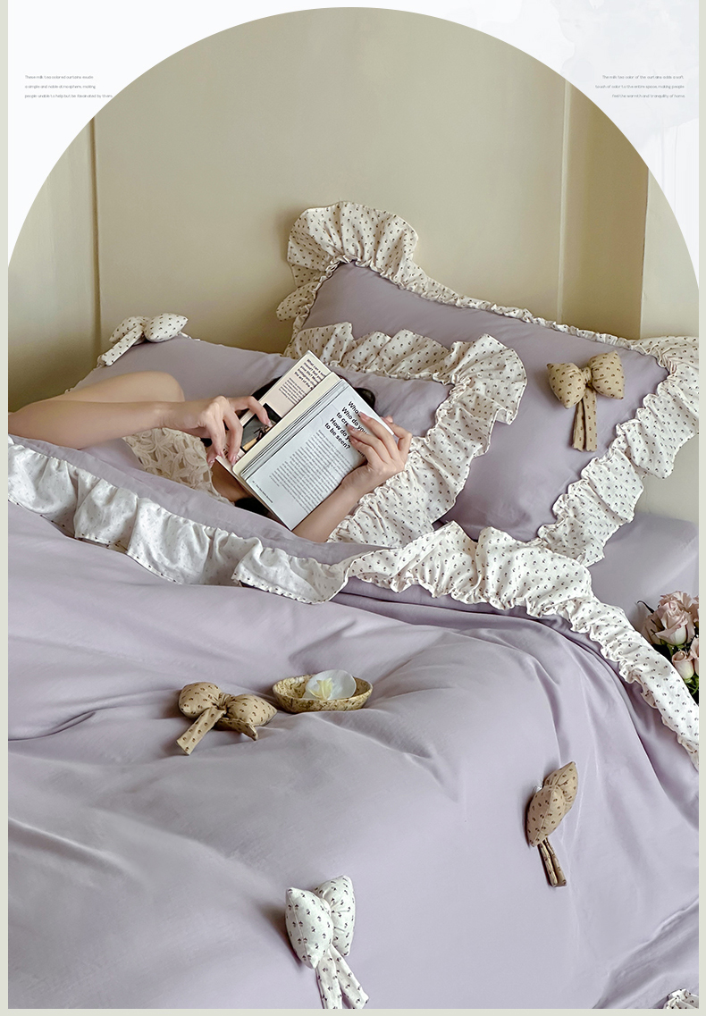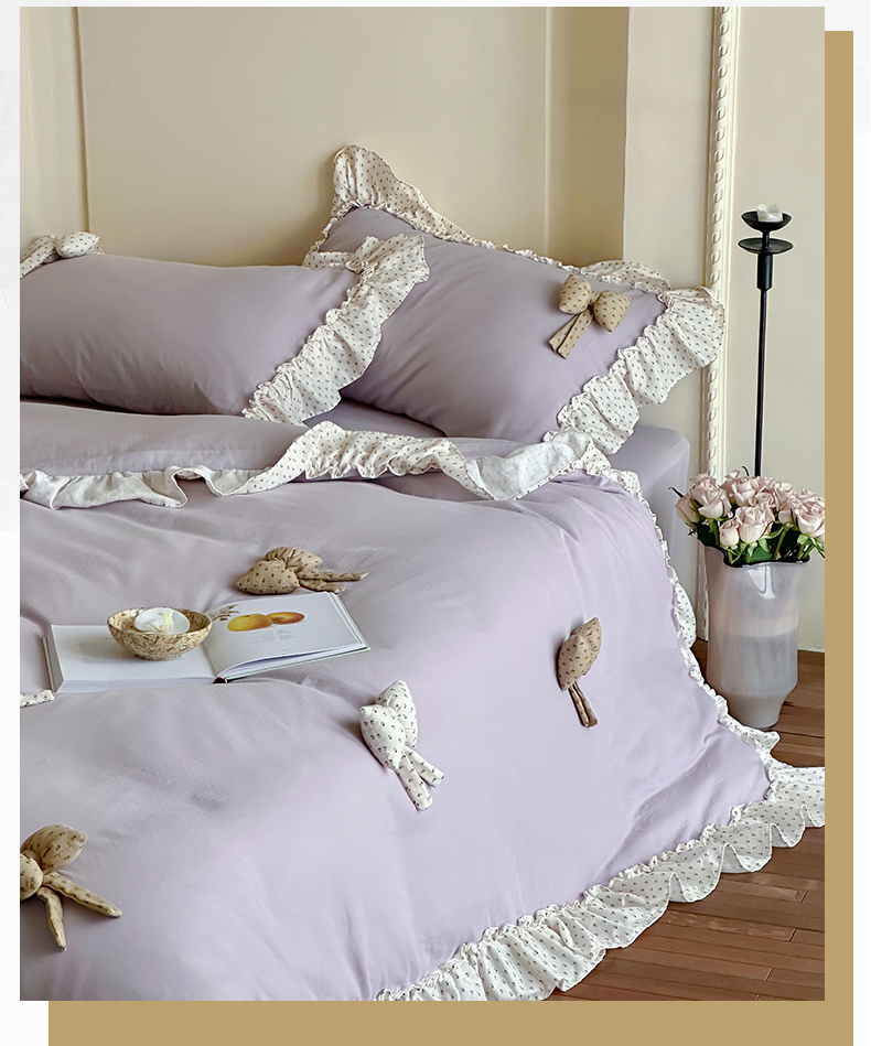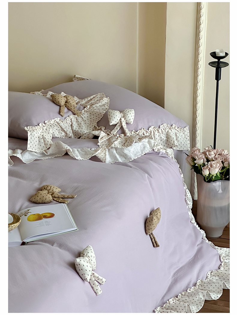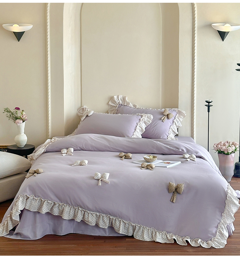 商品名称:名品优仓 2025新款纯棉水洗棉双层纱提花韩版花边四件套 思薇 思薇一烟紫色