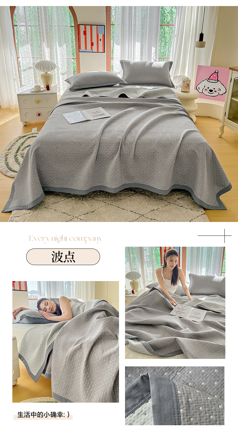 • 91家纺网 家纺一手货源 找家纺 棠薇家纺2025新款简约风多功能纱布盖毯纱布毯子毛巾被床盖沙发巾单毯枕巾枕套三件套 波点