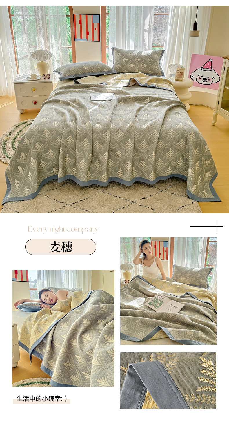 • 91家纺网 家纺一手货源 找家纺 棠薇家纺2025新款简约风多功能纱布盖毯纱布毯子毛巾被床盖沙发巾单毯枕巾枕套三件套 麦穗
