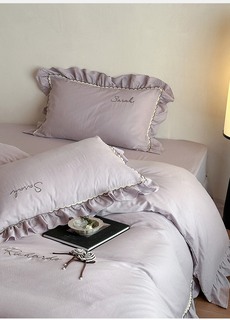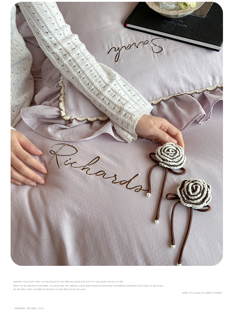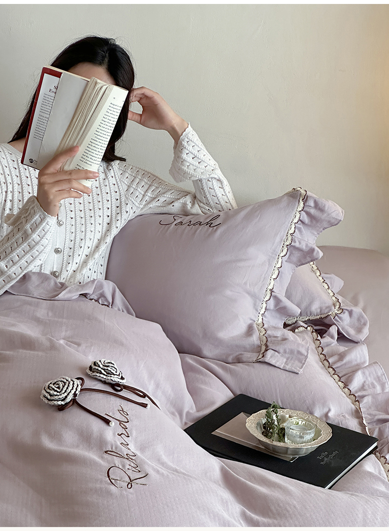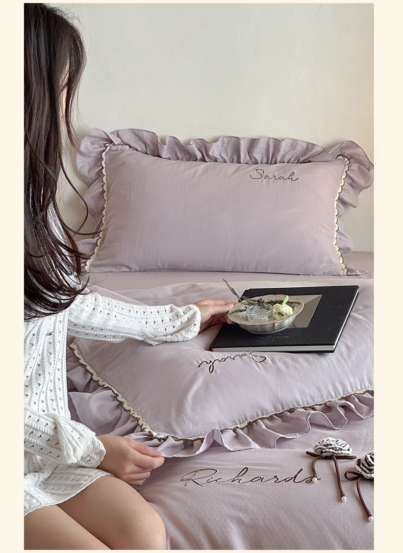 名品优仓 2025新款纯棉水洗棉双层纱提花手工花韩版花边四件套 思颍-烟紫
