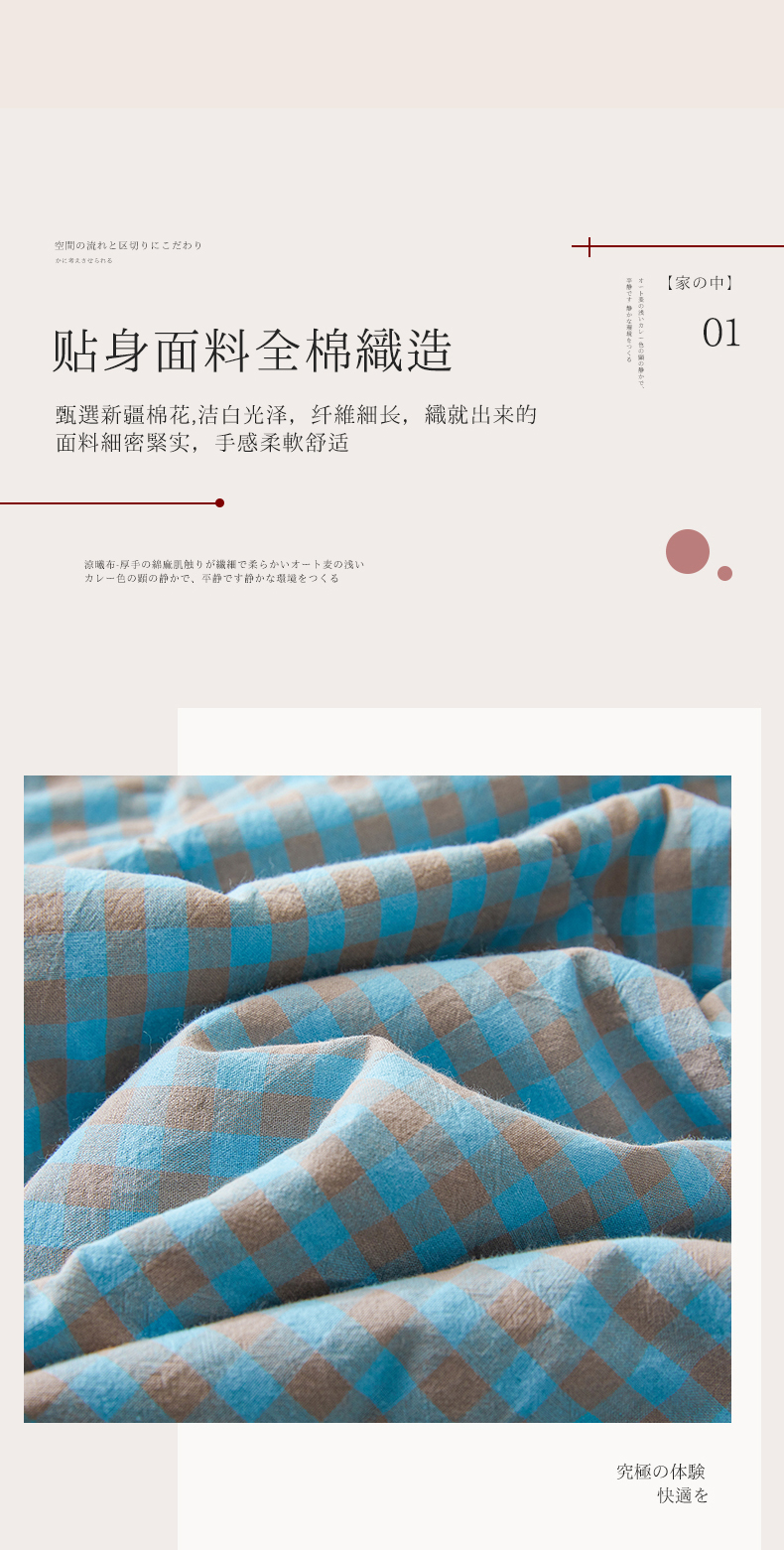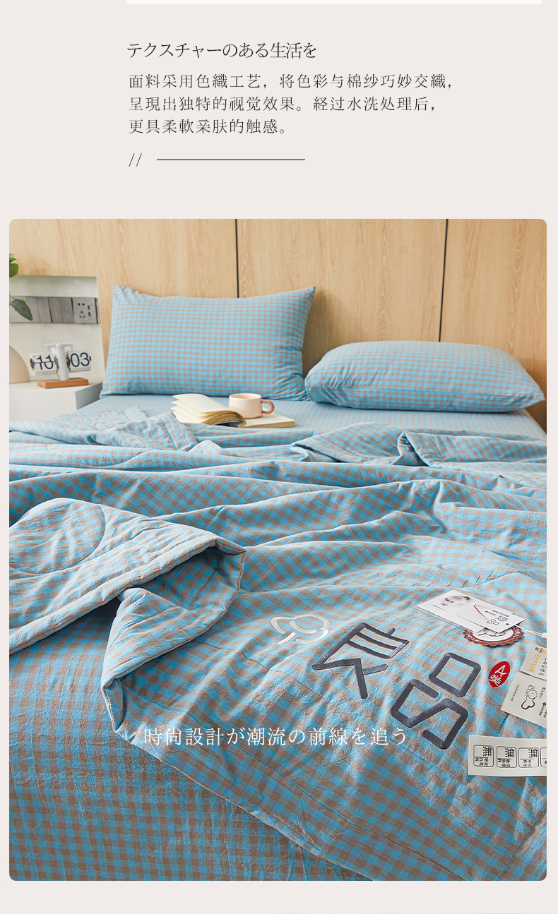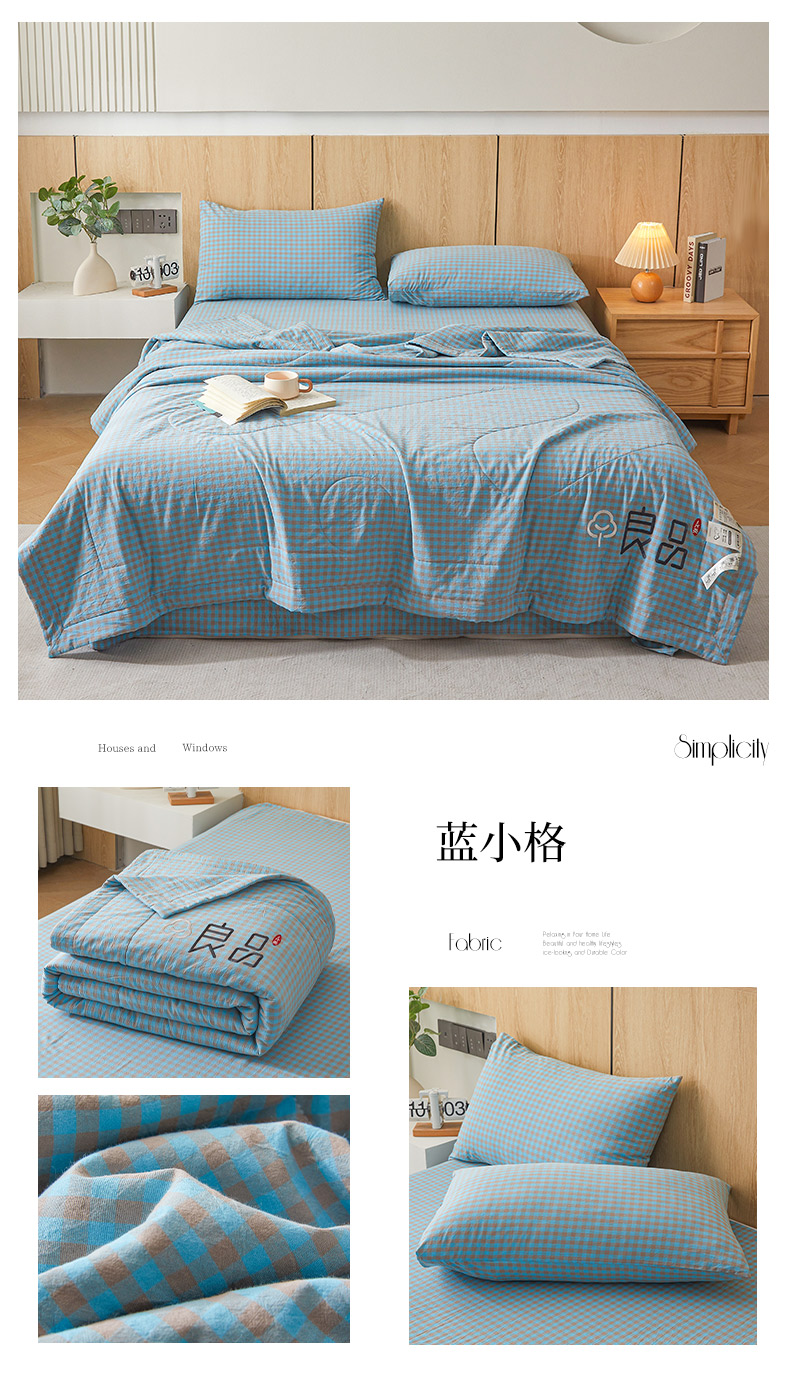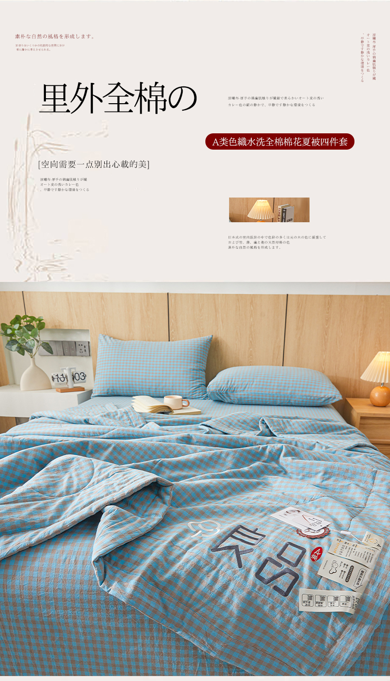 当前位置: 91家纺网 > 商品网购 > 床品套件 > 四件套 > 夏被四件套 > 悦织语 2025新款全棉水洗色织新疆棉100%棉花刺绣款无印风夏被四件套 蓝小格