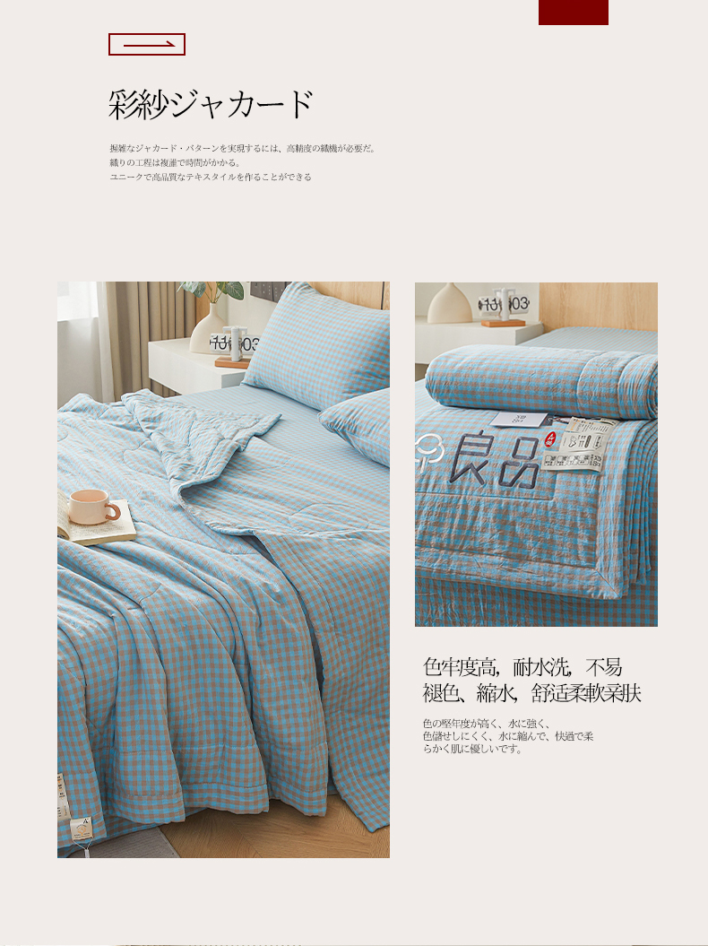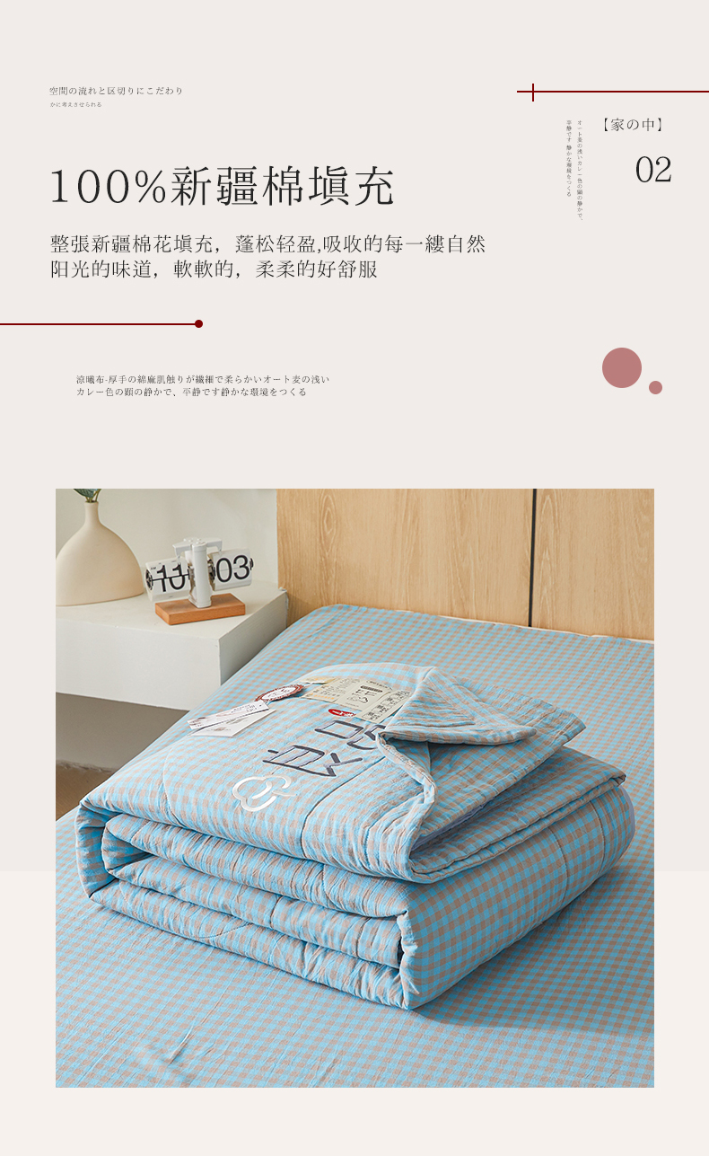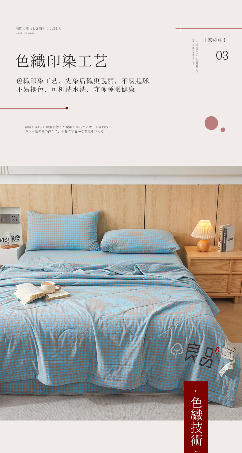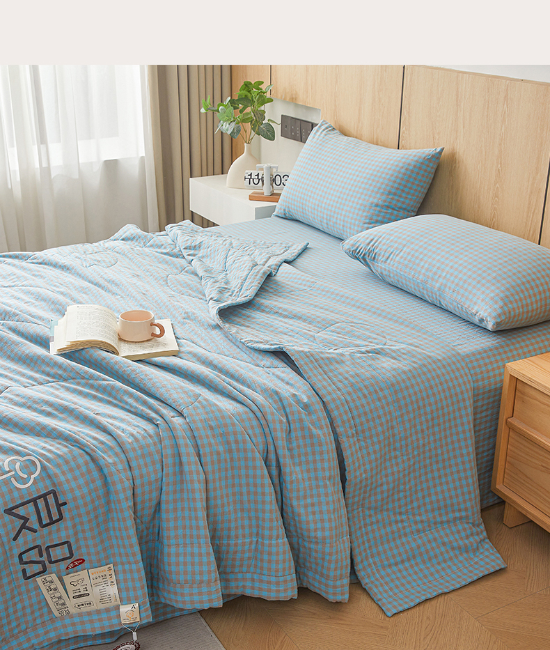 当前位置: 91家纺网 > 商品网购 > 床品套件 > 四件套 > 夏被四件套 > 悦织语 2025新款全棉水洗色织新疆棉100%棉花刺绣款无印风夏被四件套 蓝小格