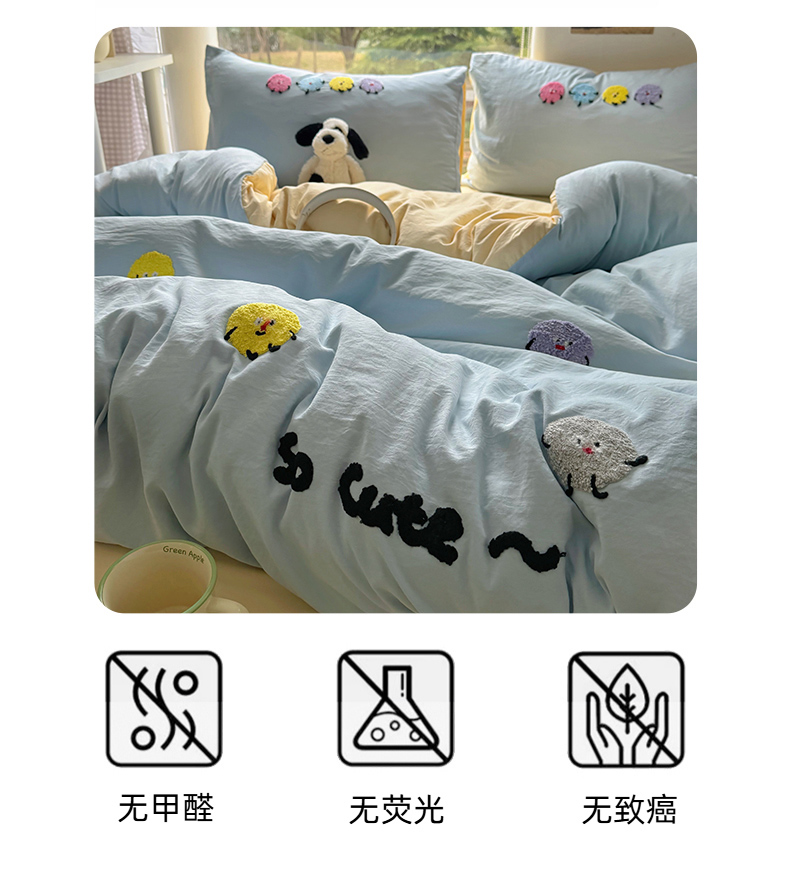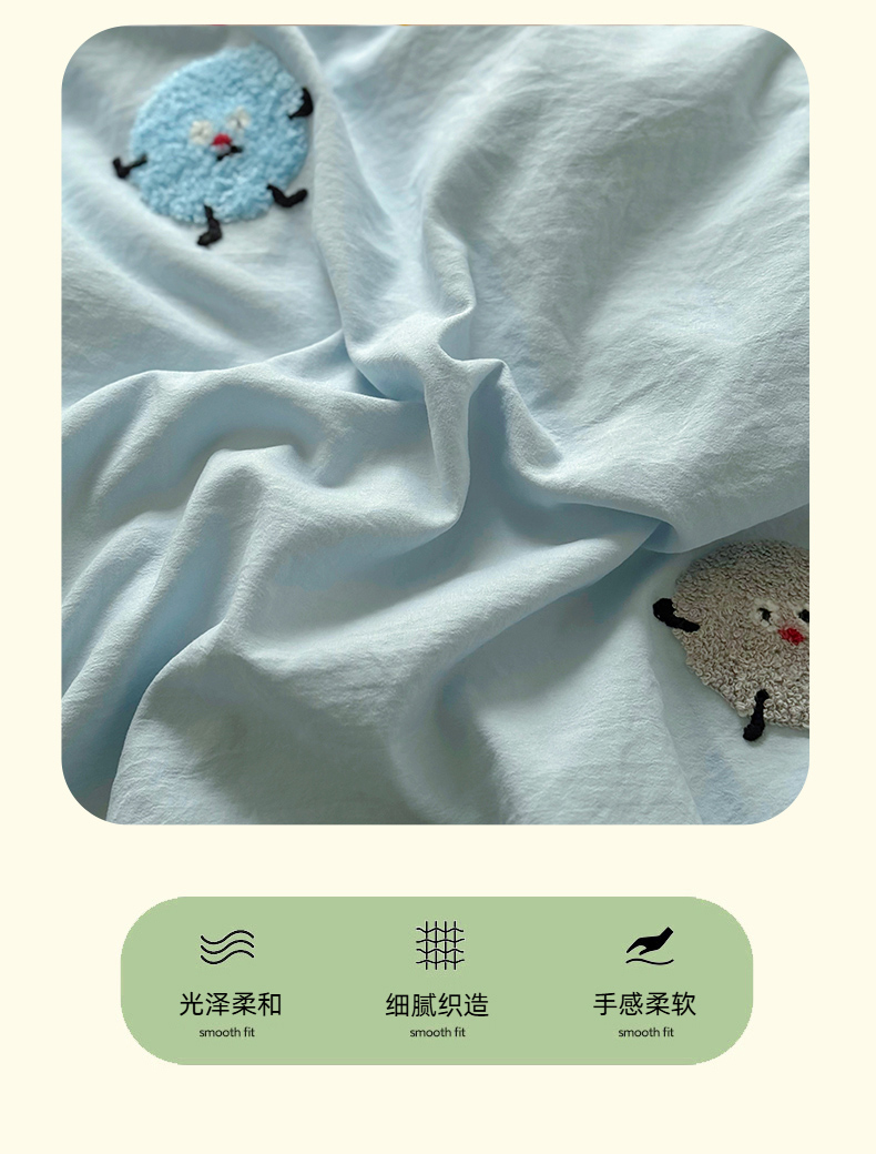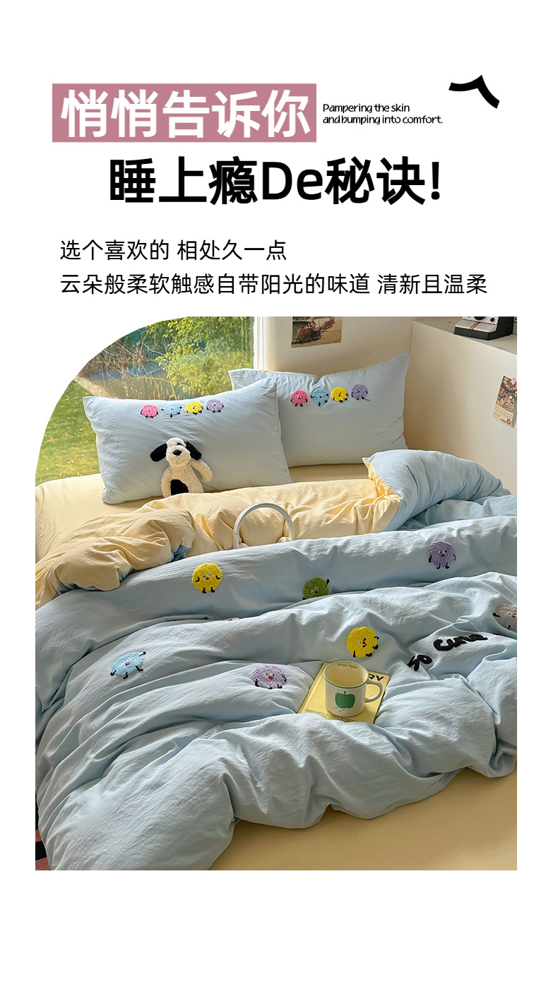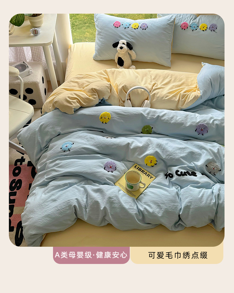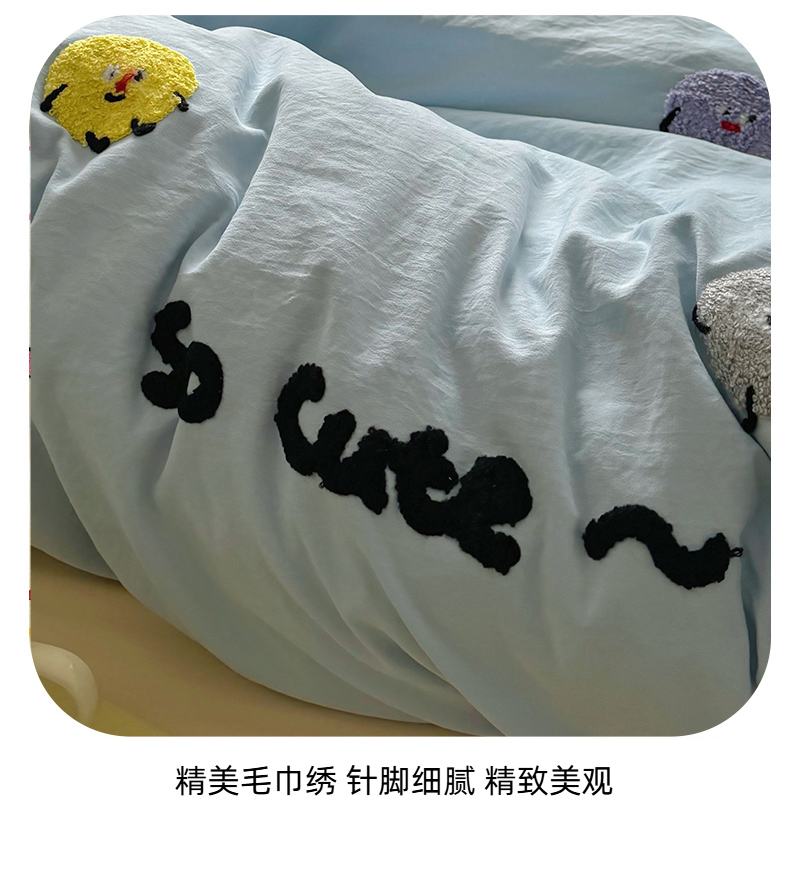 当前位置: 91家纺网 > 商品网购 > 床品套件 > 四件套 > 水洗棉四件套 > 耀达家居 2025新款A类水洗棉毛巾绣四件套 奇趣豆-海盐