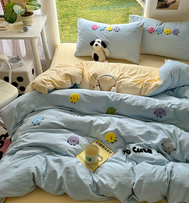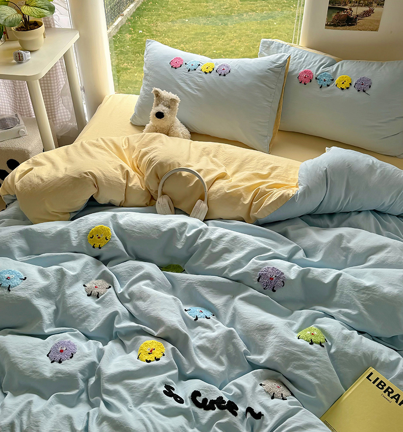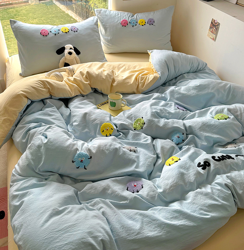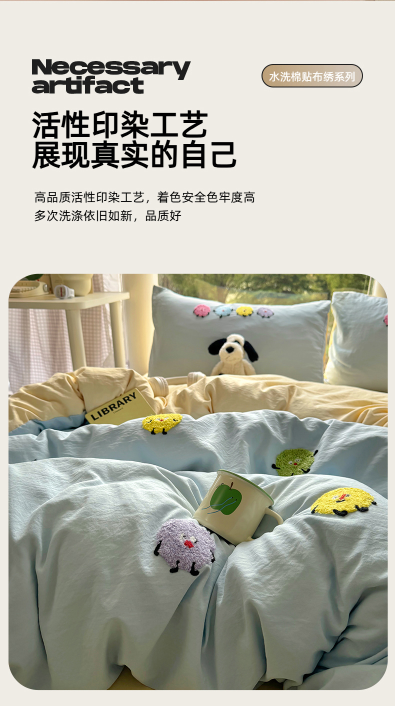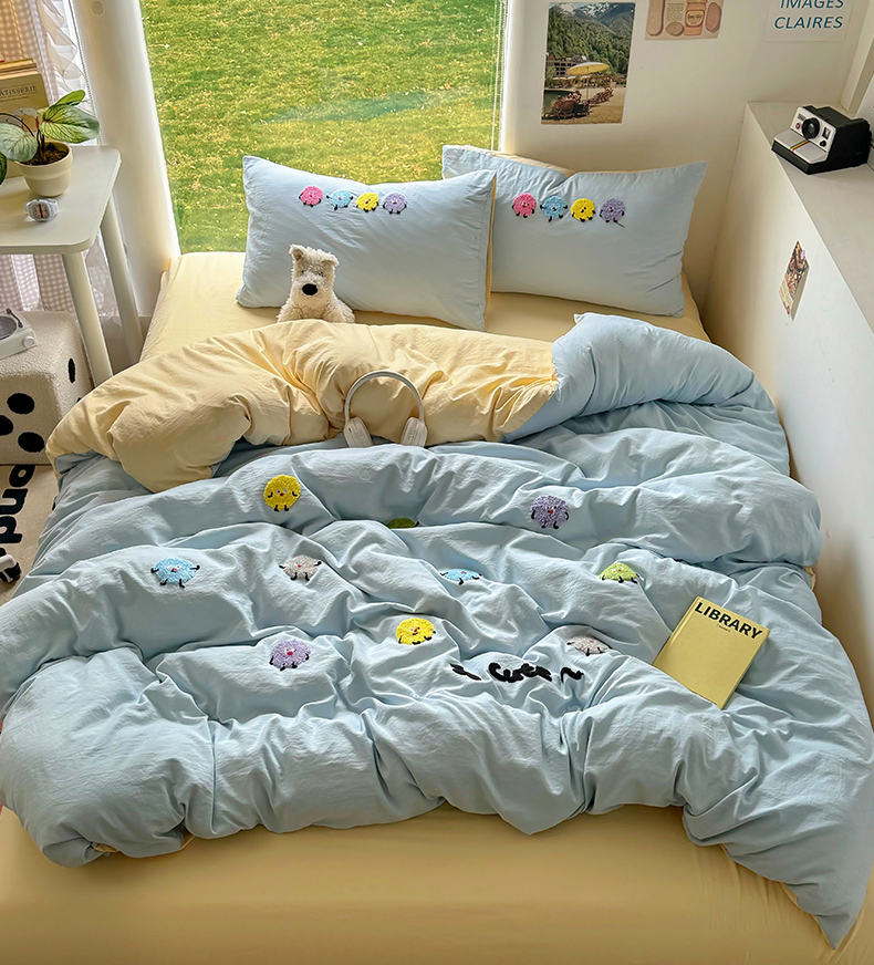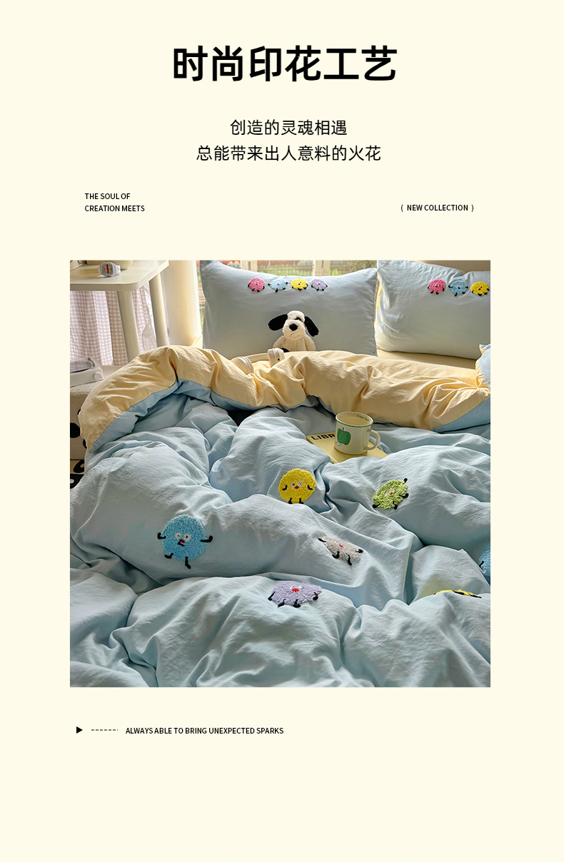 当前位置: 91家纺网 > 商品网购 > 床品套件 > 四件套 > 水洗棉四件套 > 耀达家居 2025新款A类水洗棉毛巾绣四件套 奇趣豆-海盐