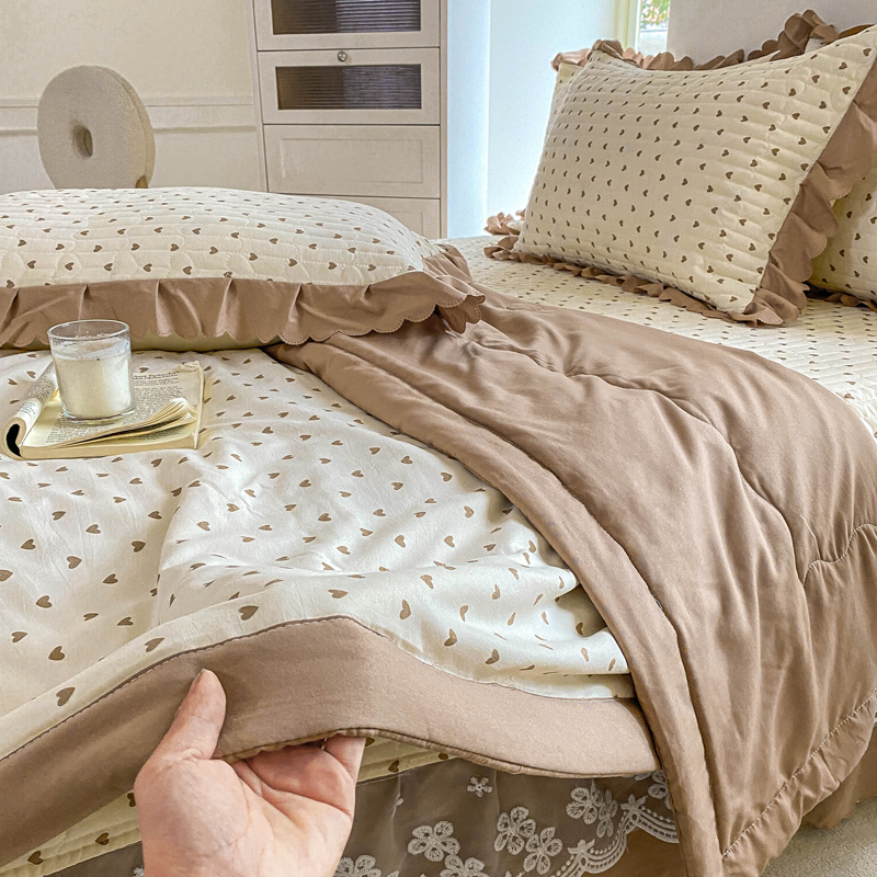 当前位置: 91家纺网 > 商品网购 > 床品套件 > 四件套 > 针织棉四件套 > 2025新款直播热款A类针织棉双层纱床盖款夏被四件套 小心心咖
