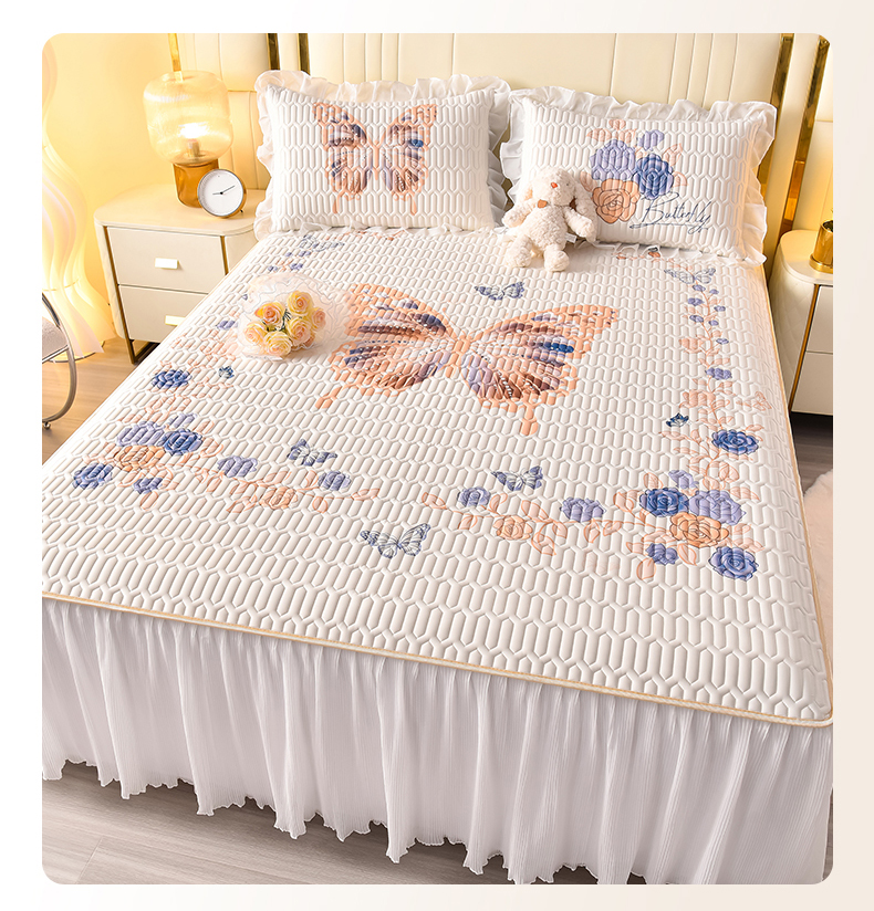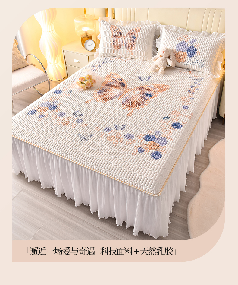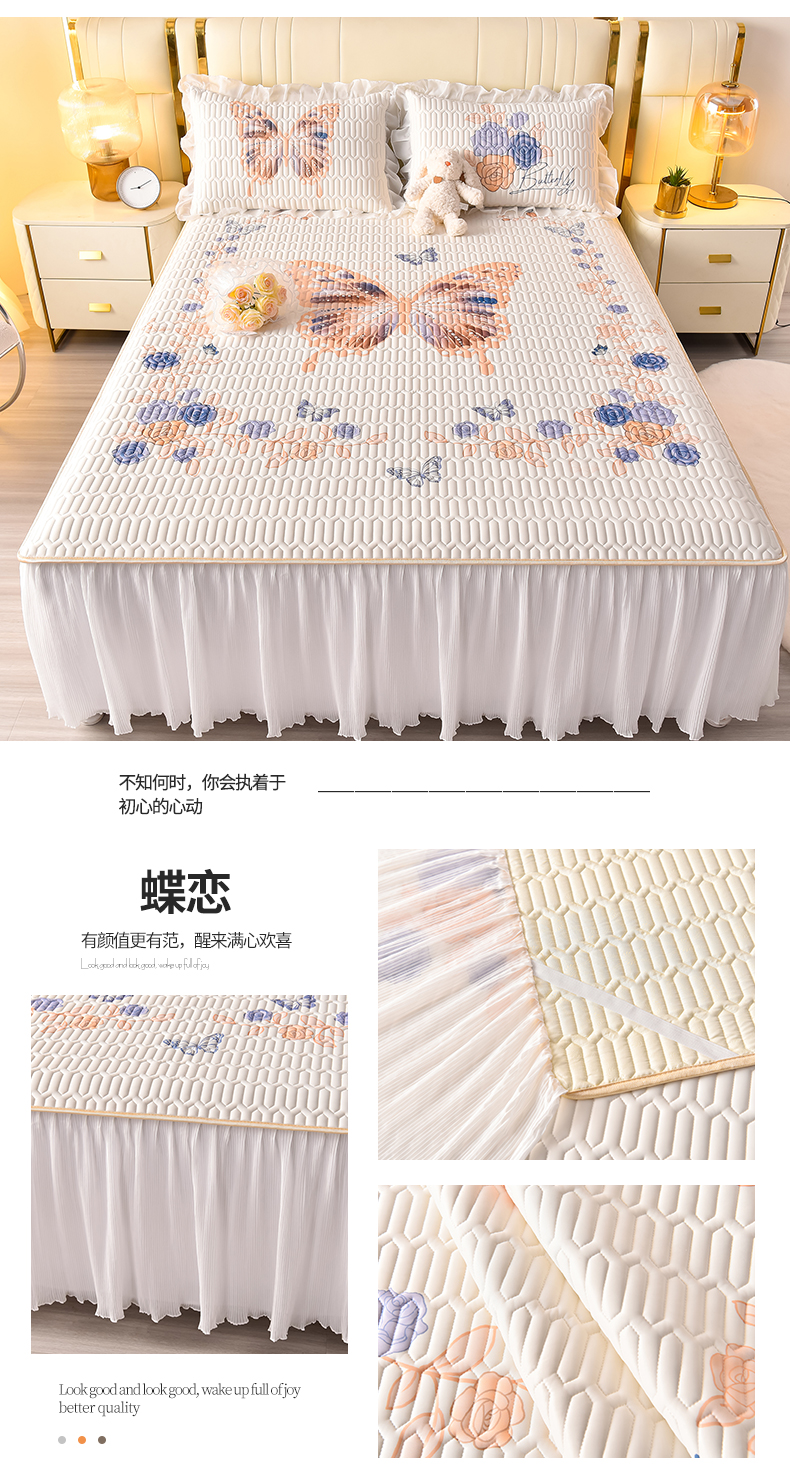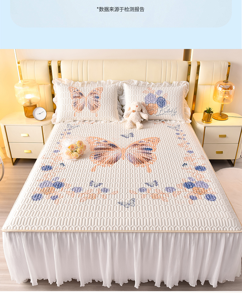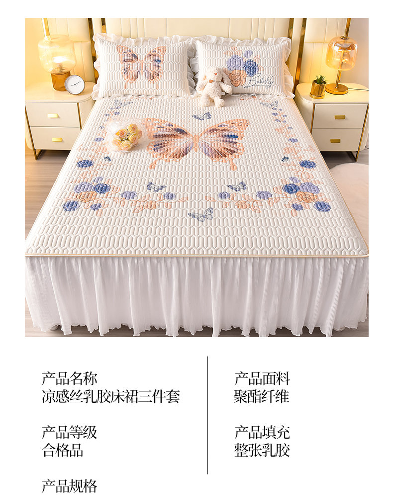炫拼家纺 2025新款凉感丝印花床裙款乳胶凉席三件套 蝶恋