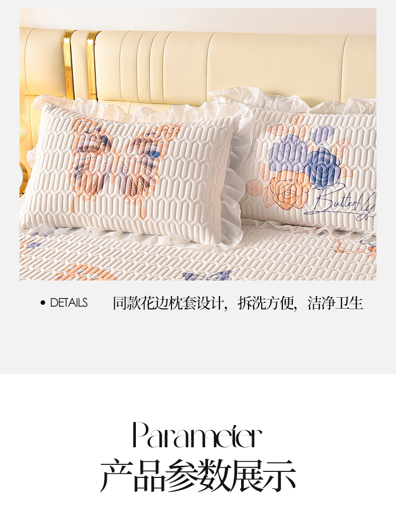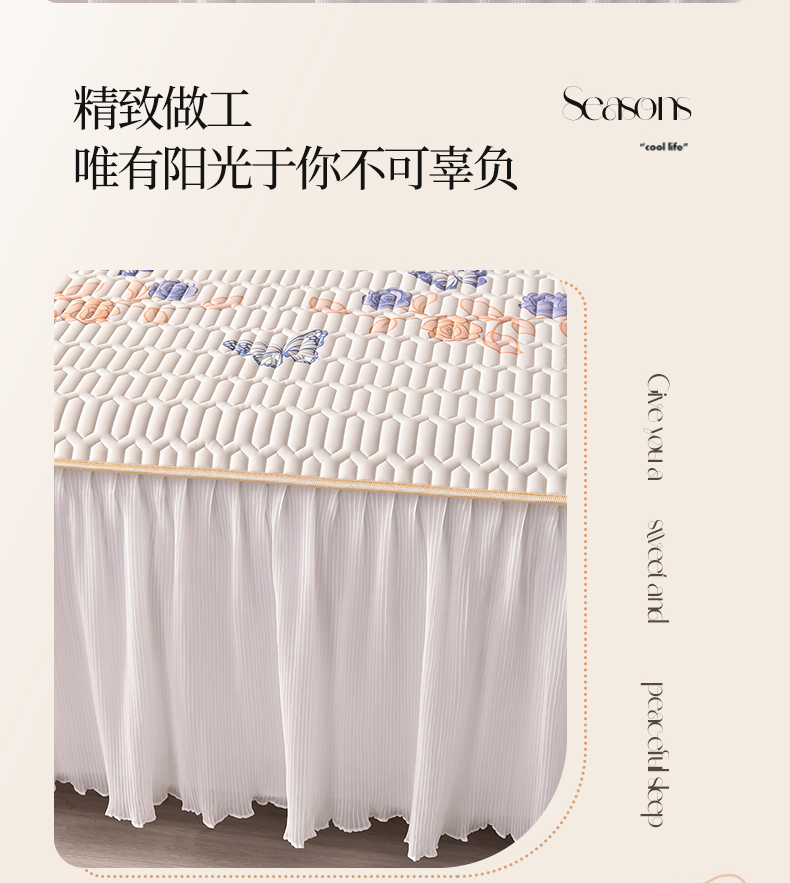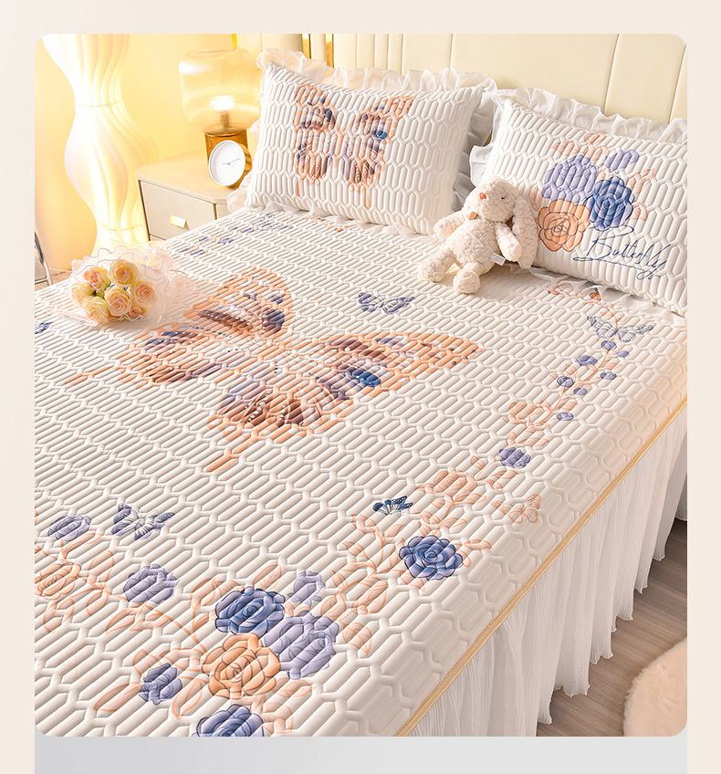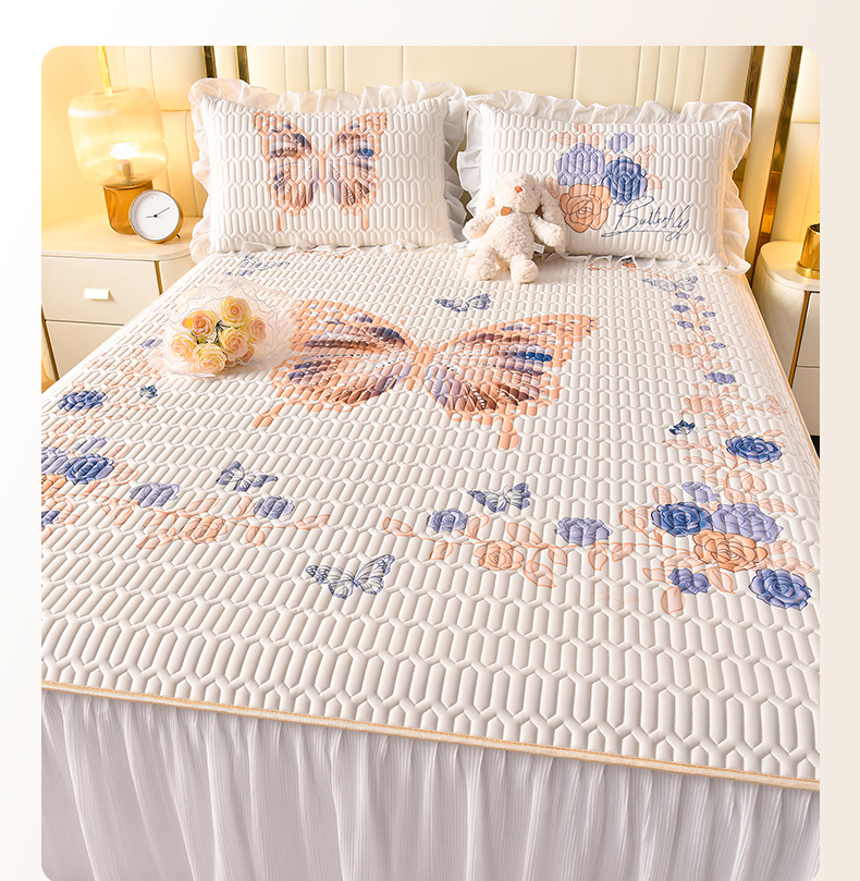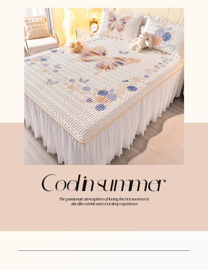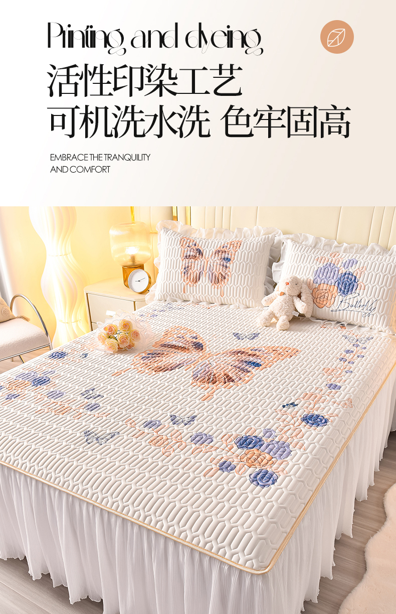 炫拼家纺 2025新款凉感丝印花床裙款乳胶凉席三件套 蝶恋