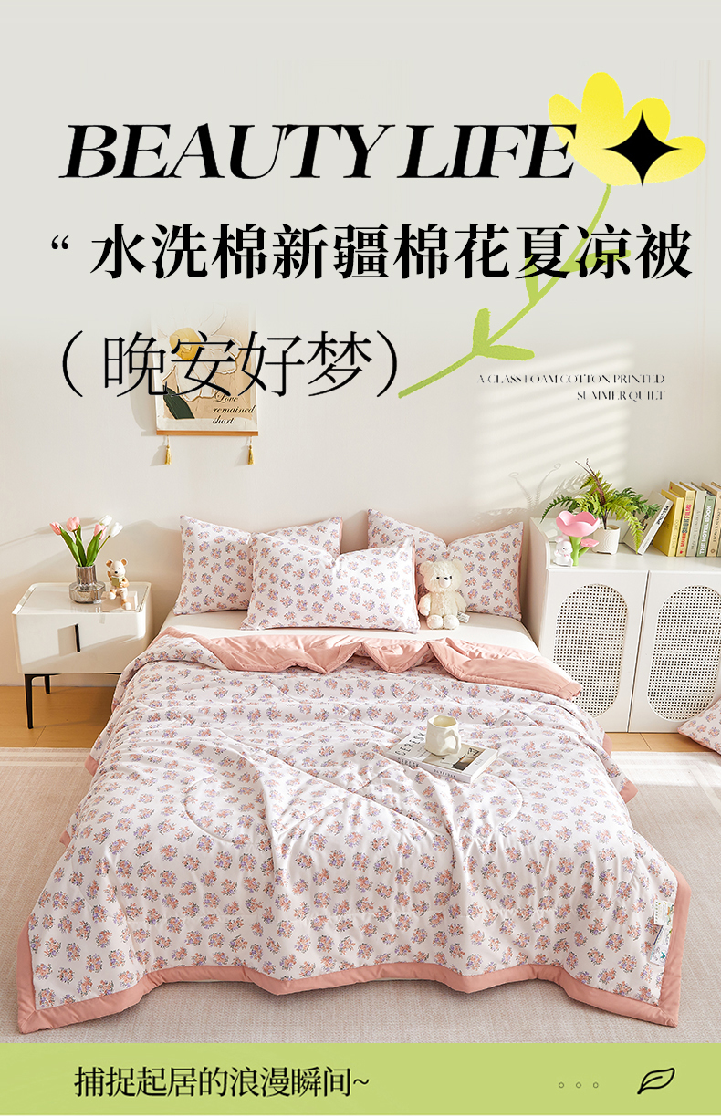 海洋家纺 2025款水洗棉纯棉花夏凉被全棉花印花夏被空调被薄被子 悠然粉,悠然粉