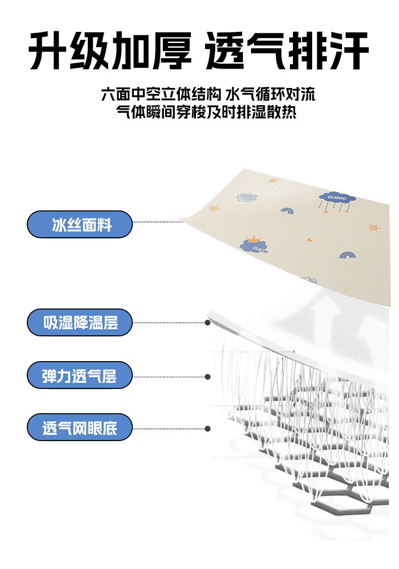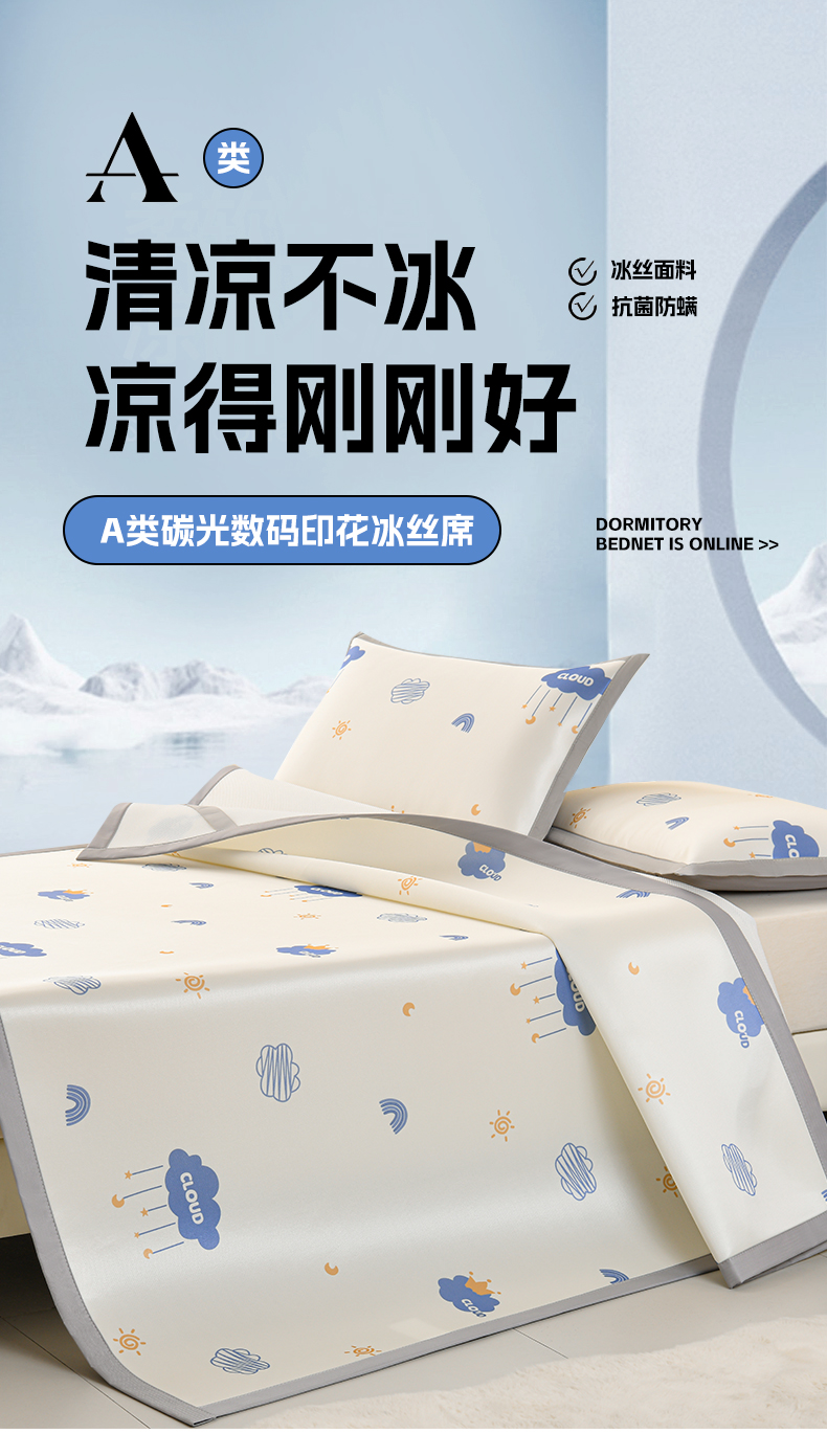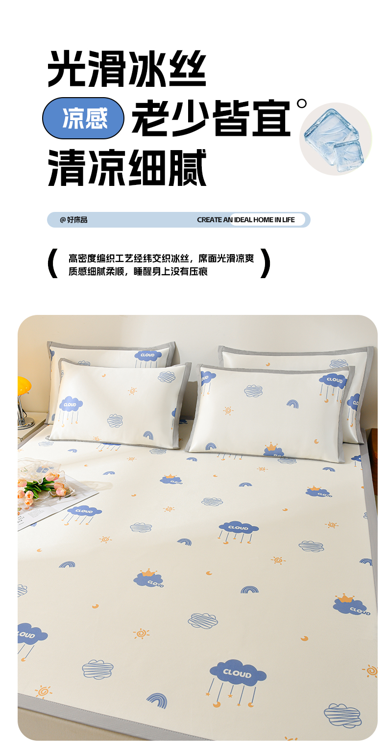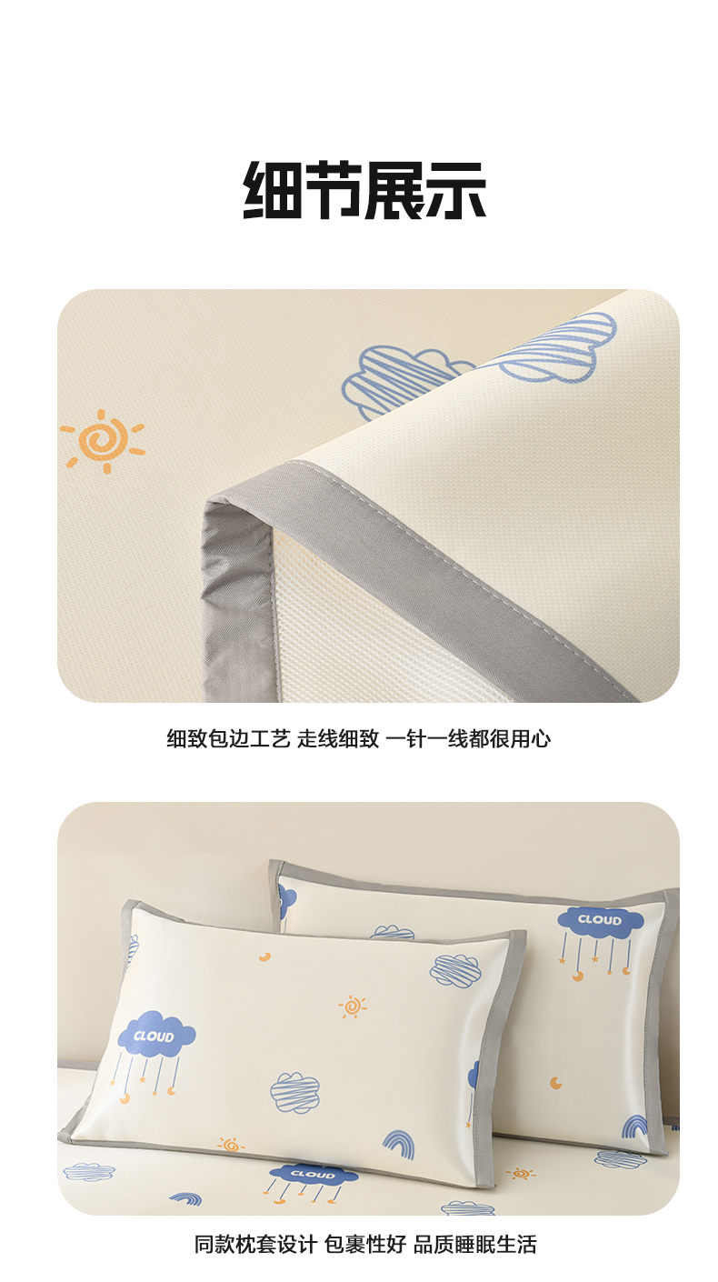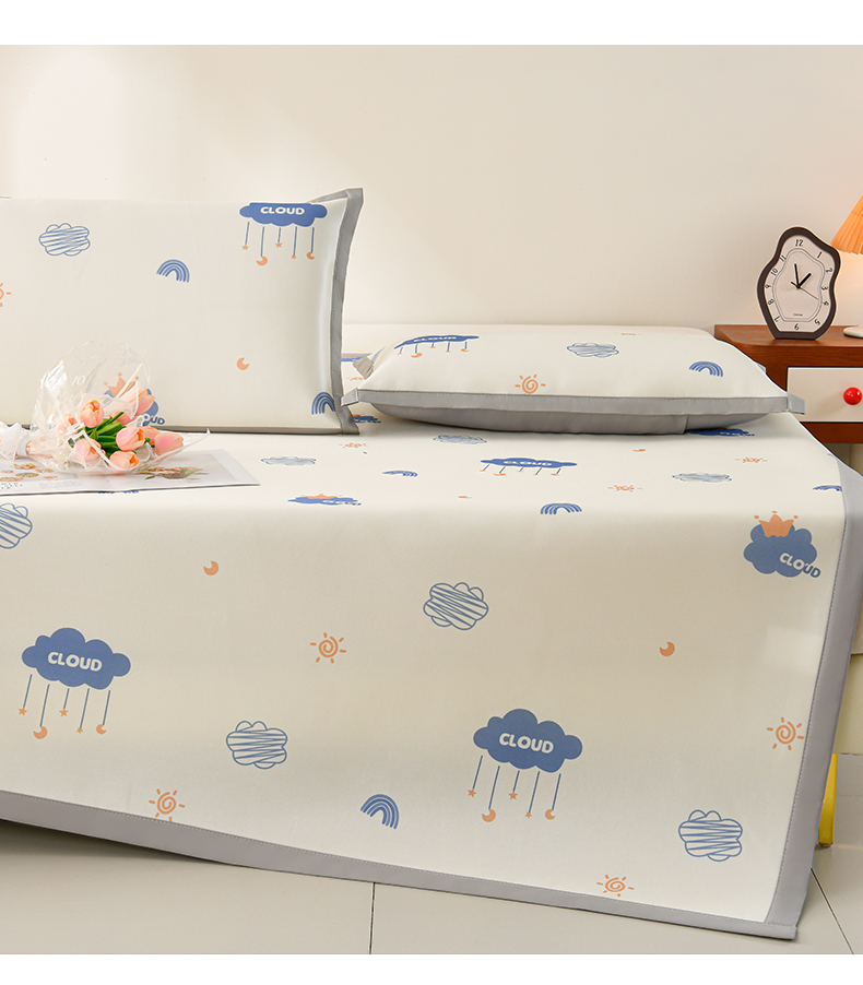 商品名称:简一 2025新款A类碳光印花数码冰丝凉席系列-床单款 蓝天白云