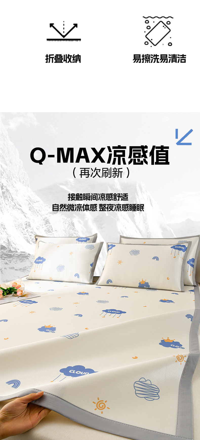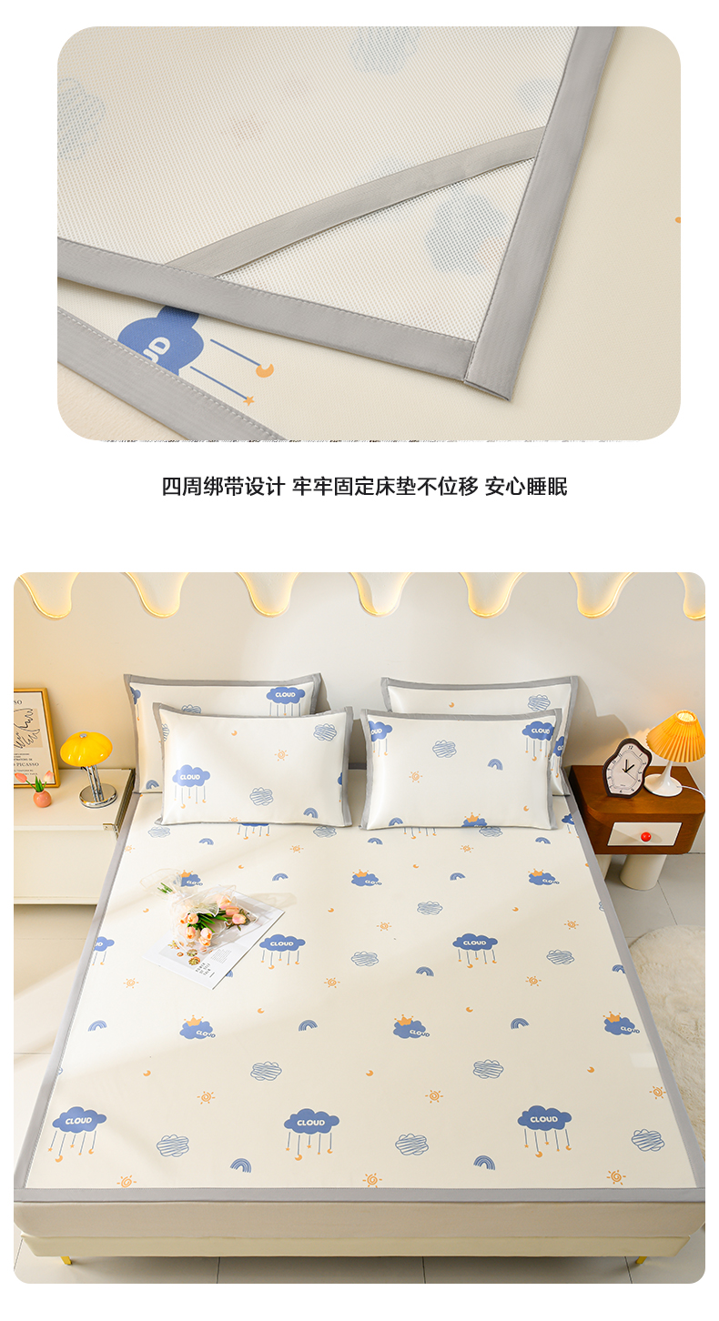 简一 2025新款A类碳光印花数码冰丝凉席系列-床单款 蓝天白云