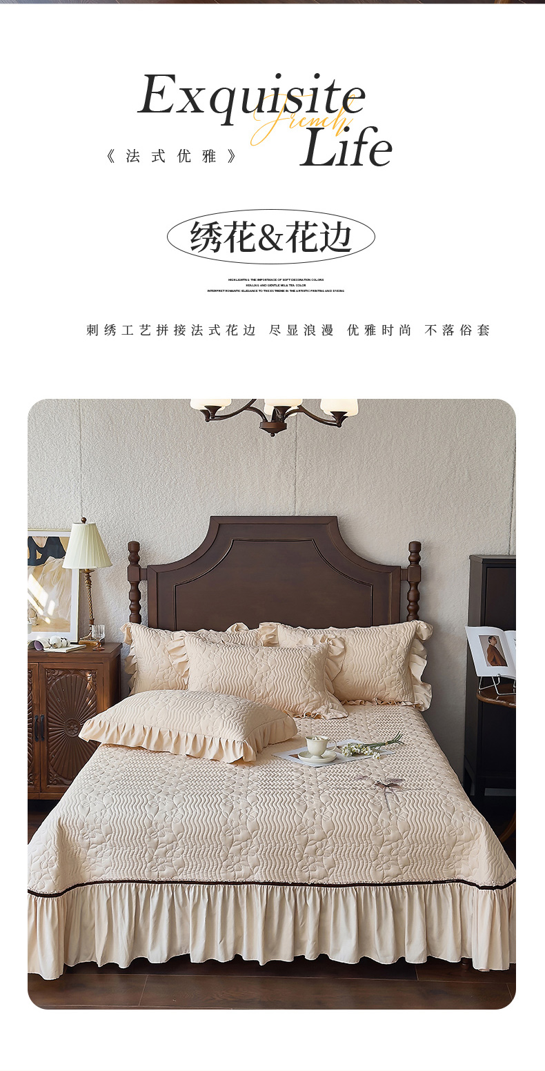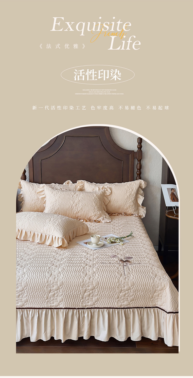(总)乐朵家居 2025新款 25-1 芯语 蕾丝床裙,豆沙,灰,卡其,绿,米,紫