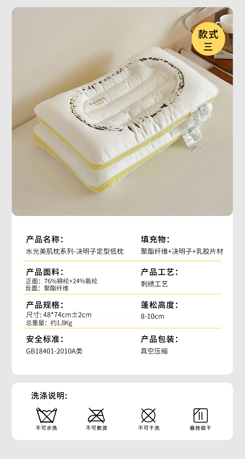 当前位置: 91家纺网 > 商品网购 > 枕头/枕芯/保健枕/颈椎枕 > 普通枕芯 > 微枕芯 2025新款水光美肌枕 决明子定型低枕【单只装】48x74