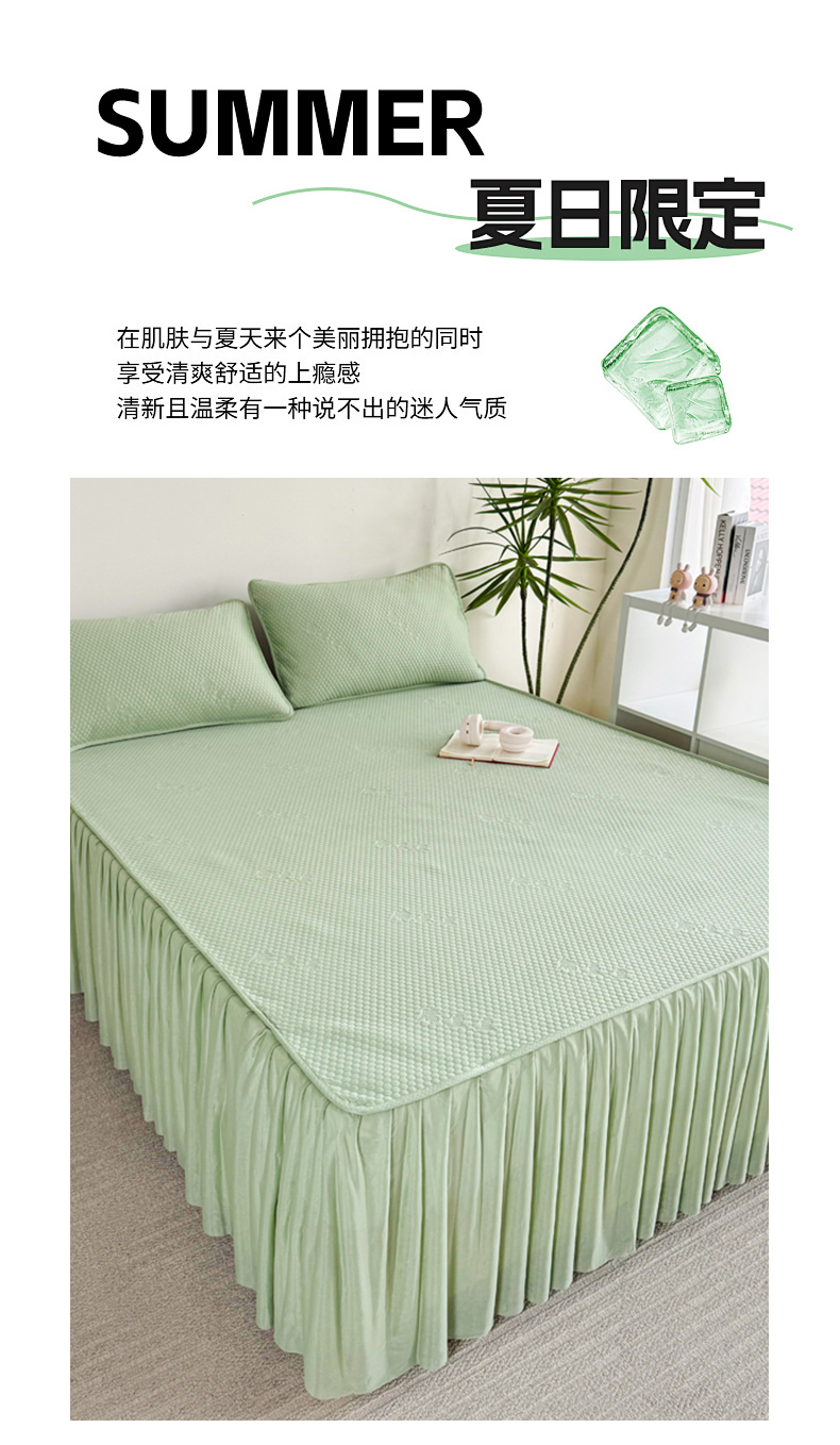 许林 2025新款冰丝凉席床单款凉席三件套-长夏,长夏