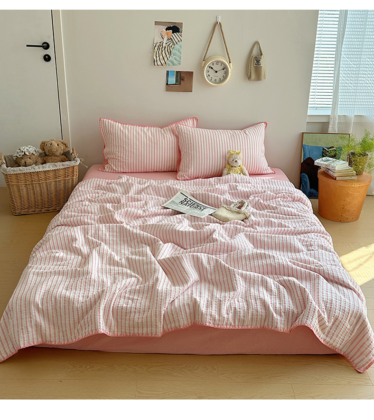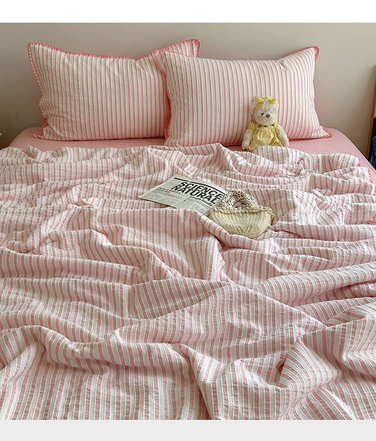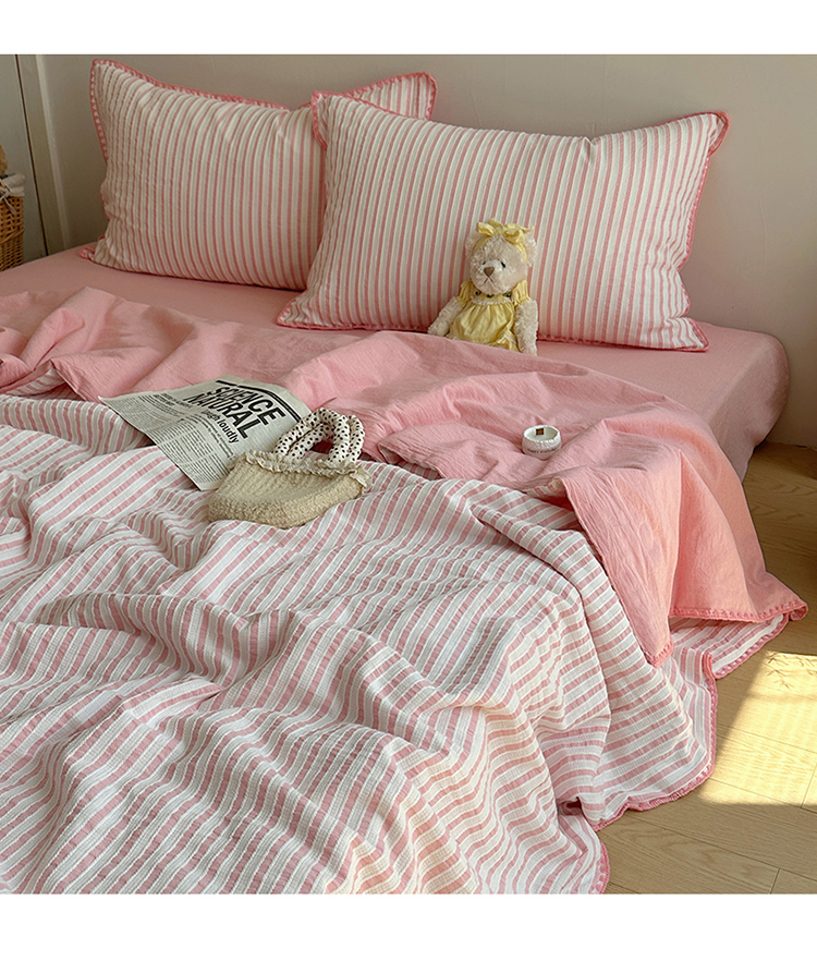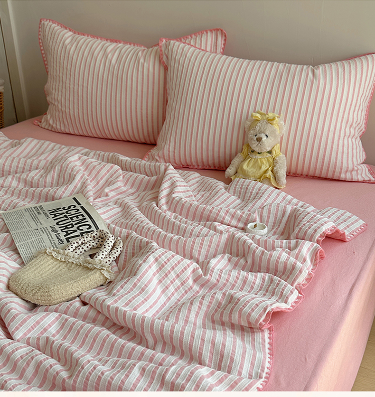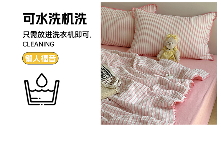 2025新款全棉纯棉水洗棉提花贝壳边夏被夏凉被空调被 落樱粉
