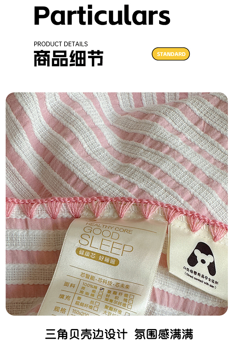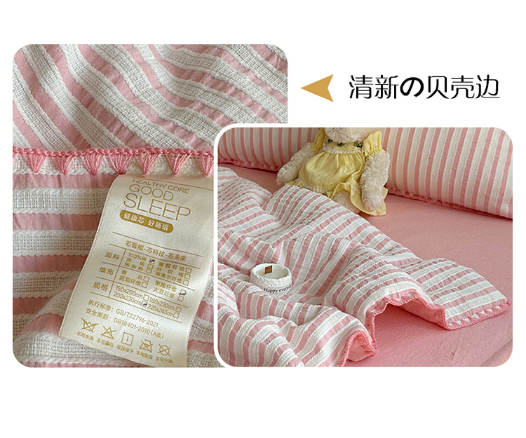 商品名称:2025新款全棉纯棉水洗棉提花贝壳边夏被夏凉被空调被 落樱粉