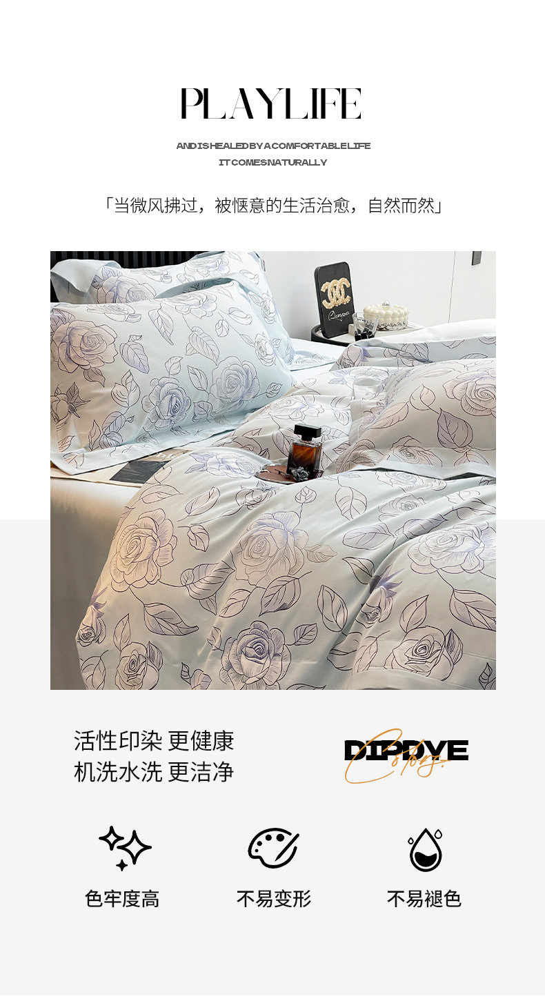 商品名称:(总)2025新款夏季热款A类母婴级数码印花全棉四件套高端纯棉被套长绒棉床单床笠床上用品
