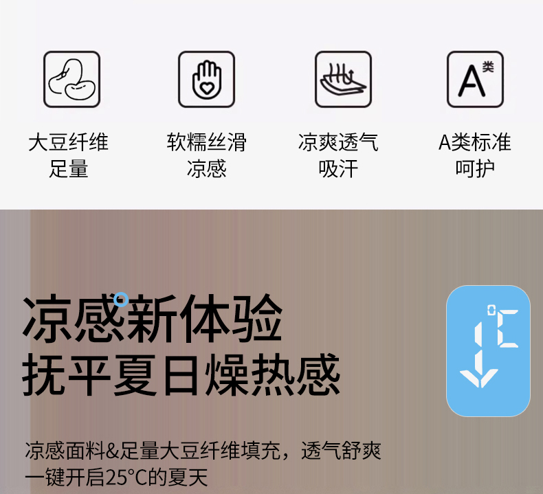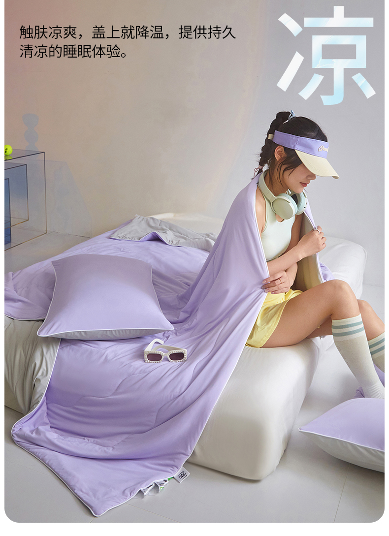 头等舱 2025新款4.0版凉感A类锦氨(165克)55大豆抗菌夏凉被夏被配礼盒模特图 嫣然紫拼浅灰