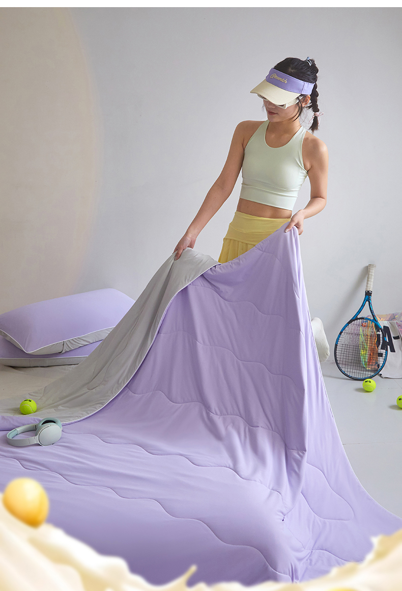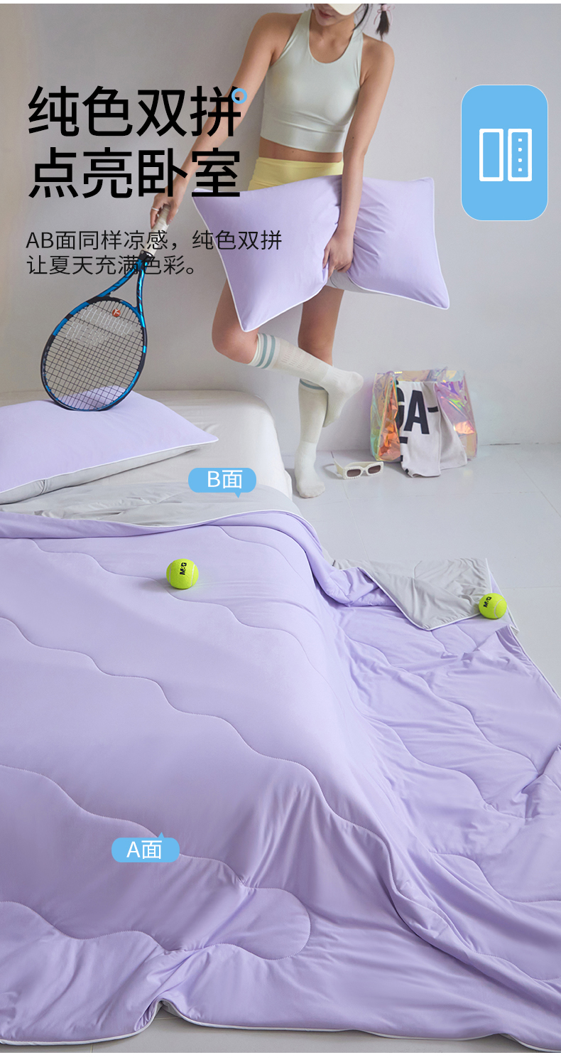 被子 > 夏被 > 头等舱 2025新款4.0版凉感A类锦氨(165克)55大豆抗菌夏凉被夏被配礼盒模特图 嫣然紫拼浅灰