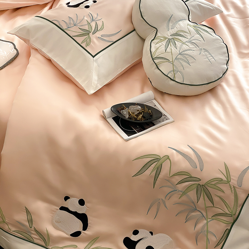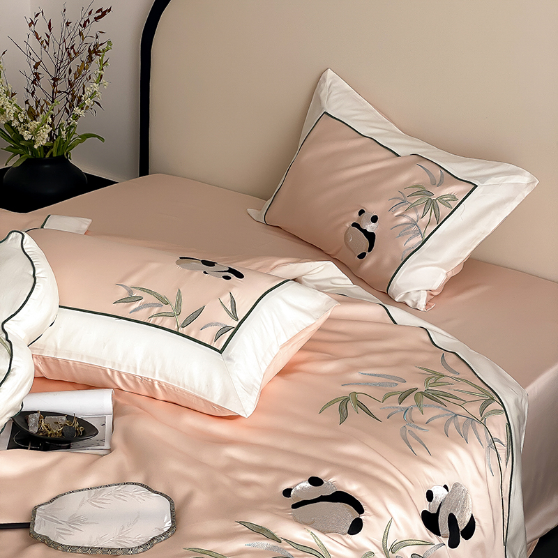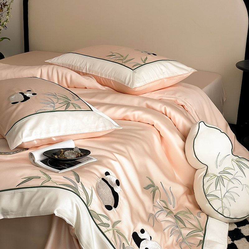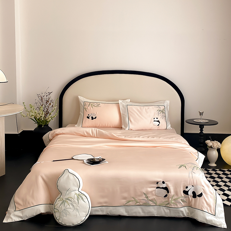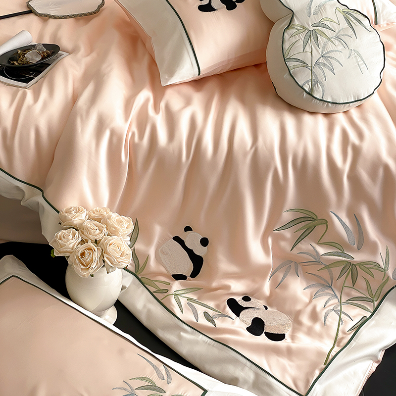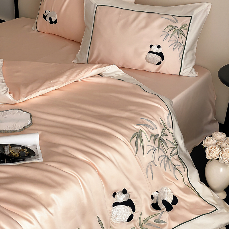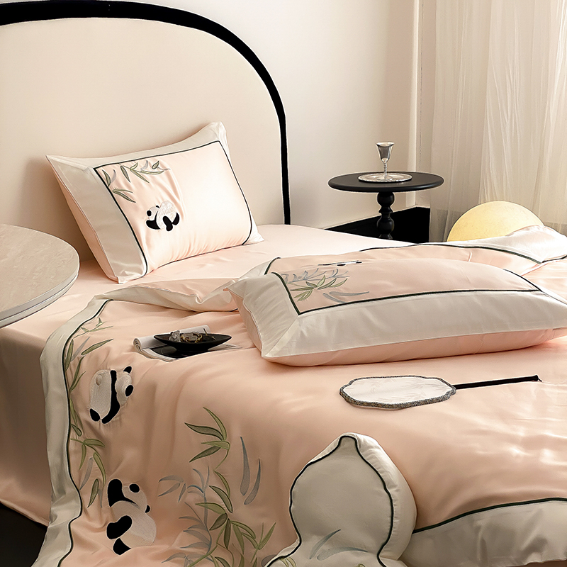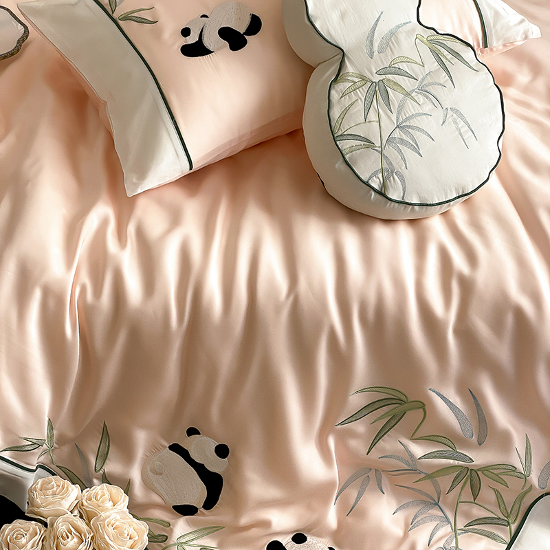 MIU缪家居 2025新款60支兰精天丝四件套-熊猫与竹 熊猫与竹-浅粉