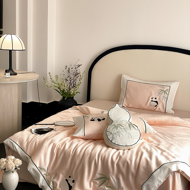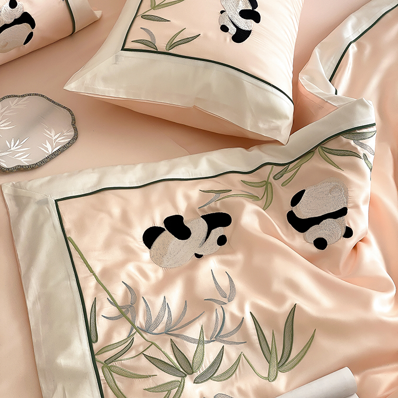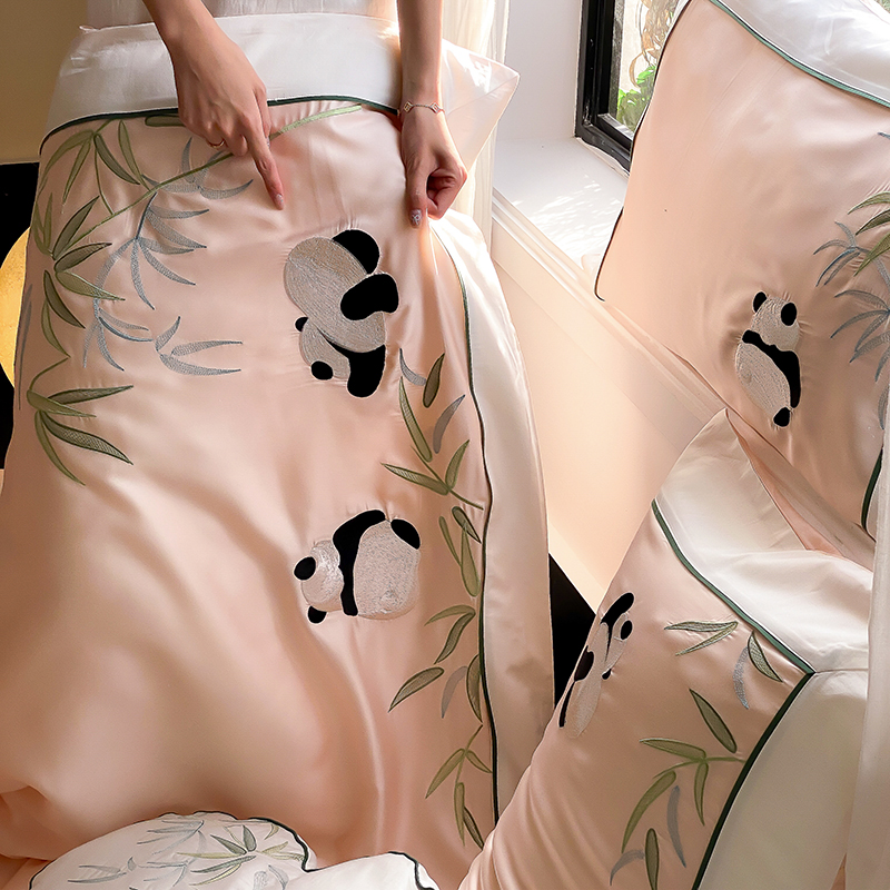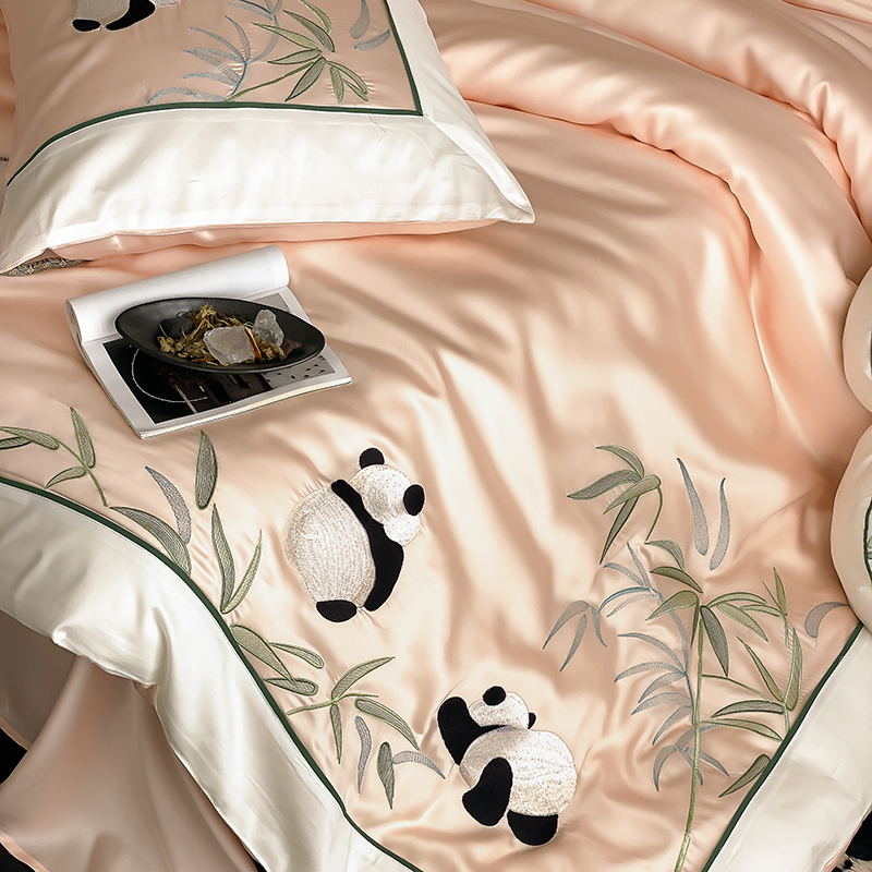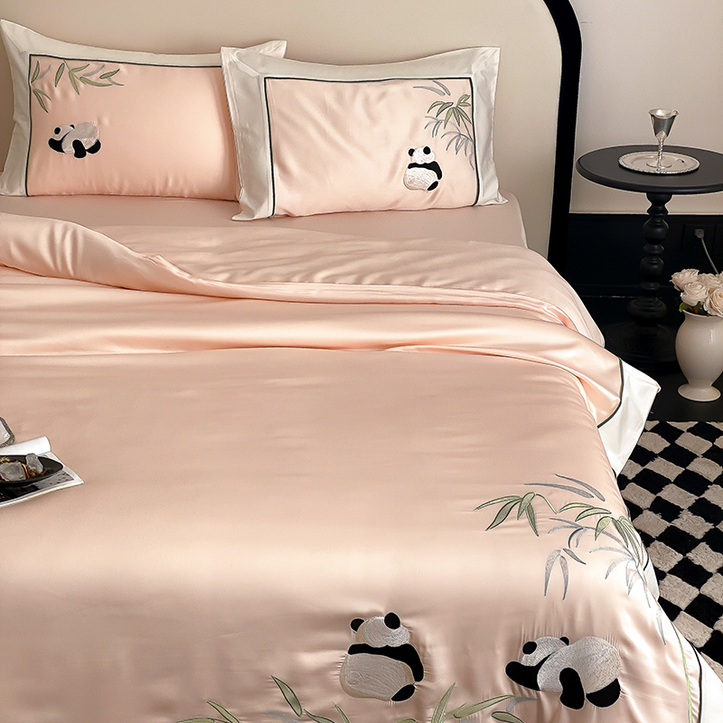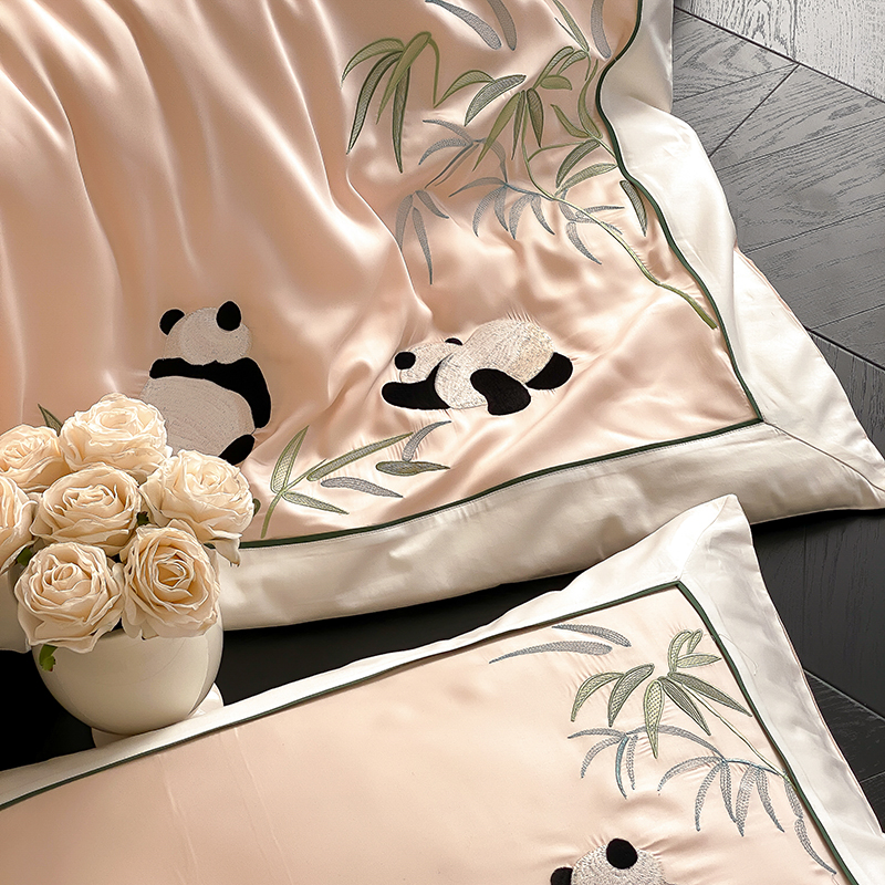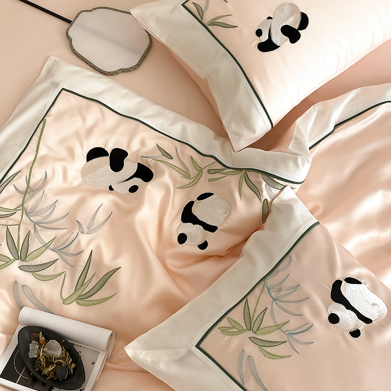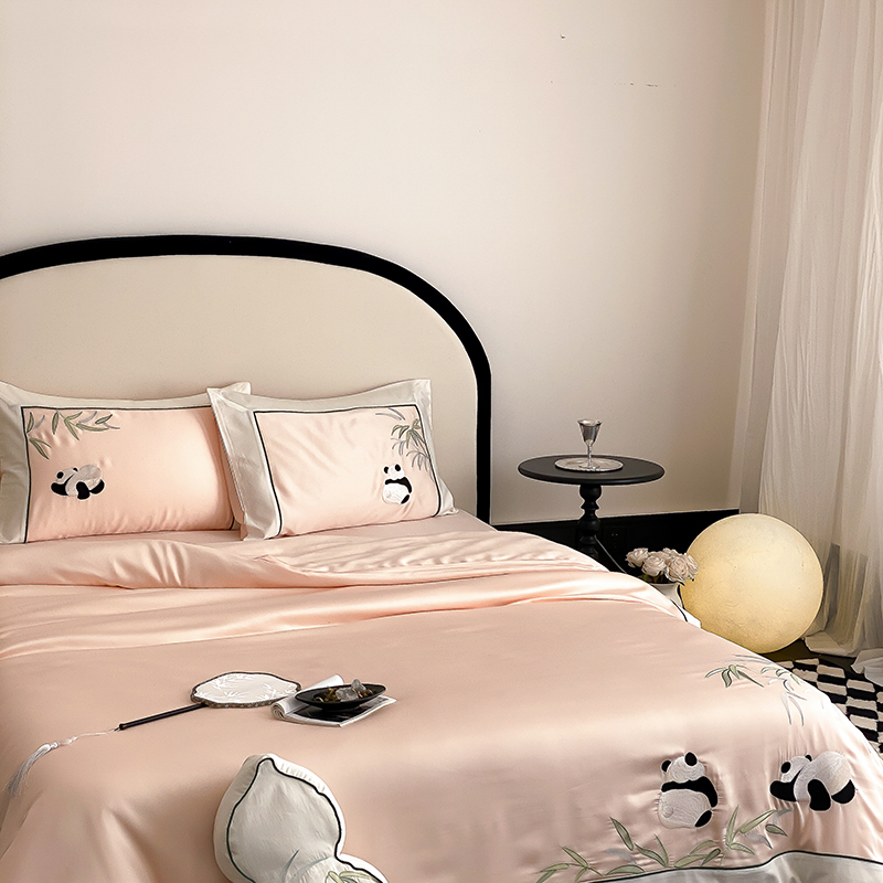 MIU缪家居 2025新款60支兰精天丝四件套-熊猫与竹 熊猫与竹-浅粉