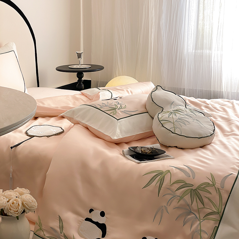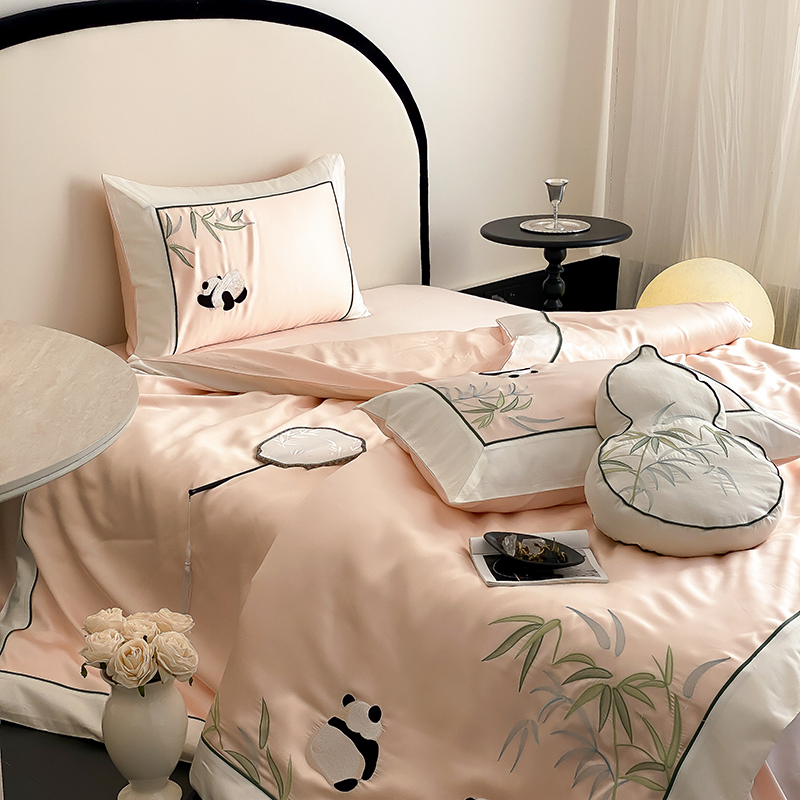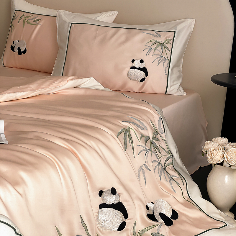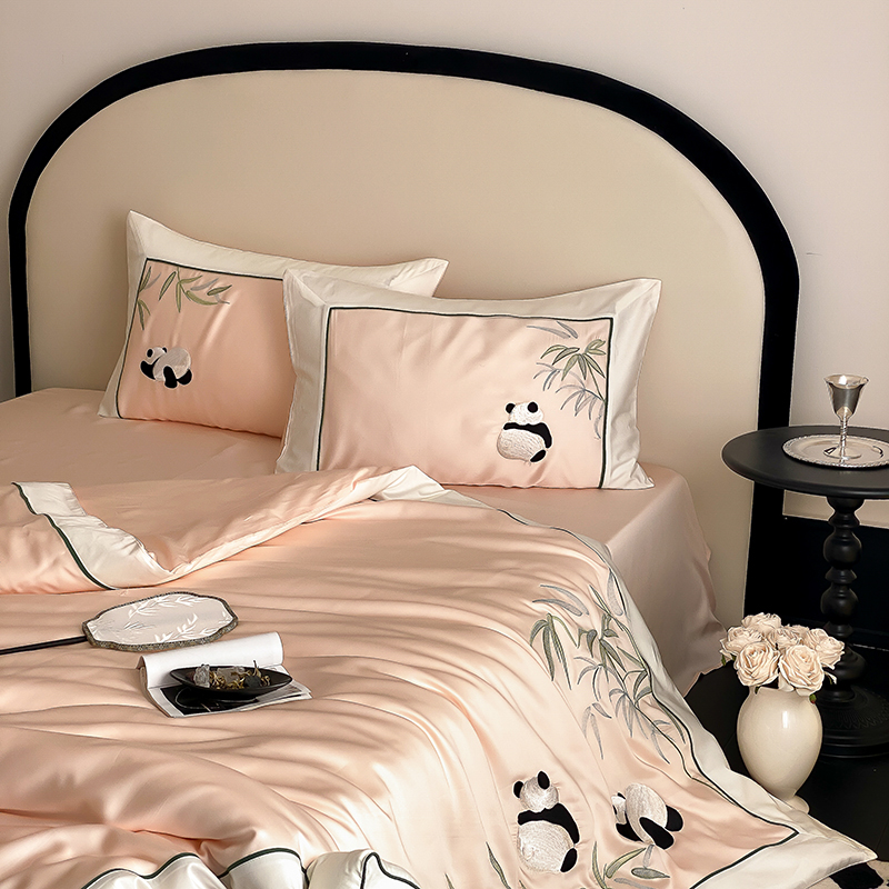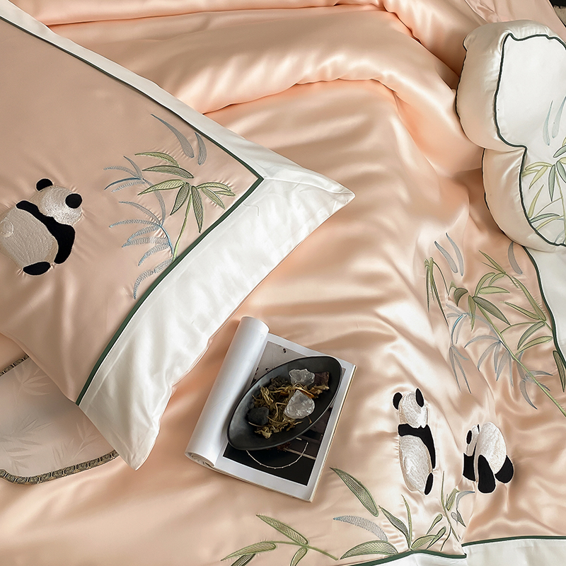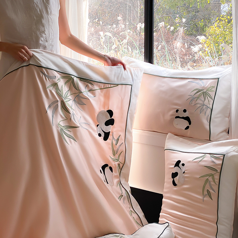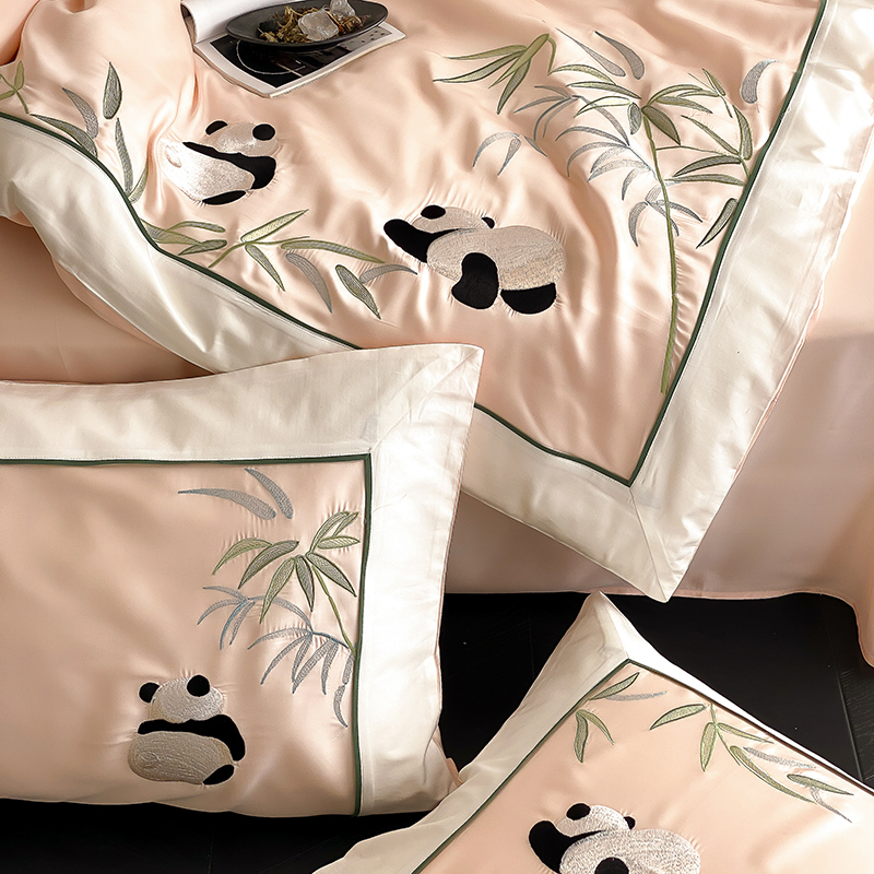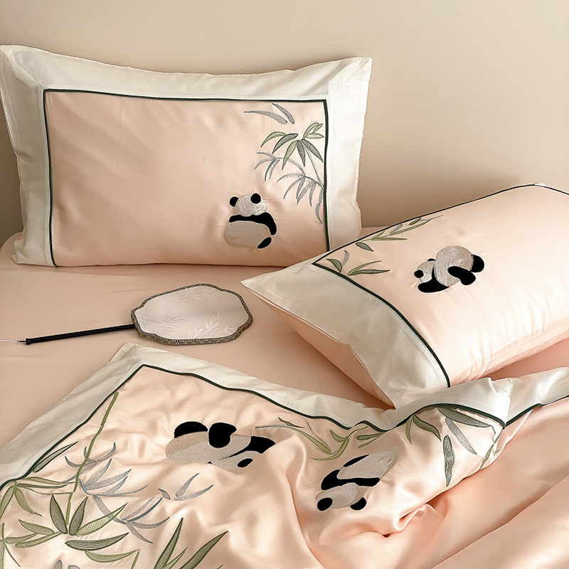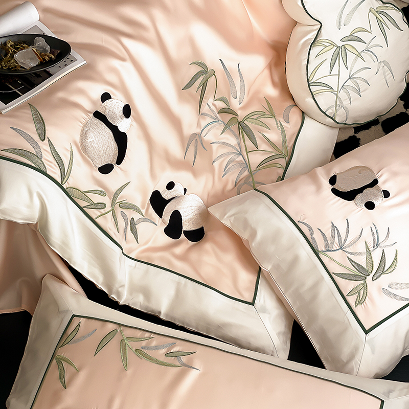 MIU缪家居 2025新款60支兰精天丝四件套-熊猫与竹 熊猫与竹-浅粉