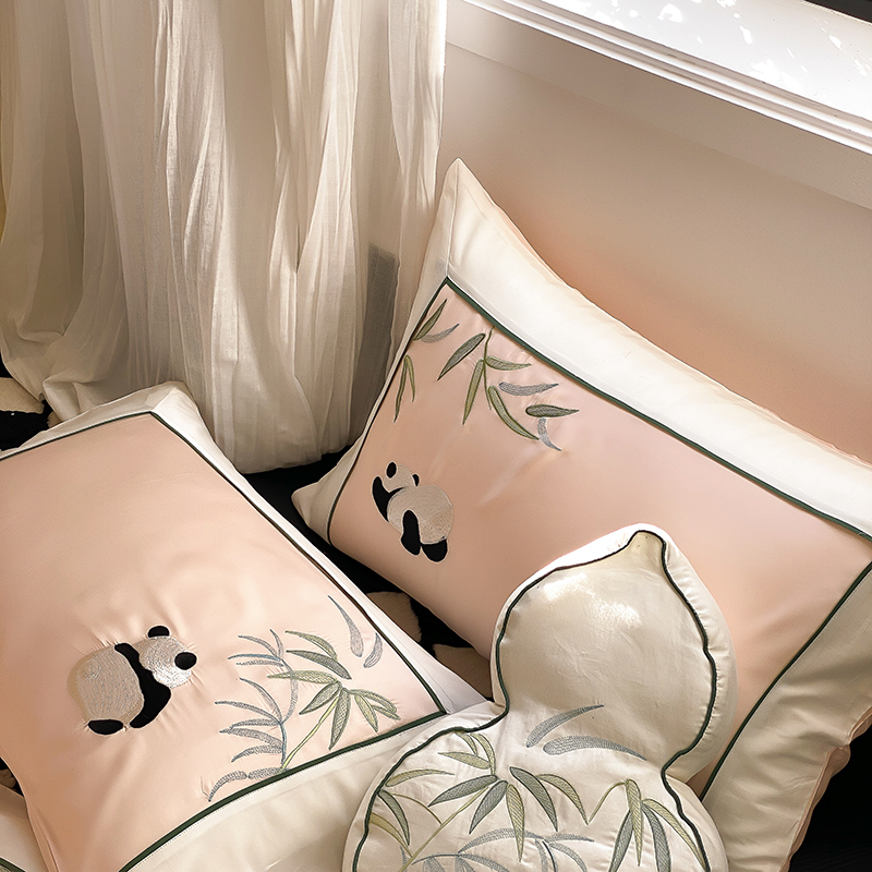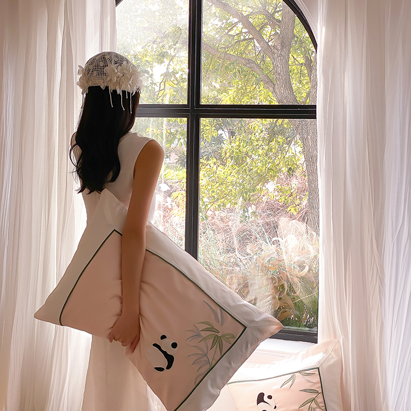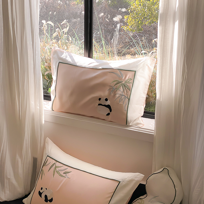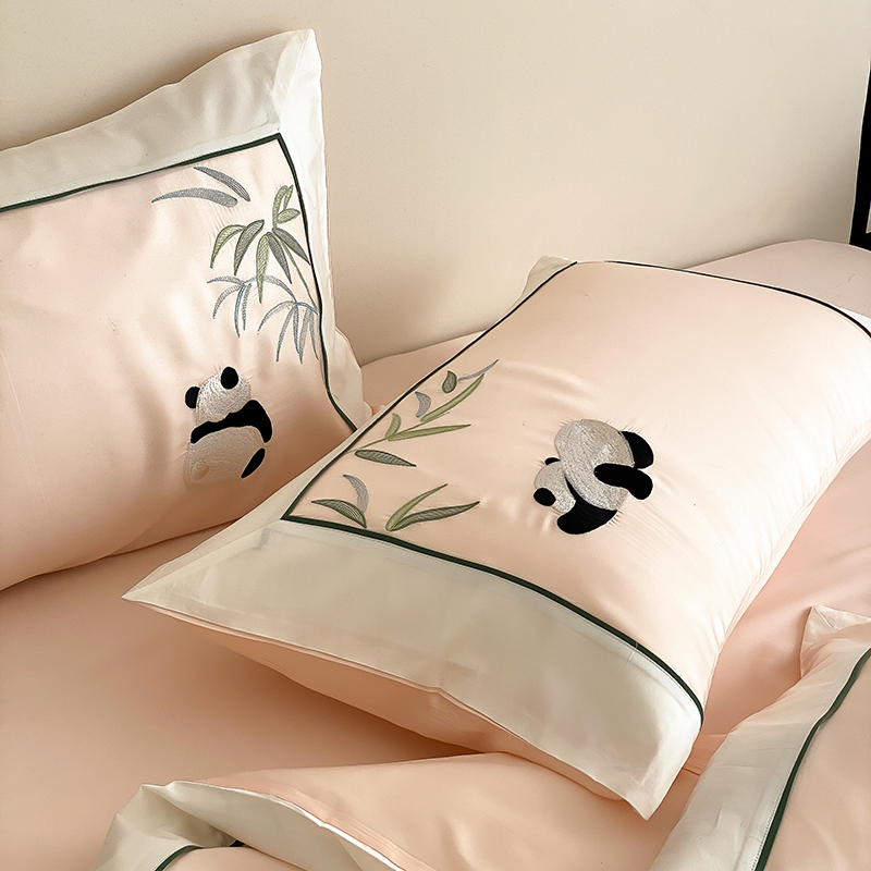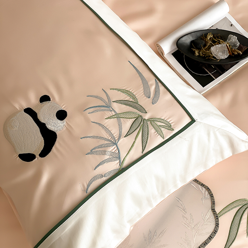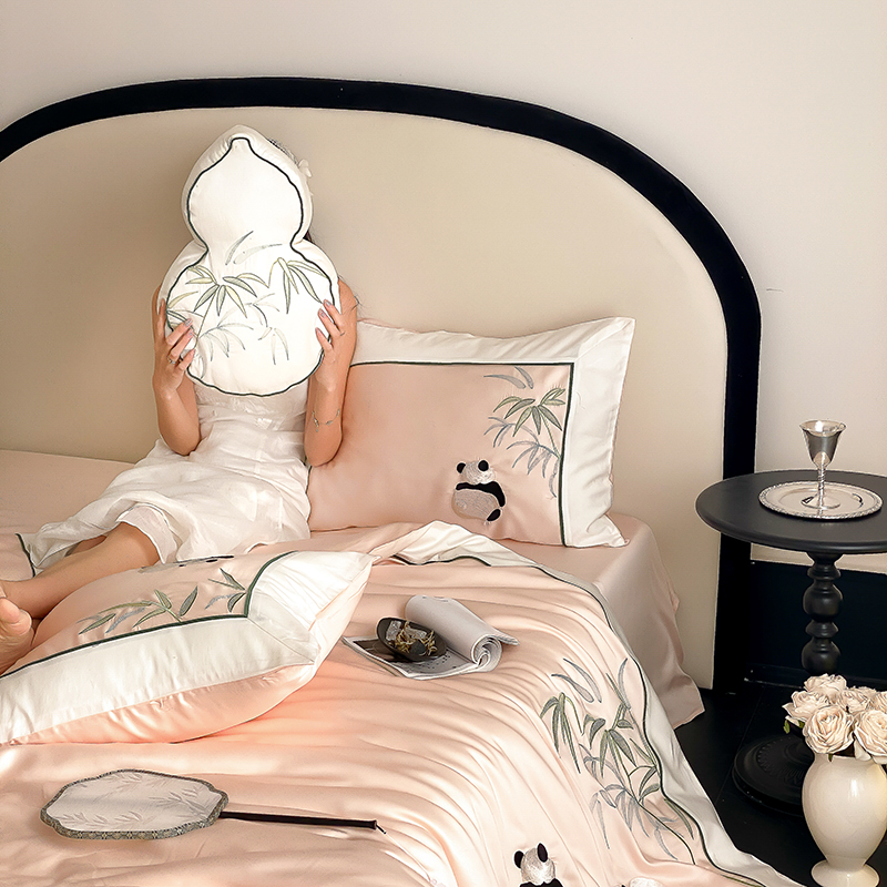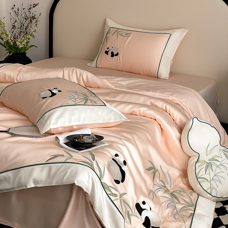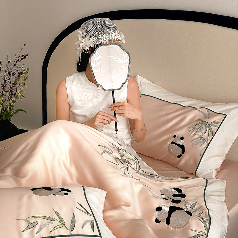 MIU缪家居 2025新款60支兰精天丝四件套-熊猫与竹 熊猫与竹-浅粉