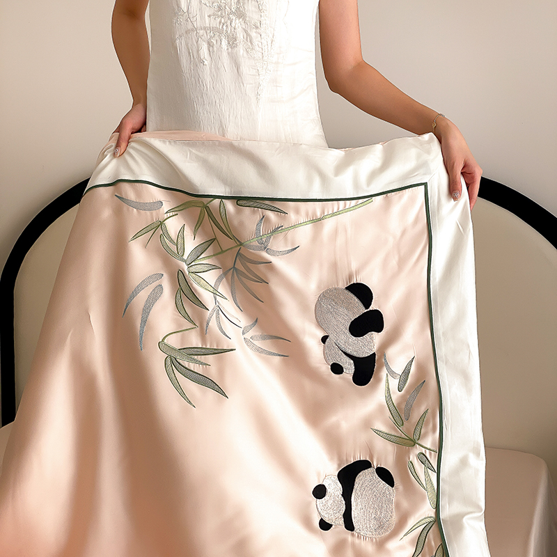 商品名称:MIU缪家居 2025新款60支兰精天丝四件套-熊猫与竹 熊猫与竹-浅粉
