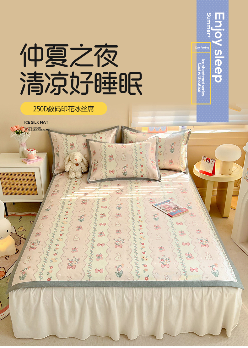 (总)懒猫家纺 2025春夏新款250D数码印花冰丝席凉席席子