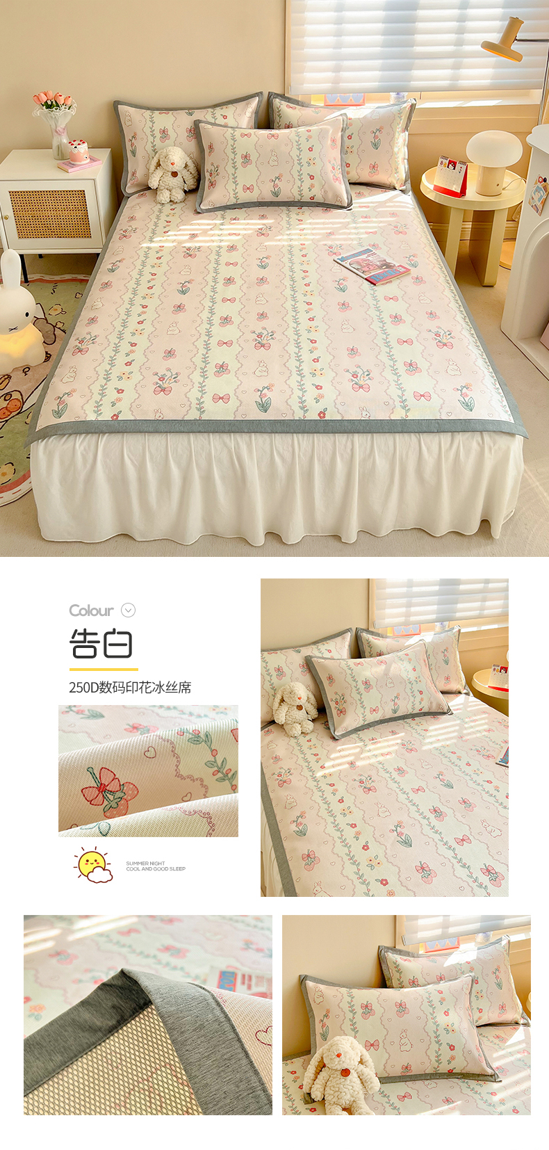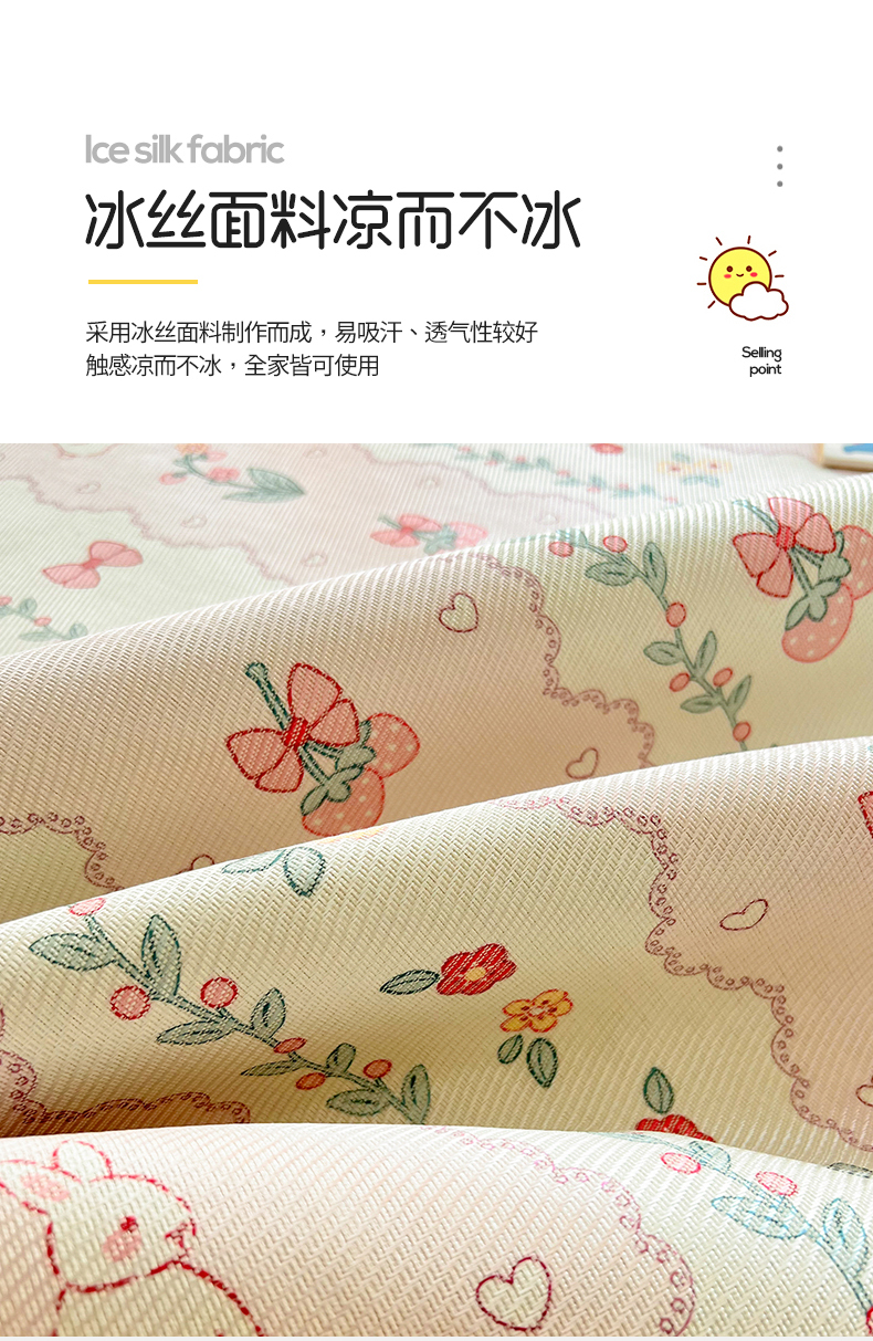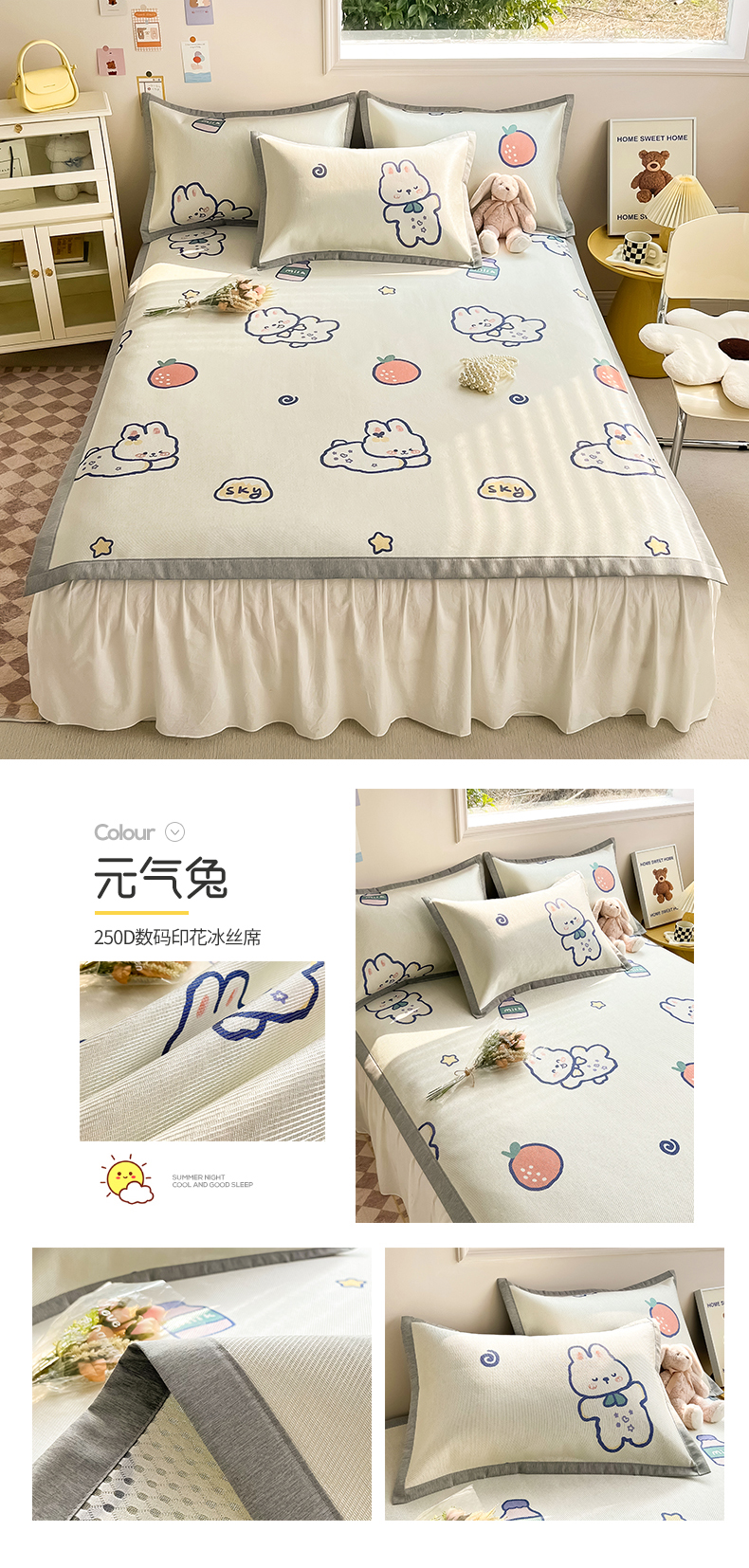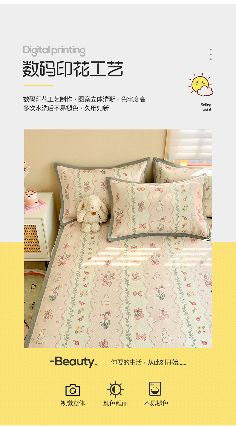 (总)懒猫家纺 2022新款学生宿舍冰丝数码印花凉席,尔雅,粉小兔,花韵,萝卜兔,清晨,手绘爱心,探索星球,甜心,小鲸鱼,小熊仔,元气兔