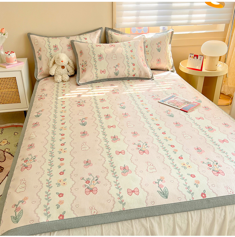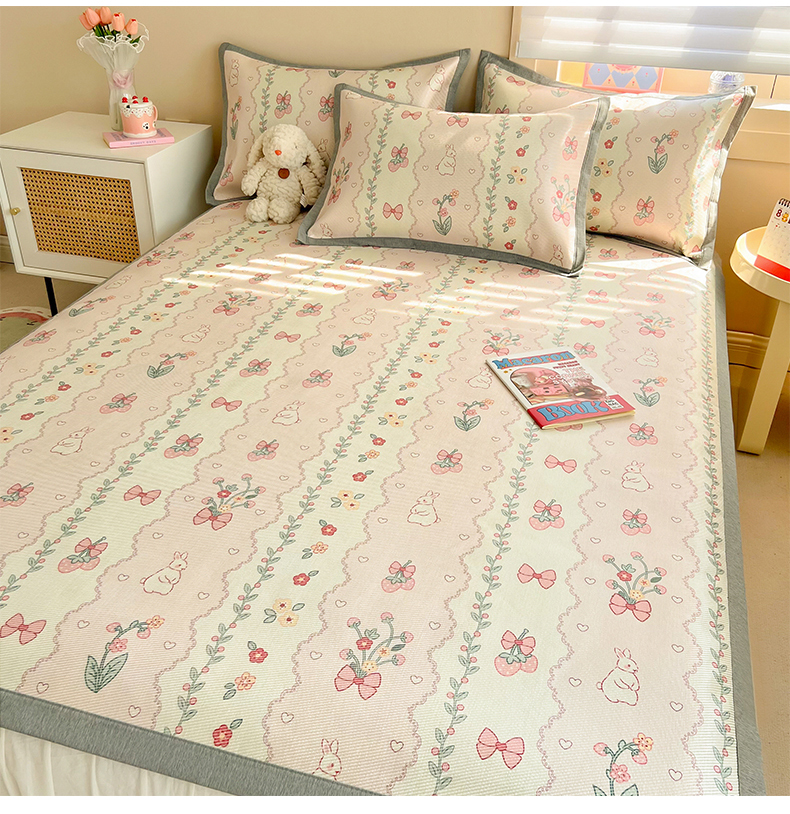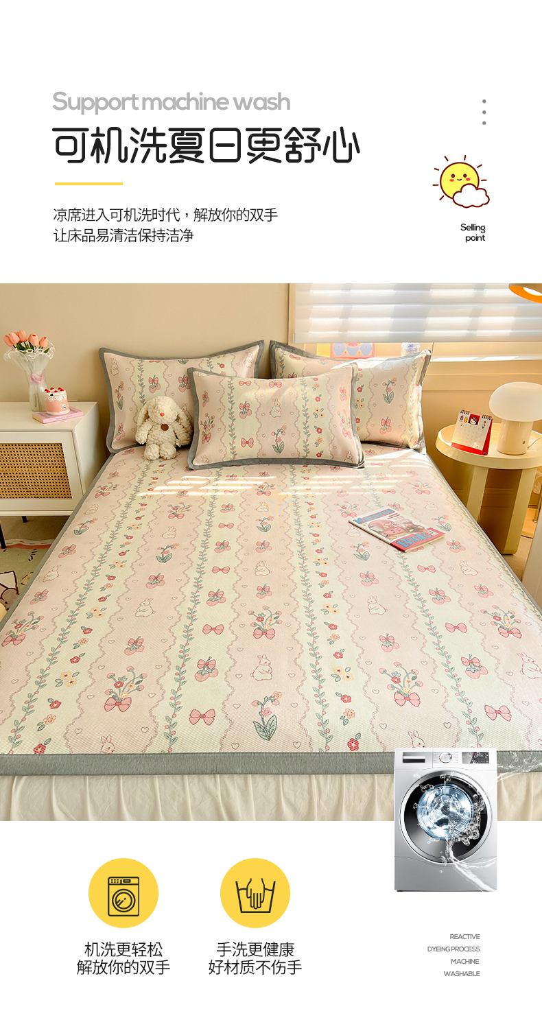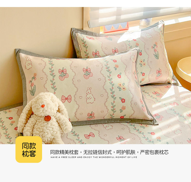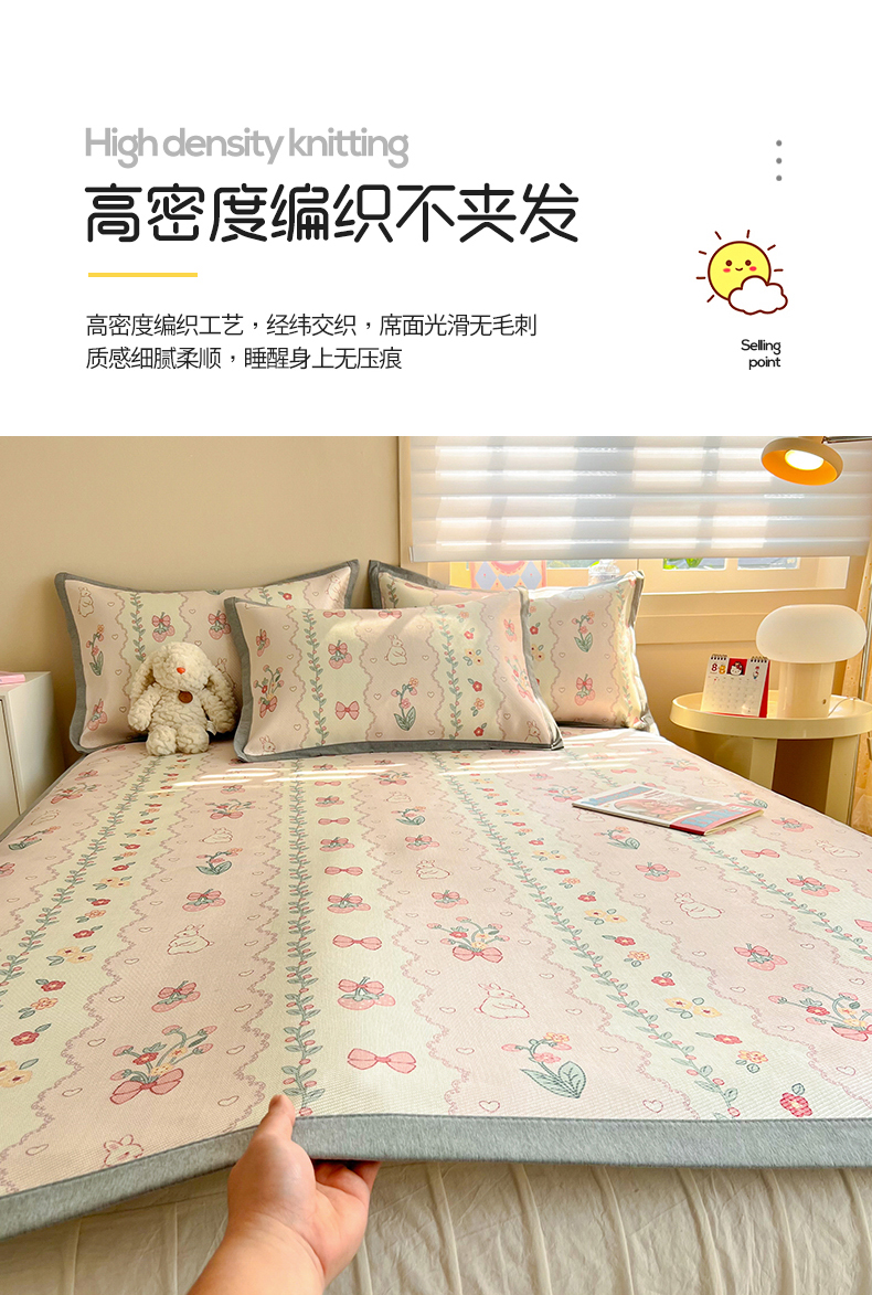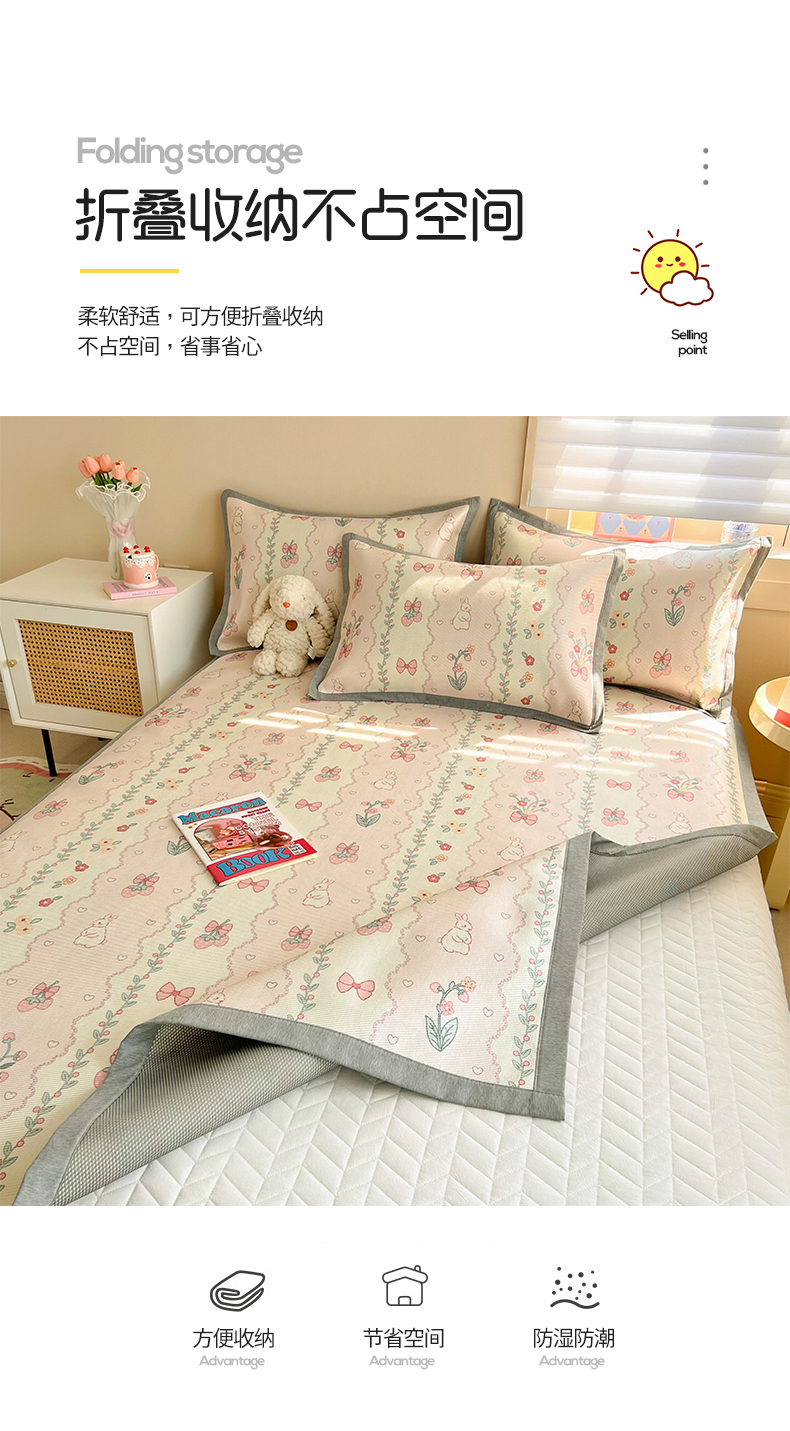 (总)懒猫家纺 2022新款学生宿舍冰丝数码印花凉席,尔雅,粉小兔,花韵,萝卜兔,清晨,手绘爱心,探索星球,甜心,小鲸鱼,小熊仔,元气兔