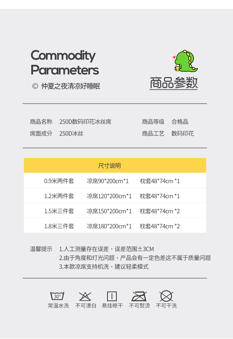 商品名称:(总)懒猫家纺 2025春夏新款250D数码印花冰丝席凉席席子
