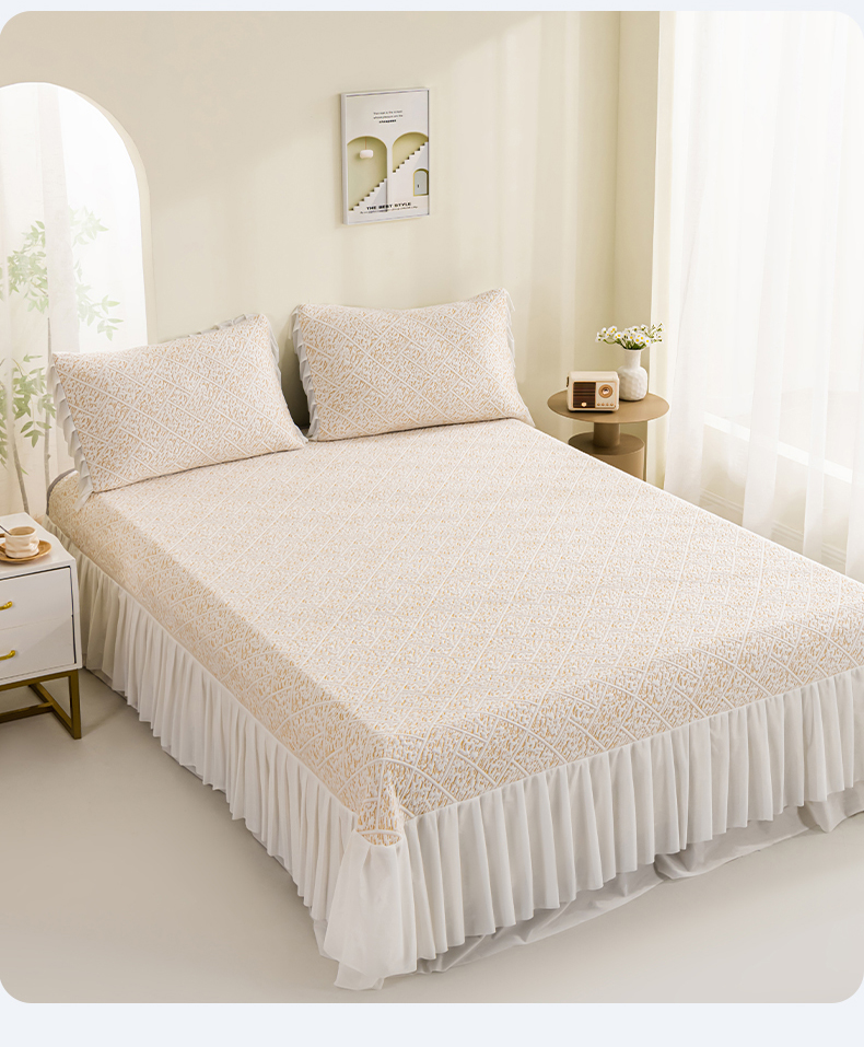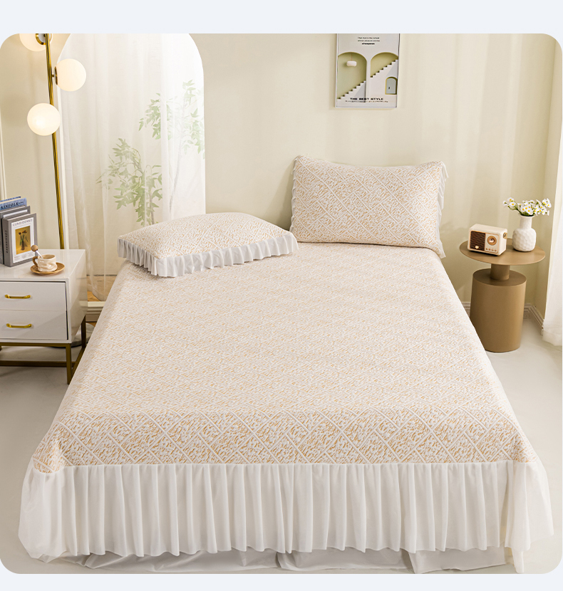 商品名称:叠派家纺 2025新款5A抗菌雅致床裙款三件套 雅致床裙款-冰咖