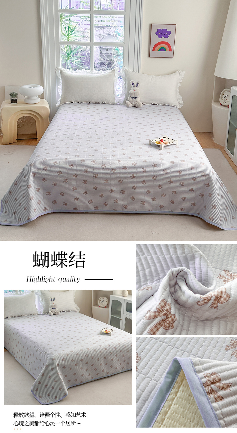 嘉汀兰家居 2025新款13372单面全棉高温砂洗绗缝单床盖,床盖四件套(同款花边被套) 蝴蝶结—单床盖